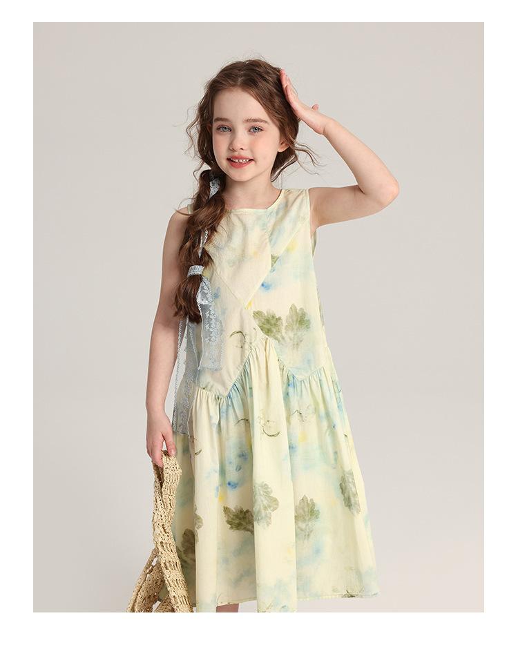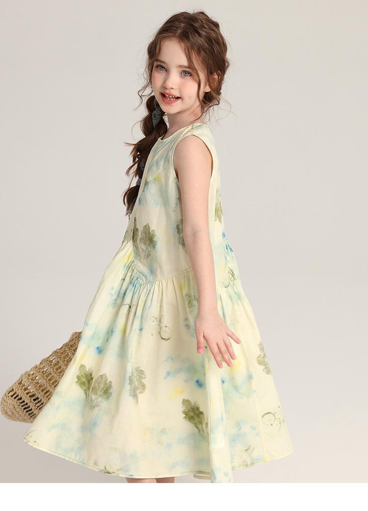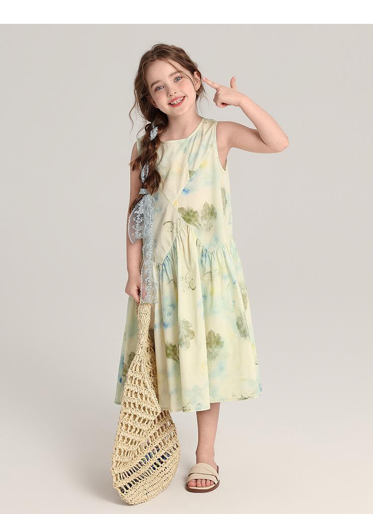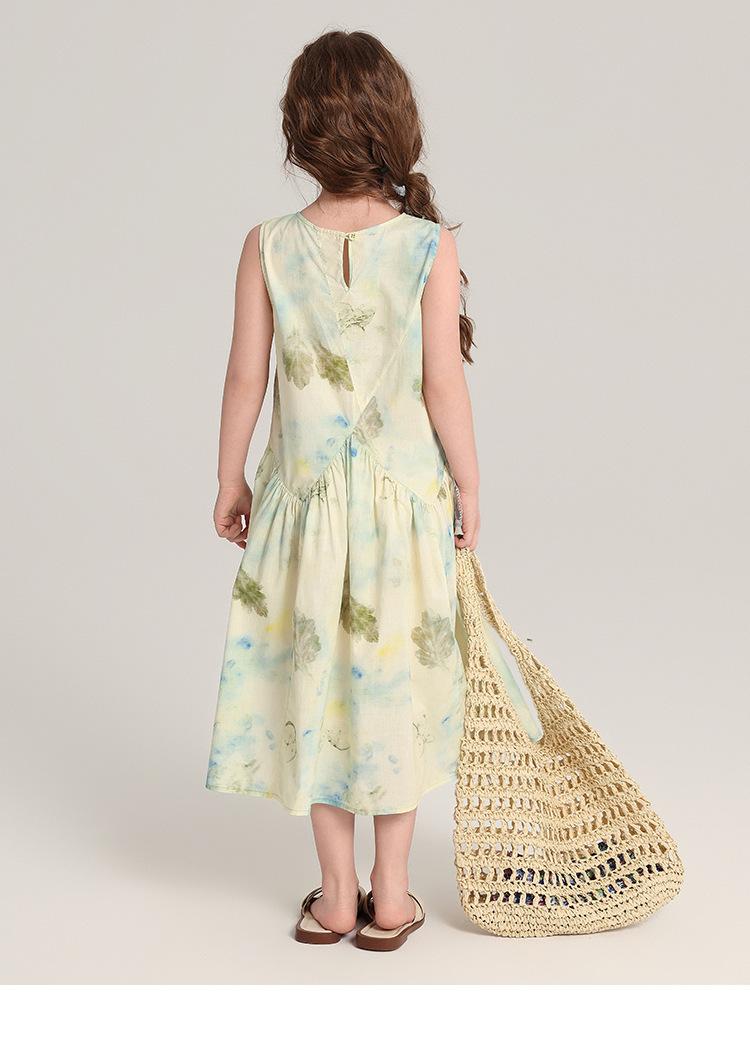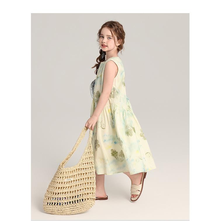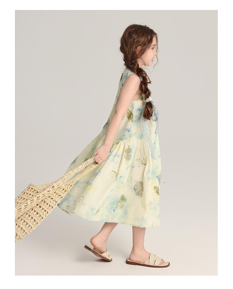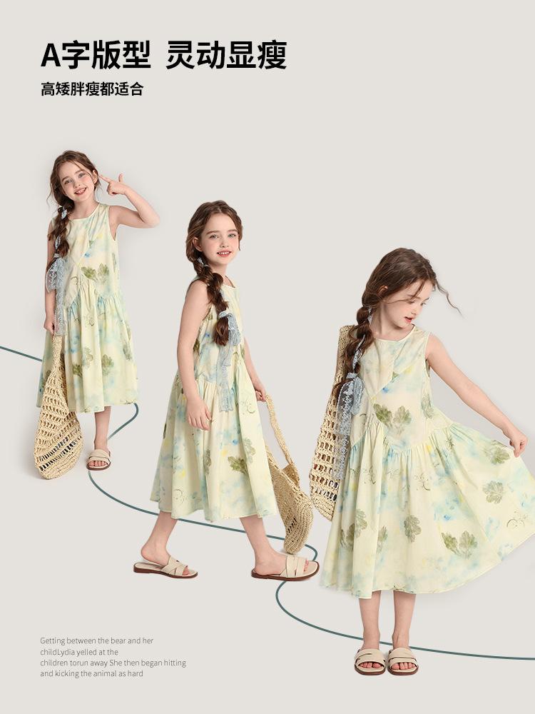 Pudding Haru Ropa para Niños Estilo de Niñas Falda Larga Verano 2025 Nuevo Vestido Versátil Sin Mangas para Vacaciones