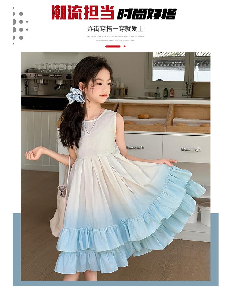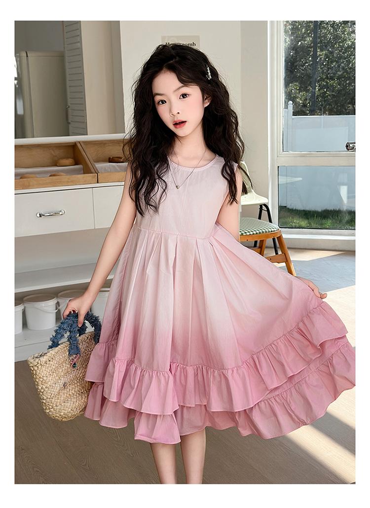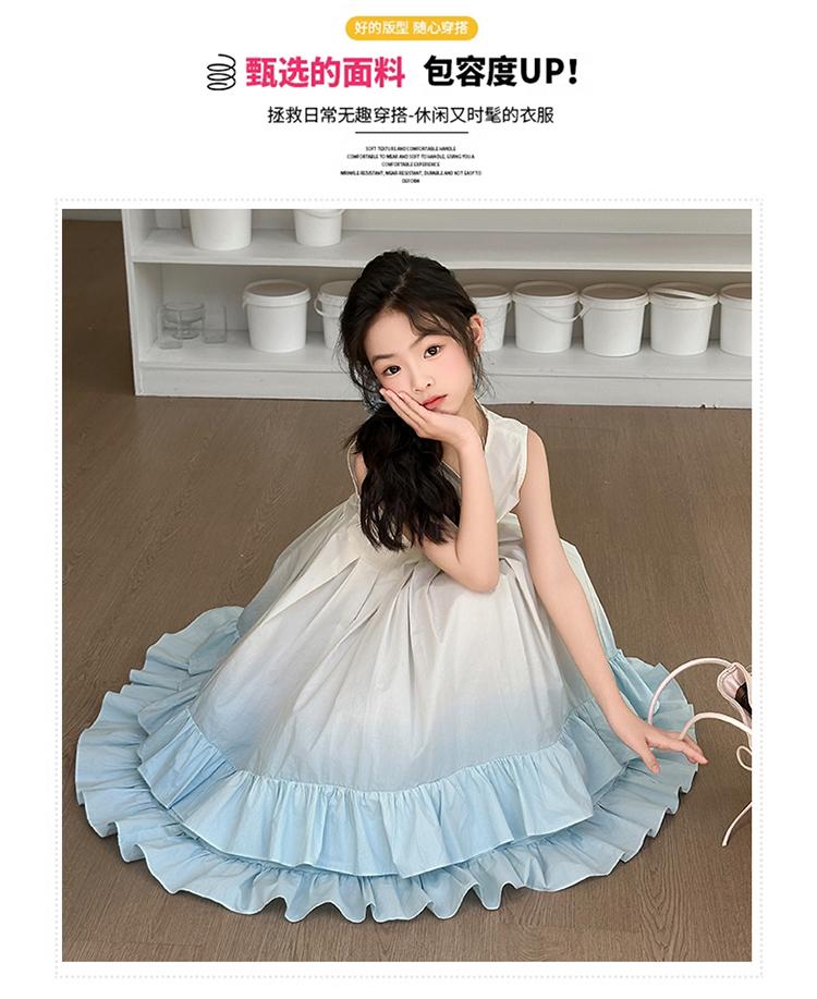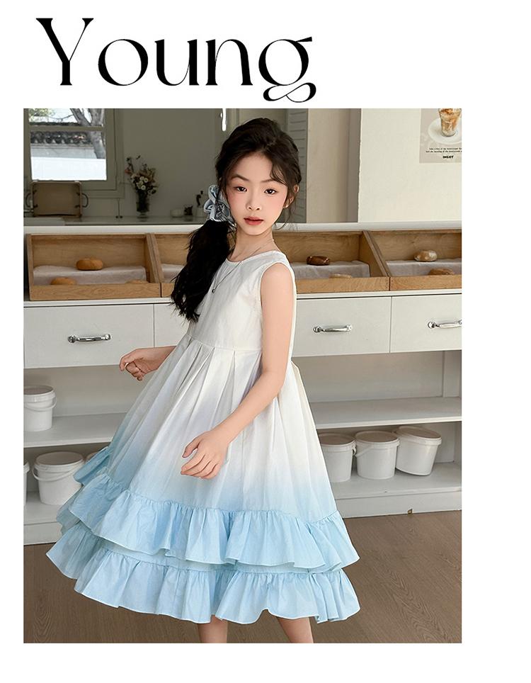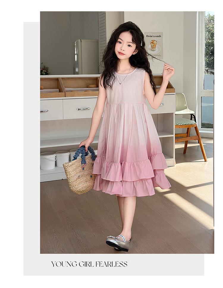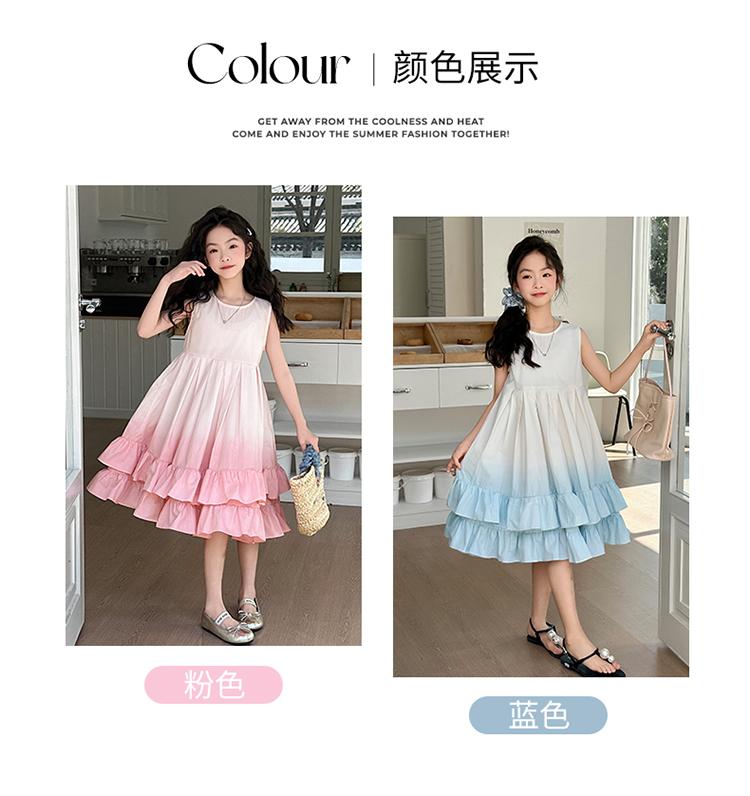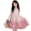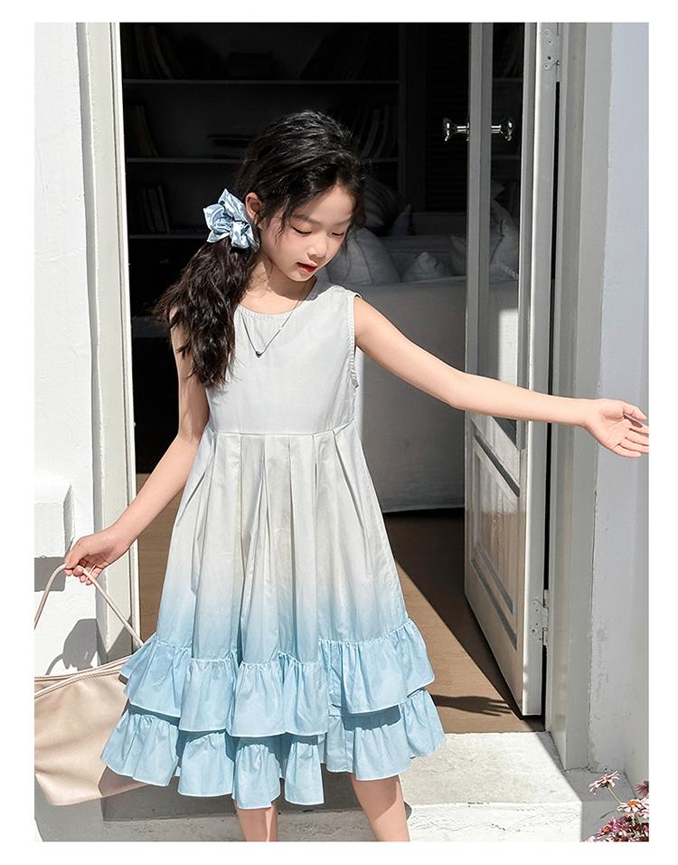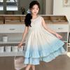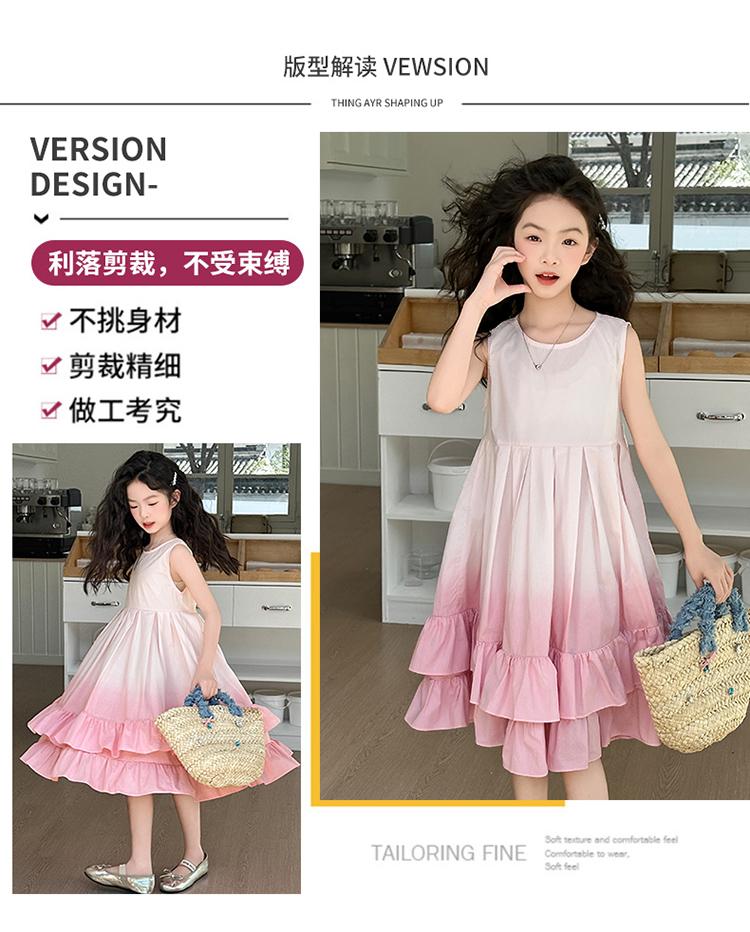 Vestido de Niña Verano Delgado 2025 Nuevo Vestido Infantil Vestido de Princesa para Niña Color Degradado Algodón Vestido Chaleco
