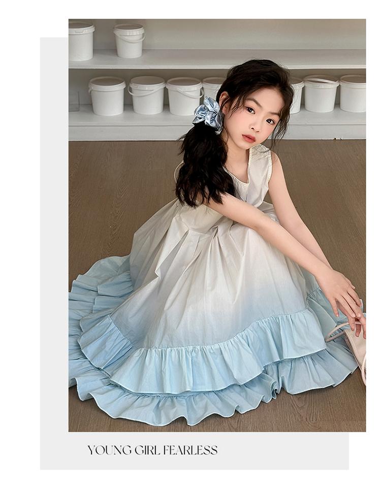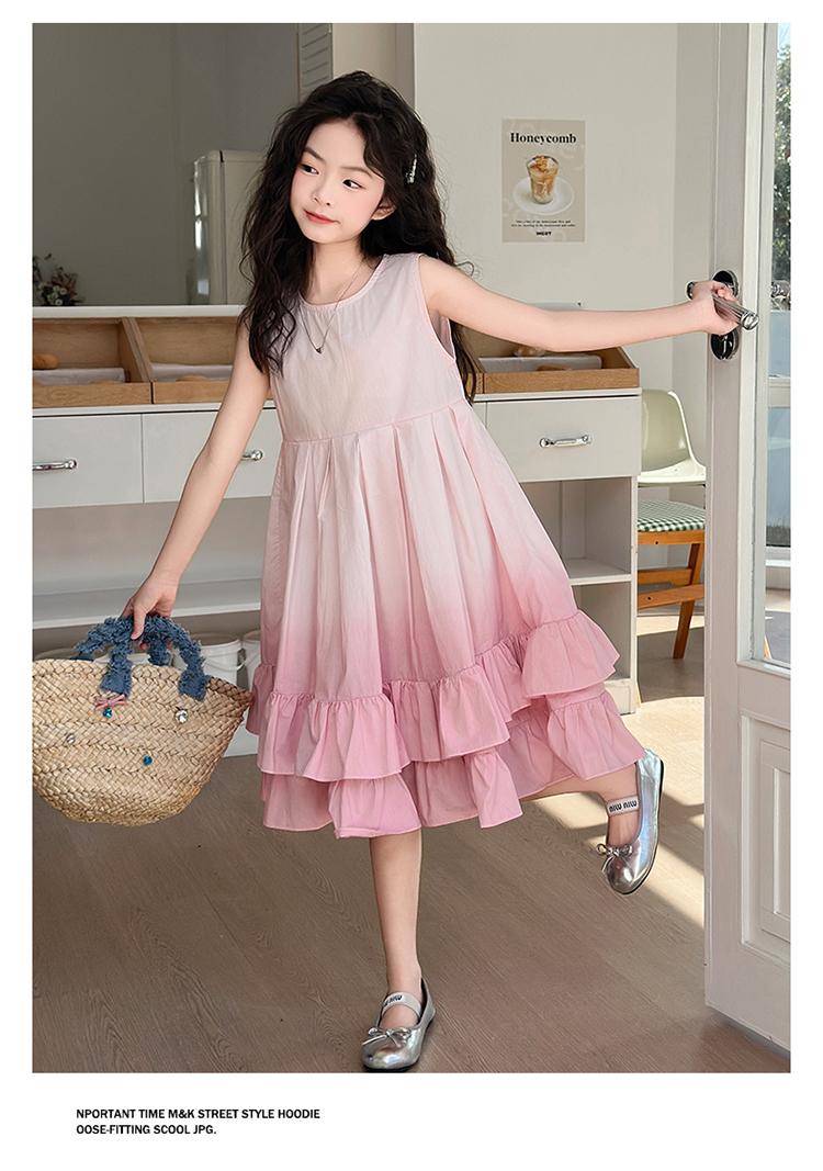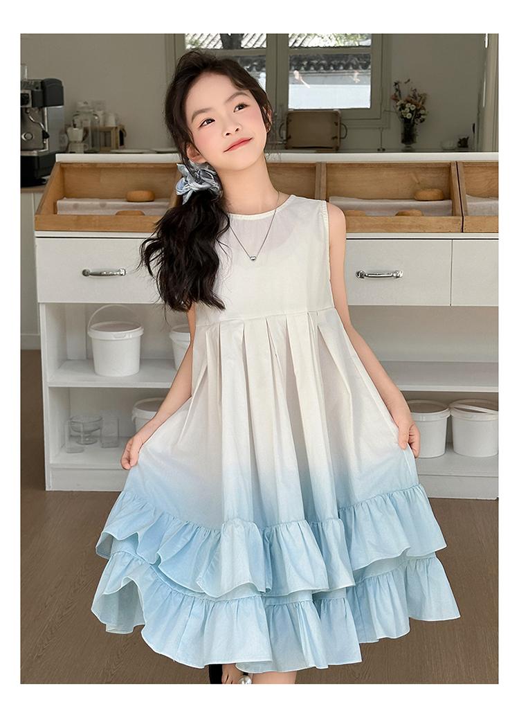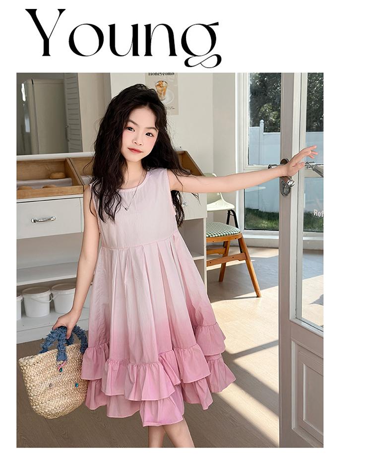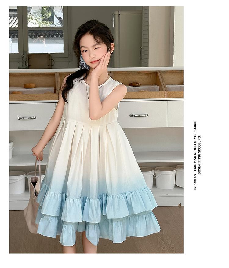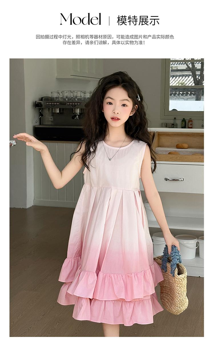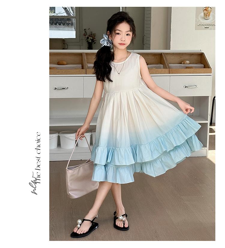 Vestido de Niña Verano Delgado 2025 Nuevo Vestido Infantil Vestido de Princesa para Niña Color Degradado Algodón Vestido Chaleco