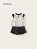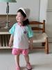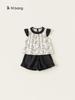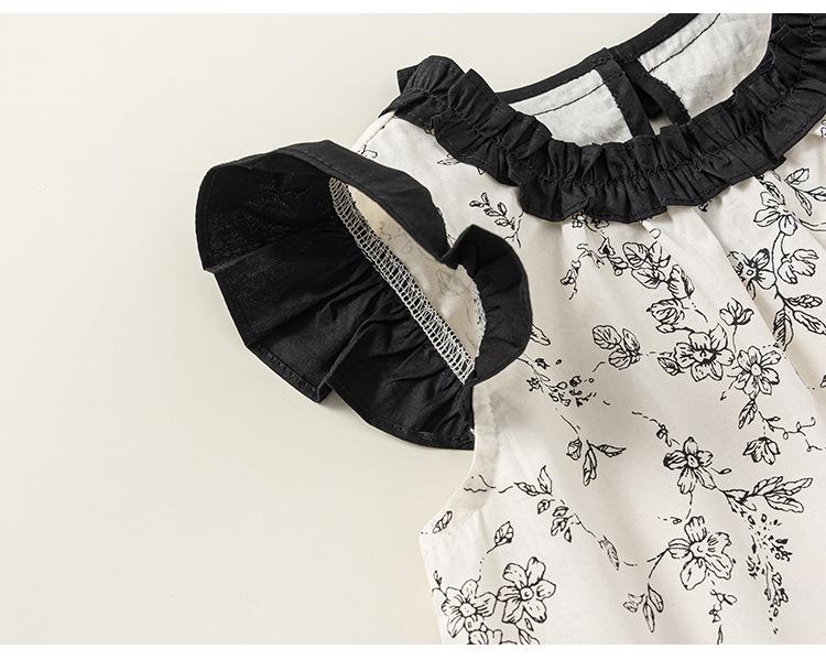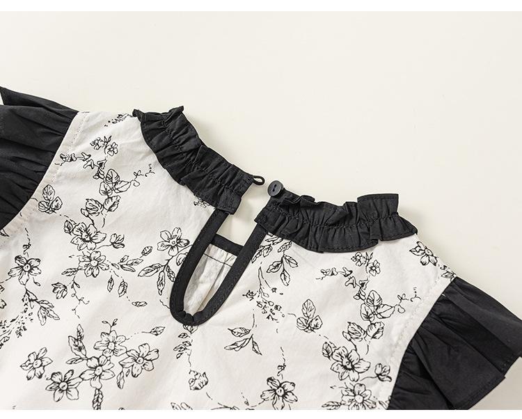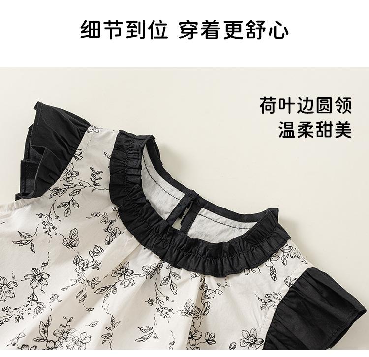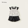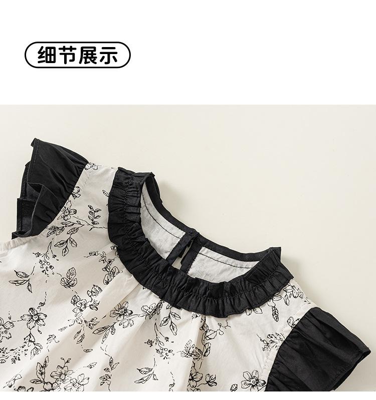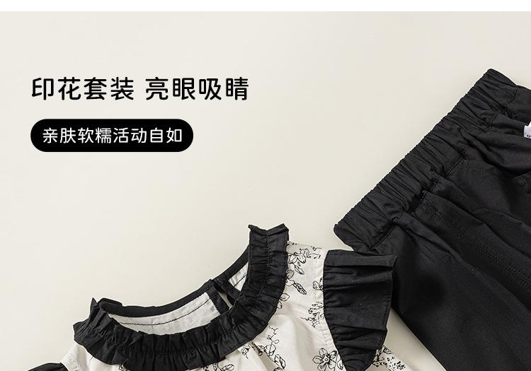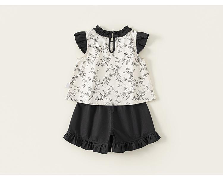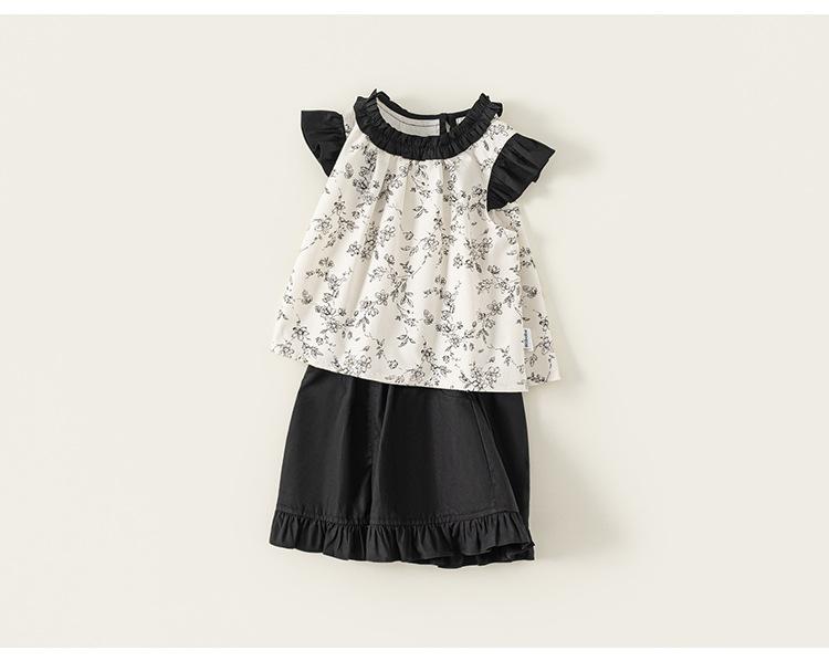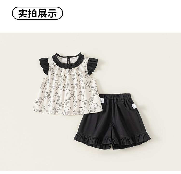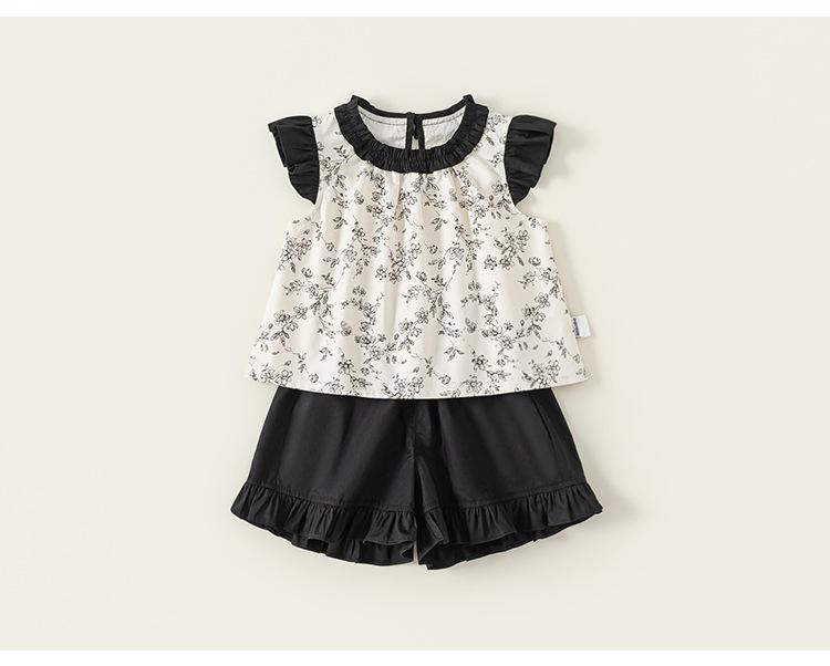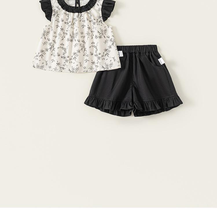 Ropa Infantil Yubao Verano Ropa Infantil Versátil Traje Top Floral de Encaje con Manga Volante para Niña Shorts de Color Sólido Conjunto de Dos Piezas