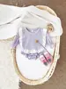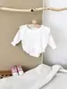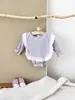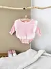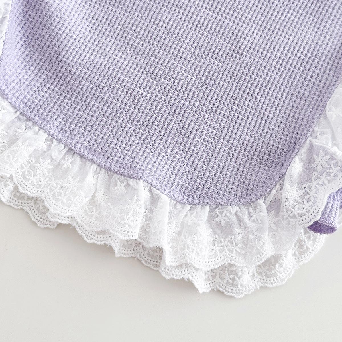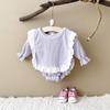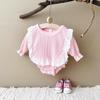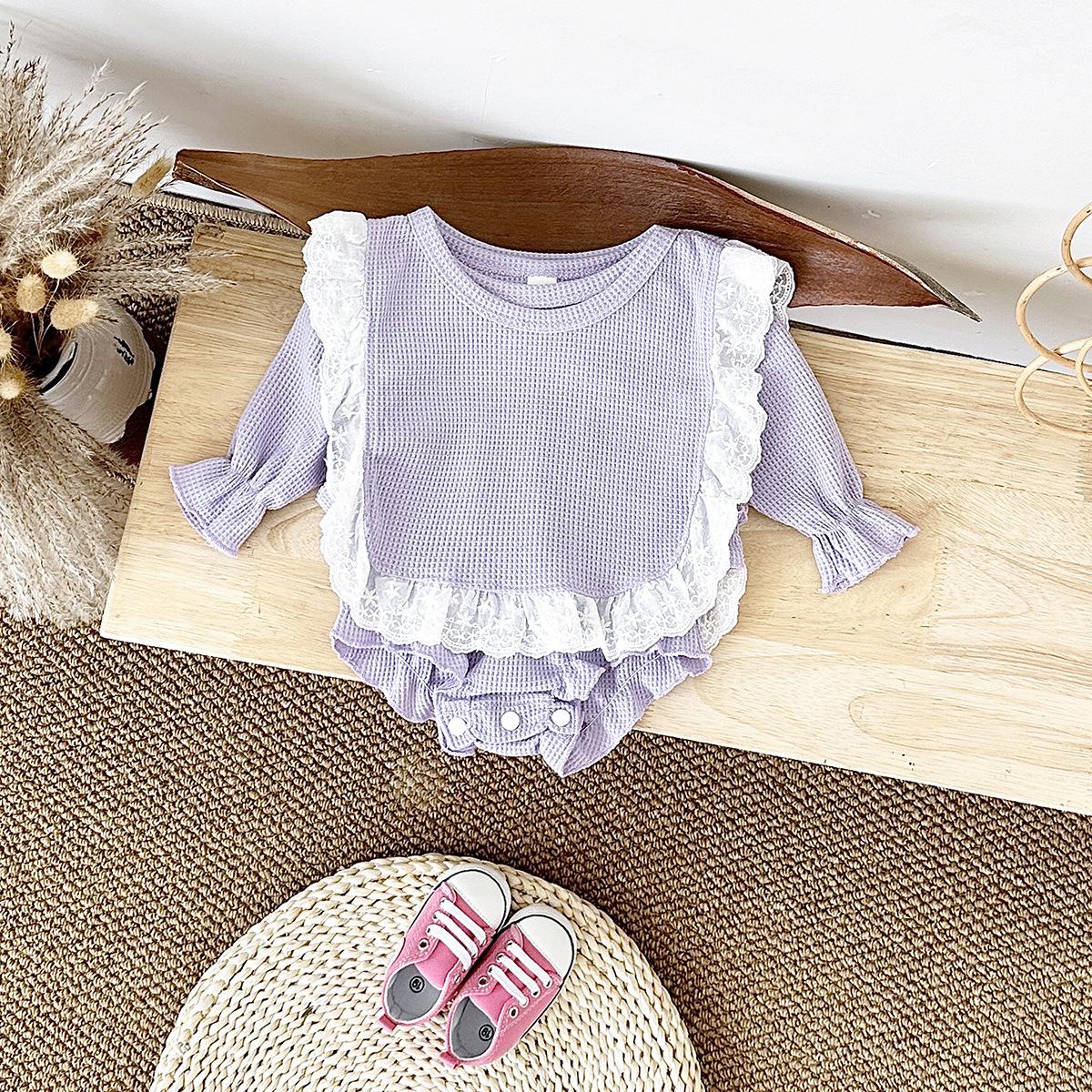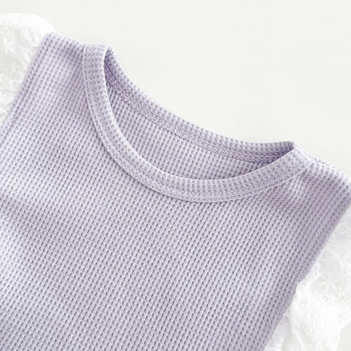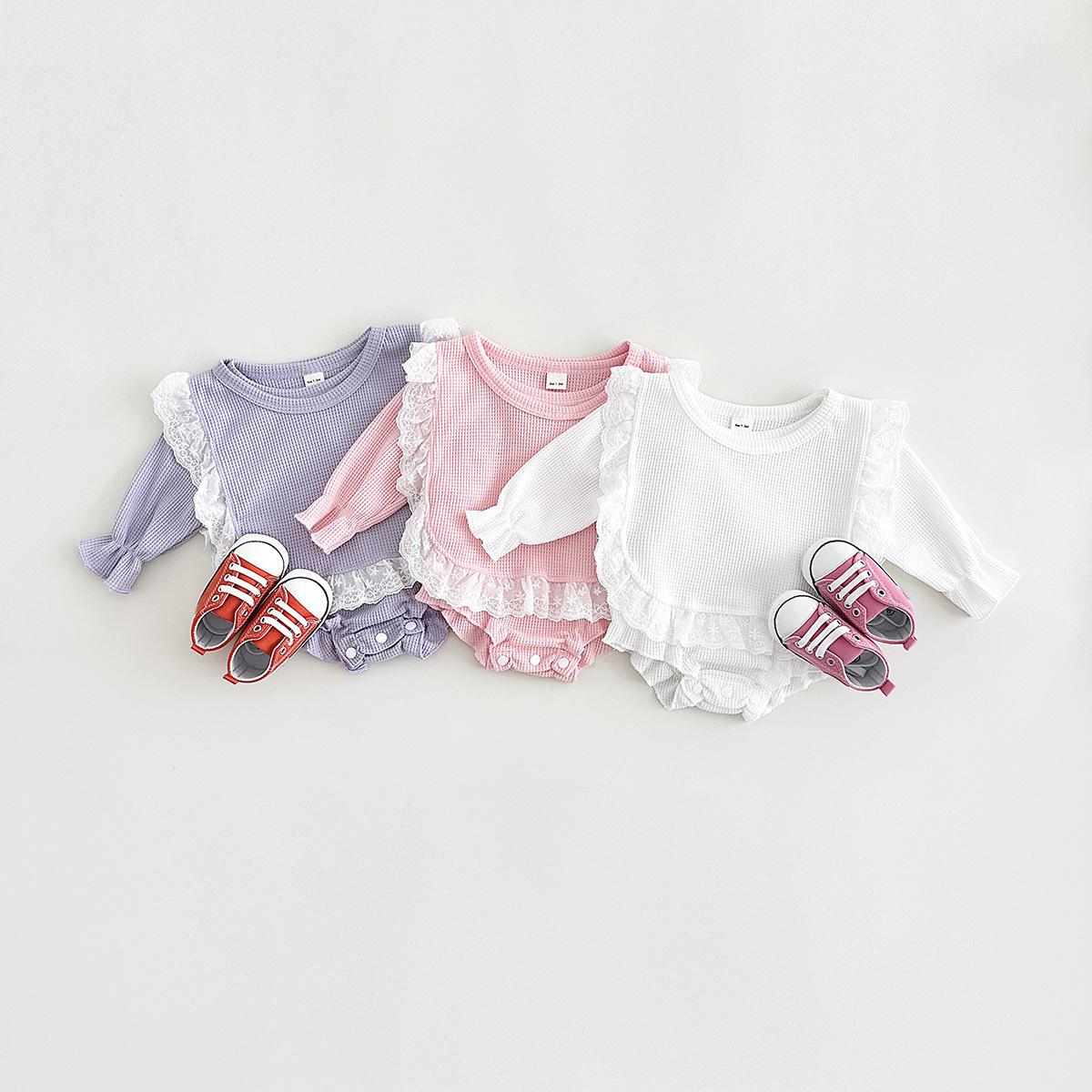 Conjunto de dos piezas para bebés y niñas pequeñas de primavera y otoño, diseño lindo de encaje, chaleco + mameluco de manga larga con cuello redondo