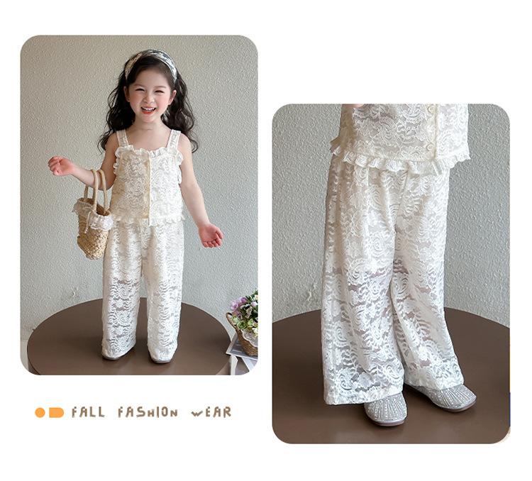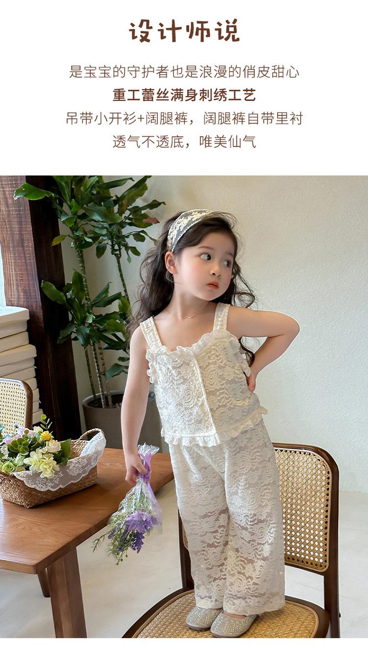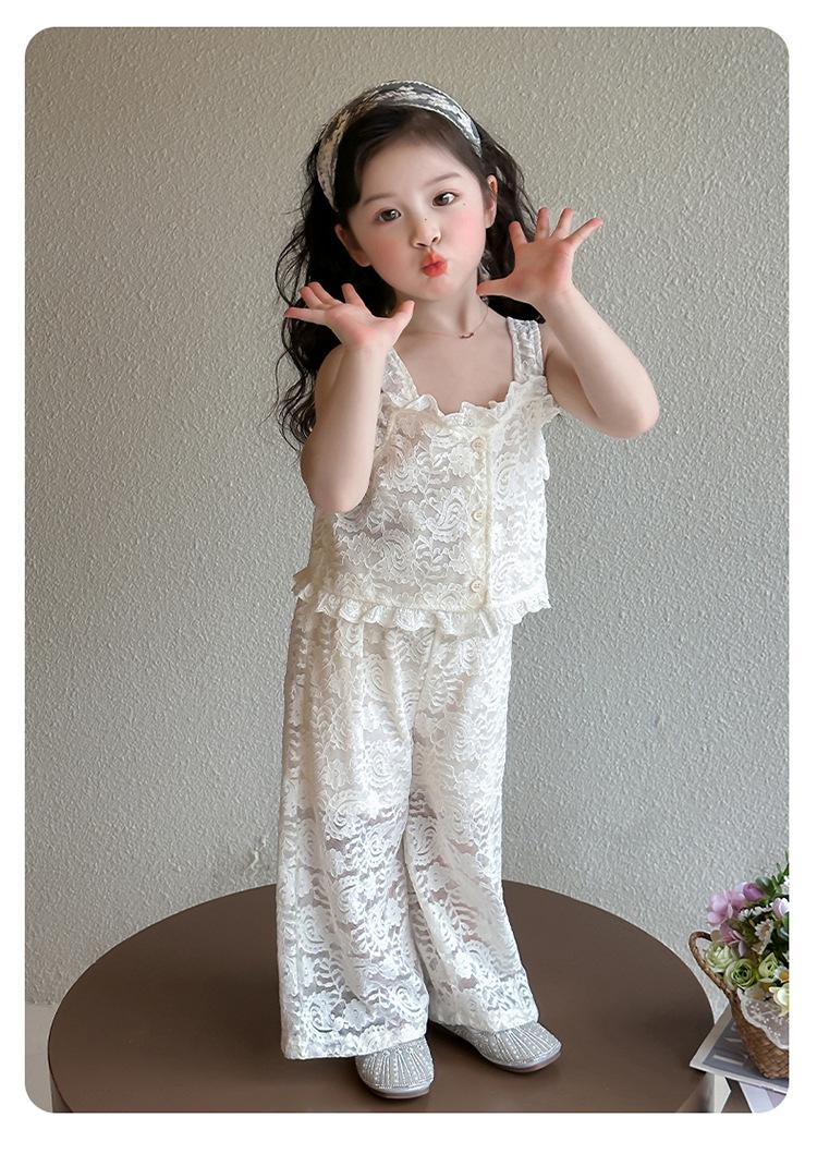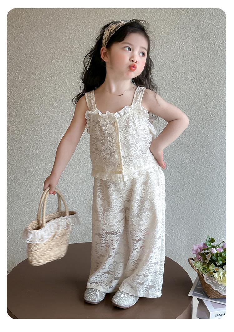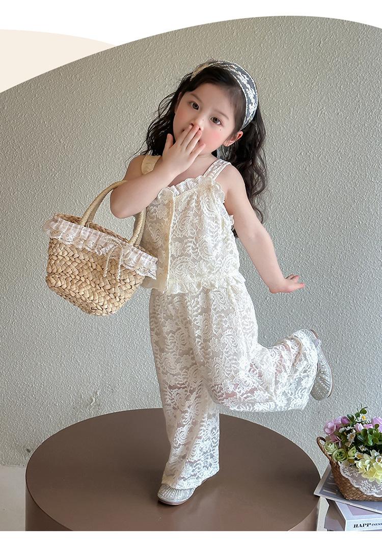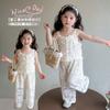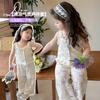 Traje de encaje francés Edo para niñas 2025 Verano Nueva Moda Niña Elegante Dos piezas Vestido de verano para niños
