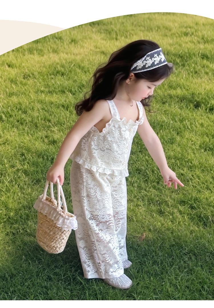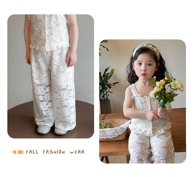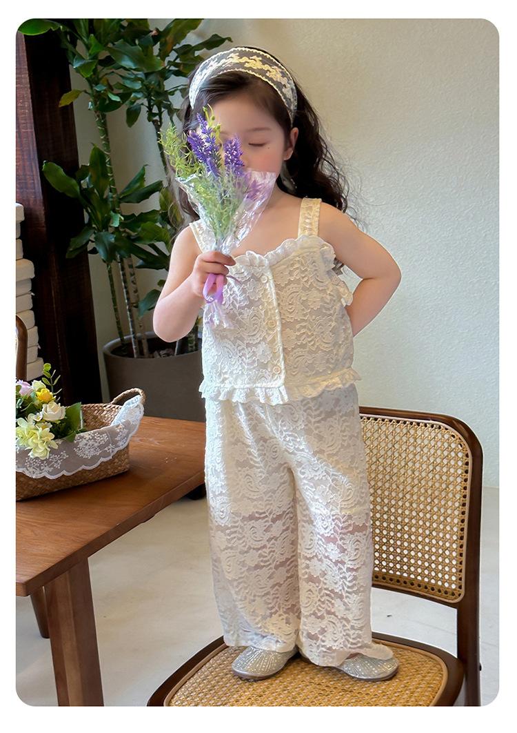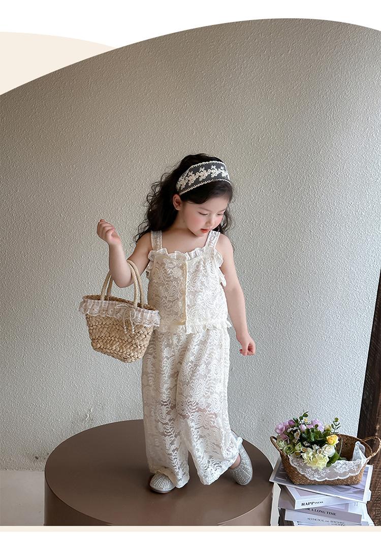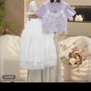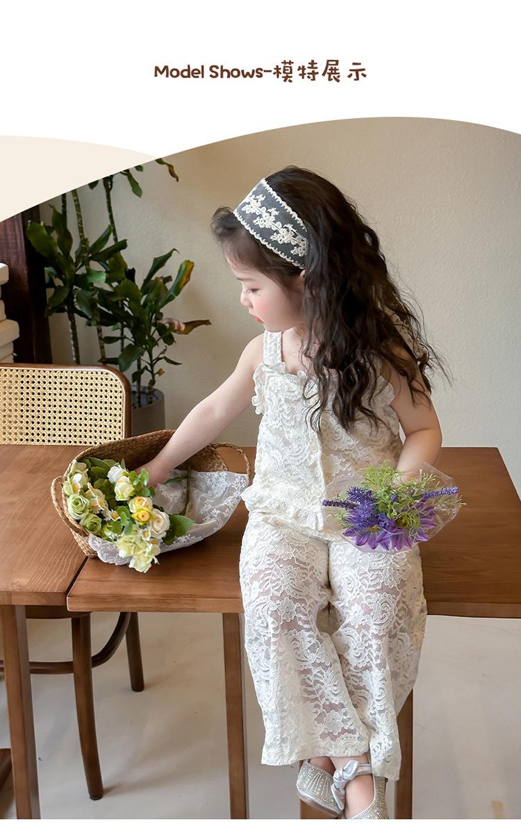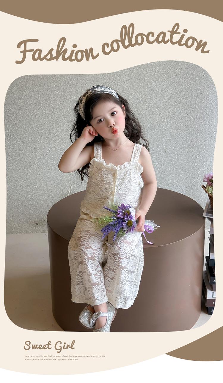 Traje de encaje francés Edo para niñas 2025 Verano Nueva Moda Niña Elegante Dos piezas Vestido de verano para niños