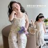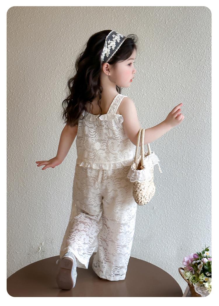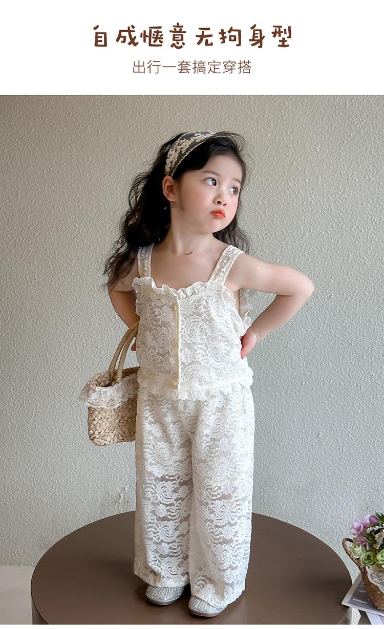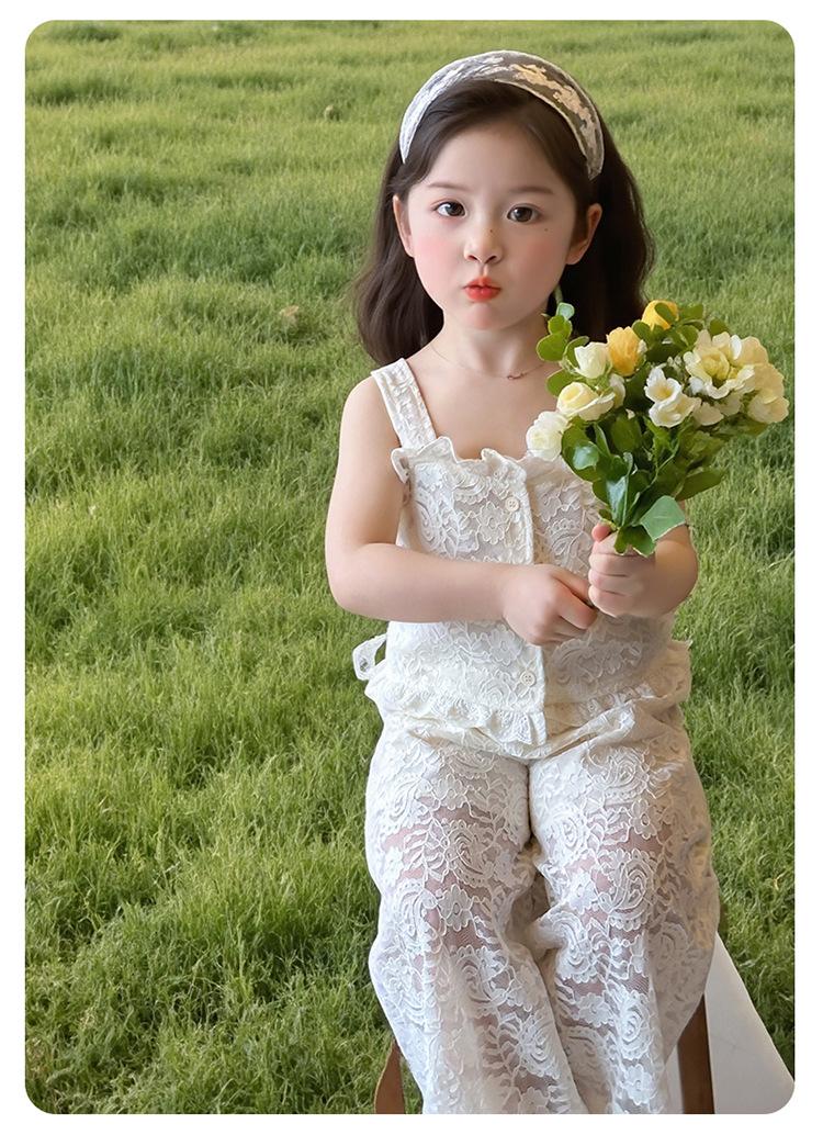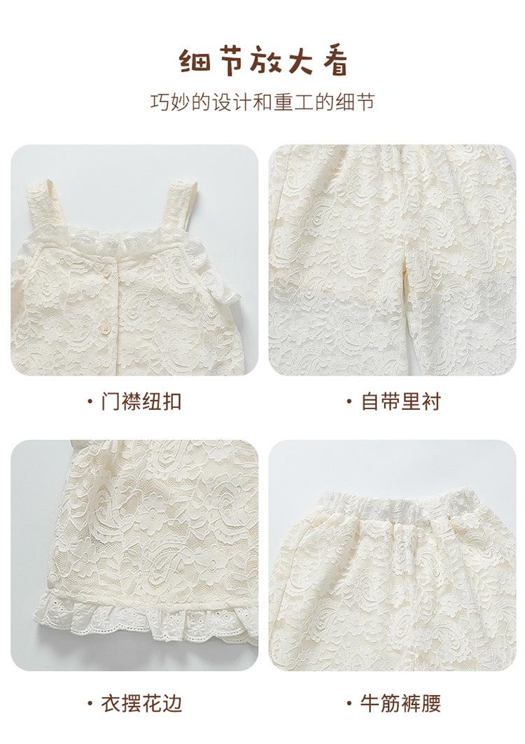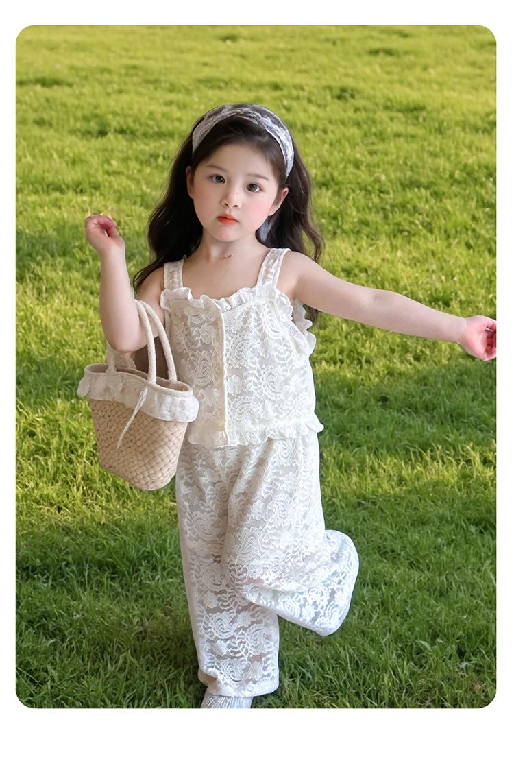 Traje de encaje francés Edo para niñas 2025 Verano Nueva Moda Niña Elegante Dos piezas Vestido de verano para niños