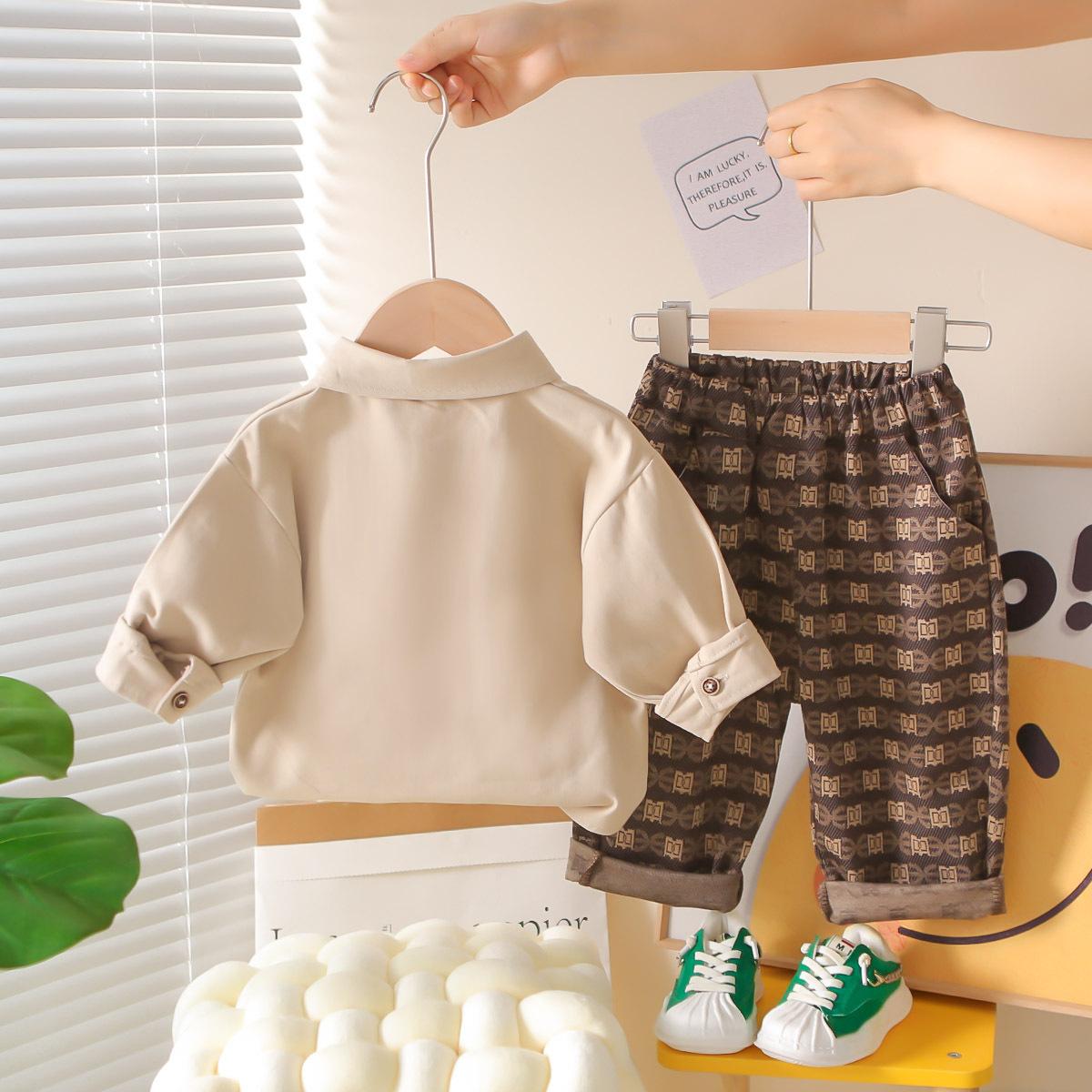 Ropa para Niños Yihao Trajes para Niños 2025 Nuevo Otoño Camisa Conjunto de Dos Piezas Estilo Infantil Ropa de Bebé de Manga Larga
