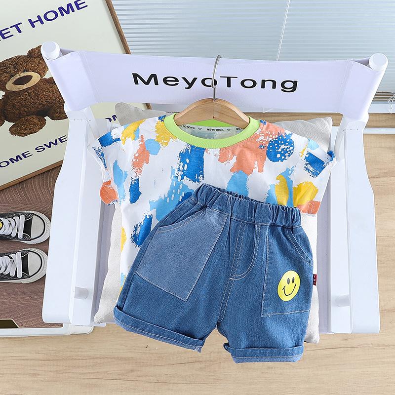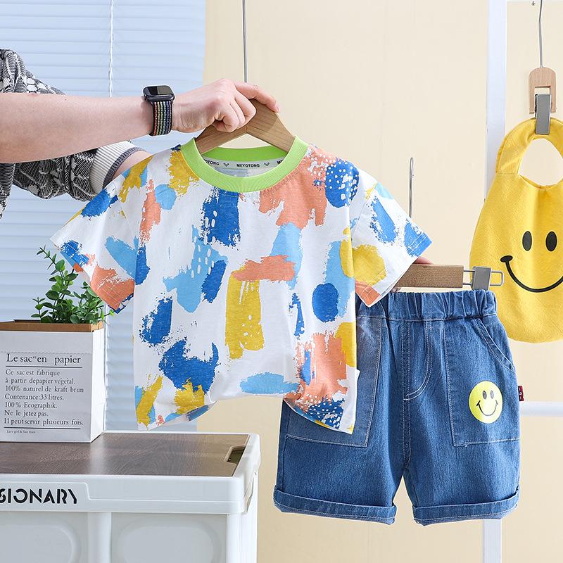 Traje de niño Verano Ropa Casual de Manga Corta de Dos Piezas para Niños 2024 Nuevo Ropa de Verano Handsome Coreano para Niños