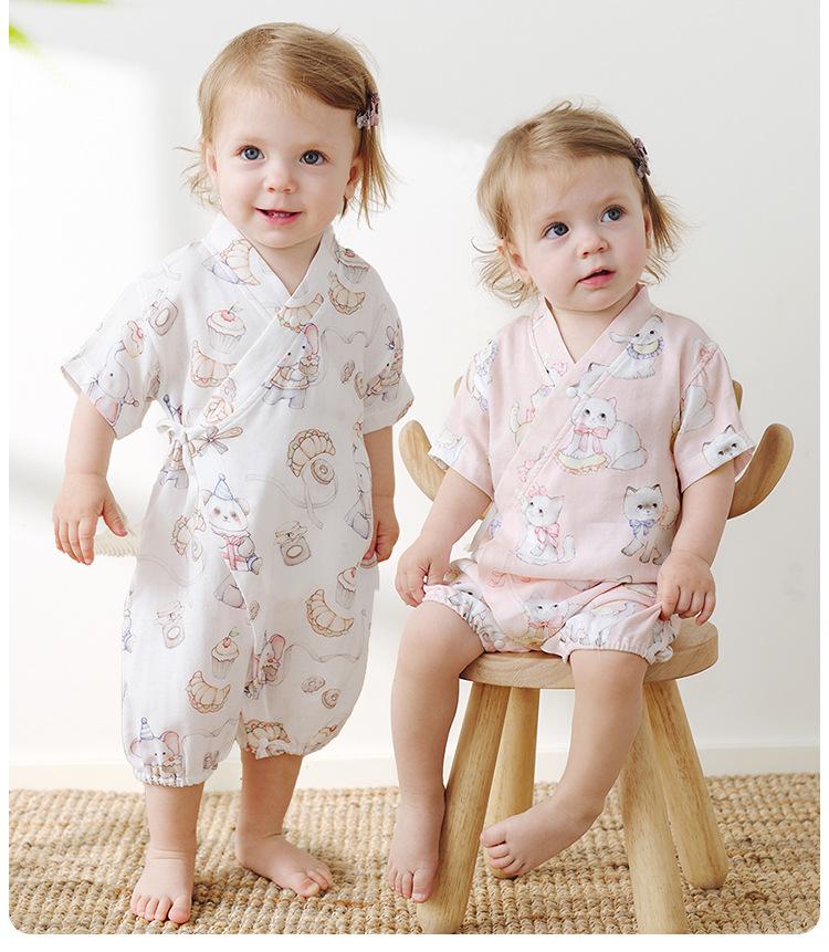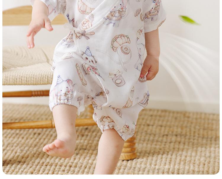 Mameluco de Bebé Verano Delgado Pijama de Recién Nacido Manga Corta Ropa para el Hogar Bebé Masculino y Femenino Gasa Ropa Acondicionada Ropa Infantil
