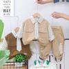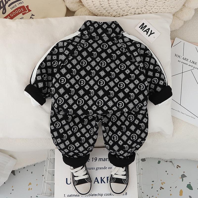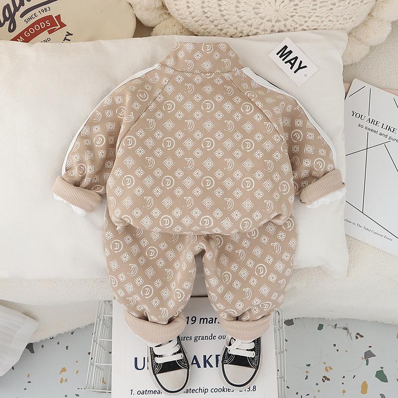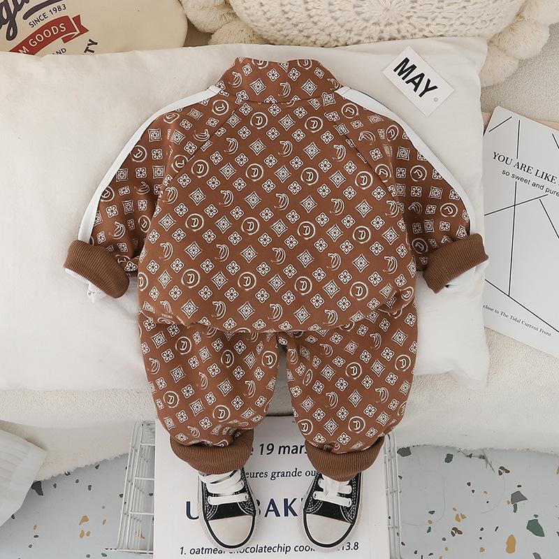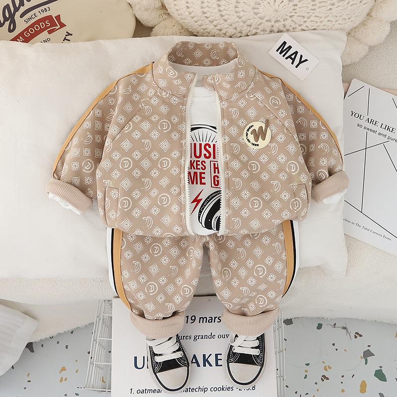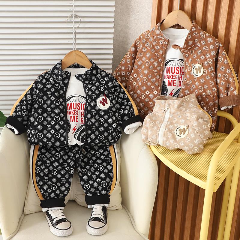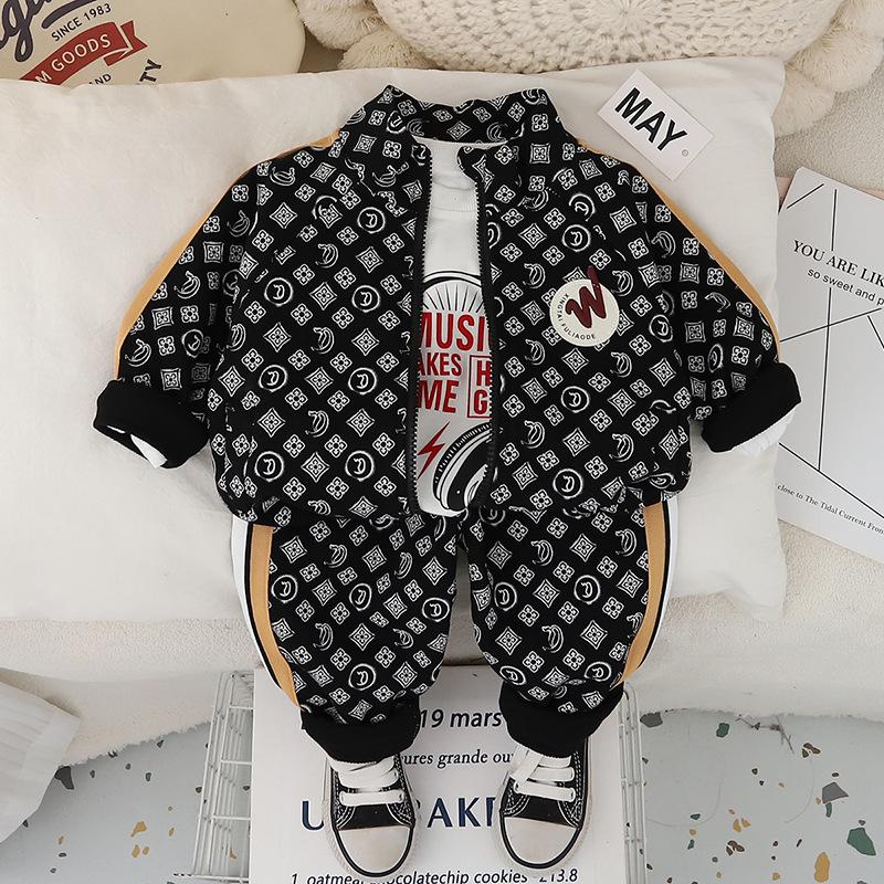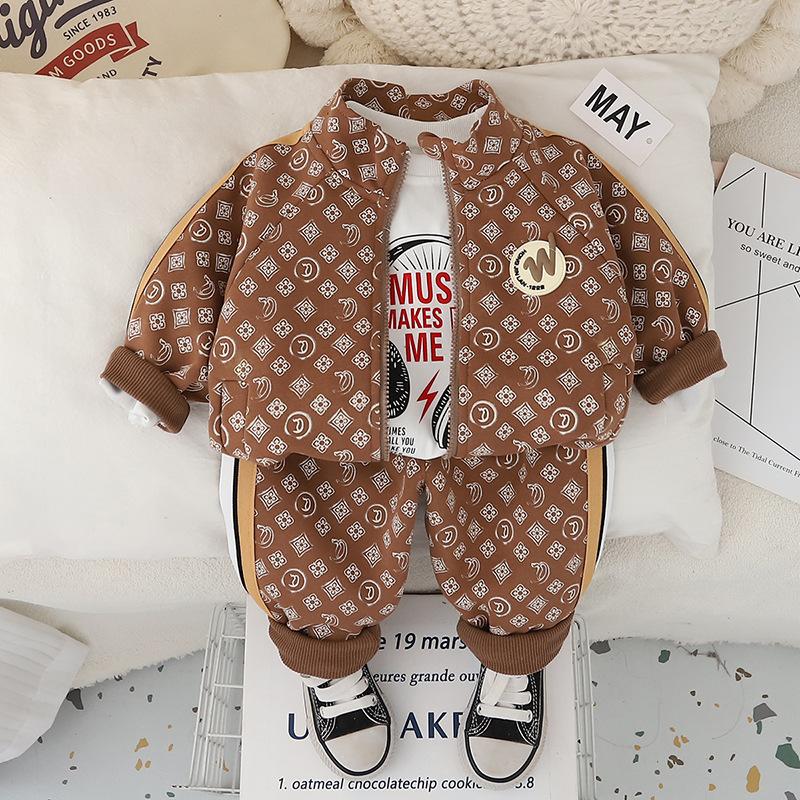Guapo Niño Cárdigan con Cremallera Estampado Completo Conjunto de Tres Piezas Primavera y Otoño 2025 Nueva Ropa Infantil de Moda Ropa de Otoño para Bebé