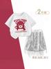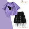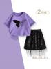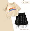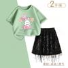 Traje de Verano para Niñas 2025 Nuevo Niños Medianos y Grandes Estilo Coreano Camiseta de Manga Corta Falda con Borlas Conjunto de Dos Piezas Moderno