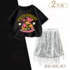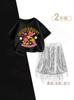 [two-piece set] butterfly letters dark gray + black fringed skirt