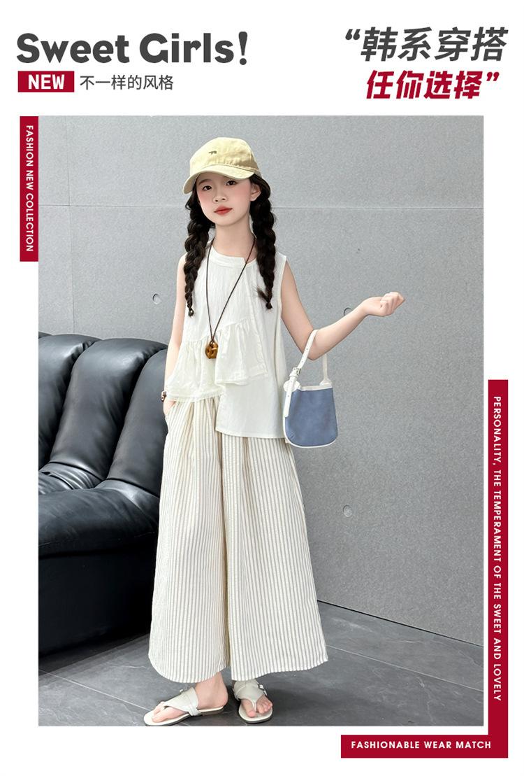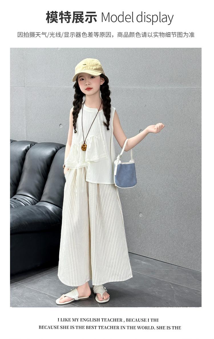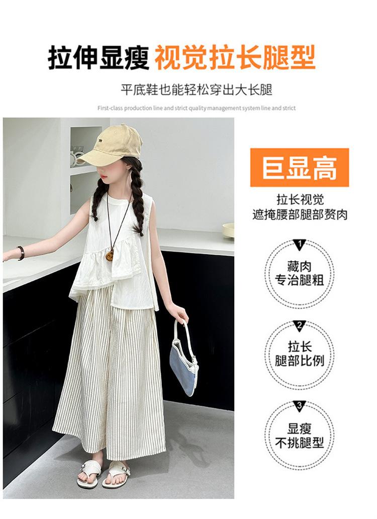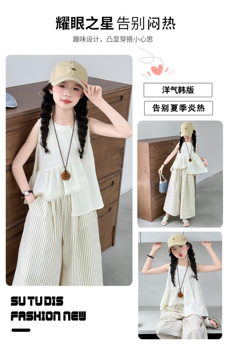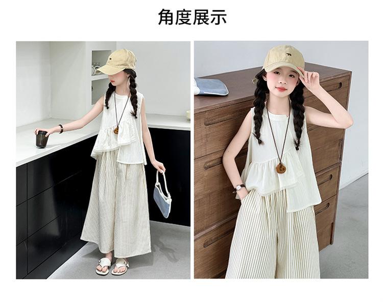 Traje de Verano para Niñas 2025 Nuevo Estilo Estilo Infantil para Niñas Chaleco de Verano sin Mangas Falda a Rayas Conjunto de Dos Piezas a la Moda