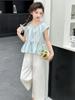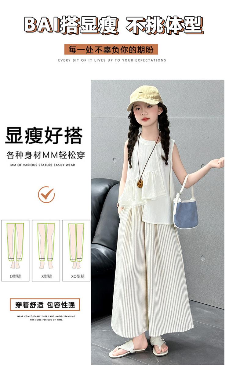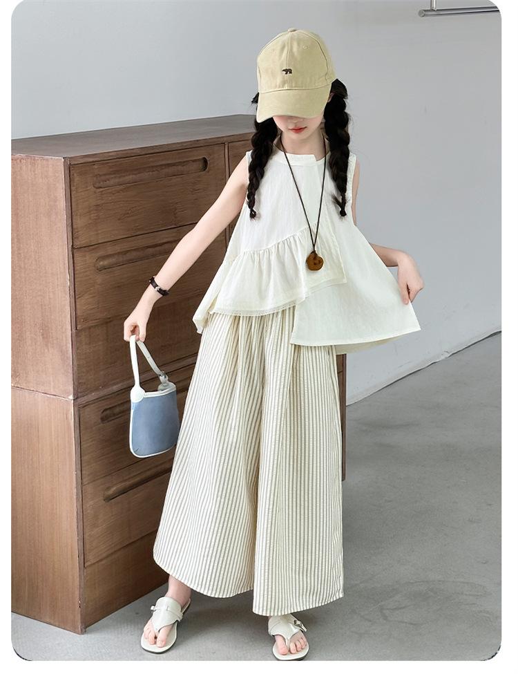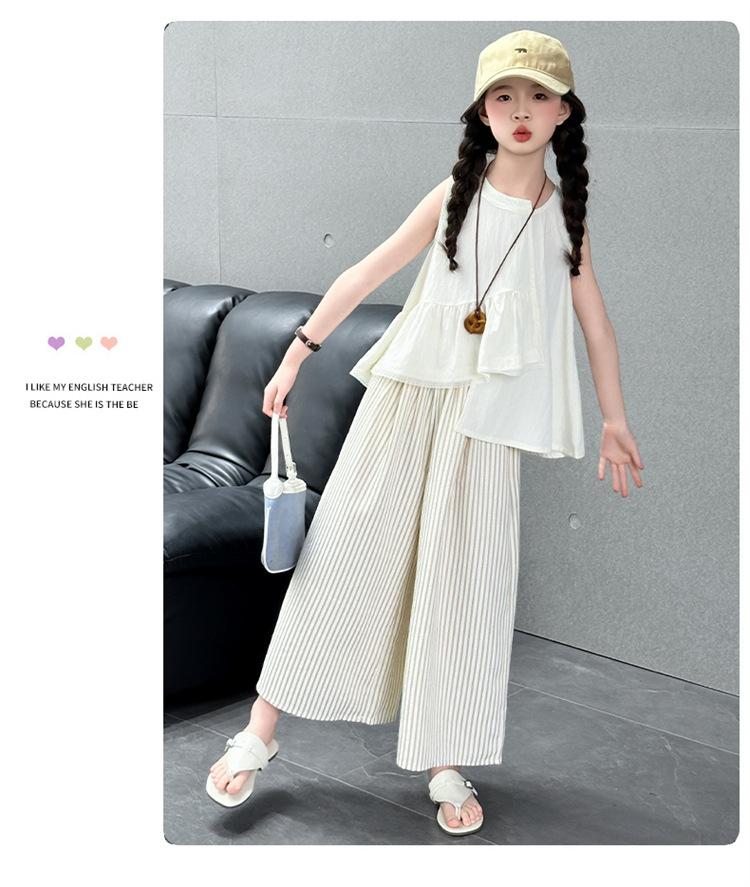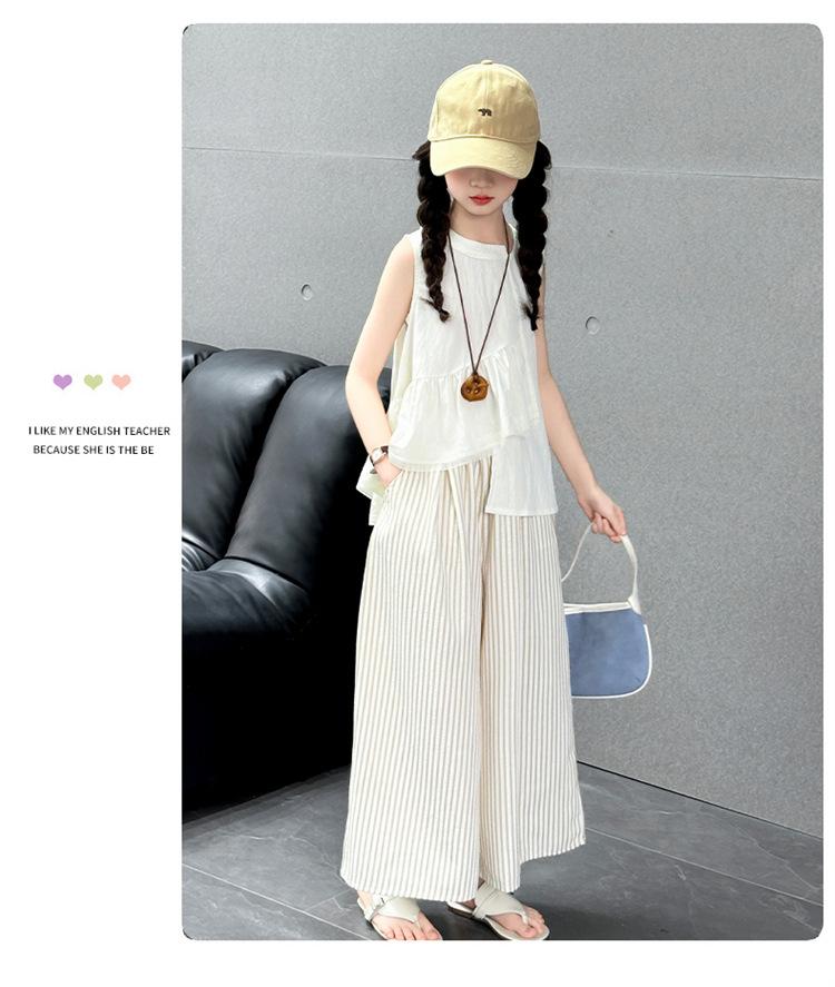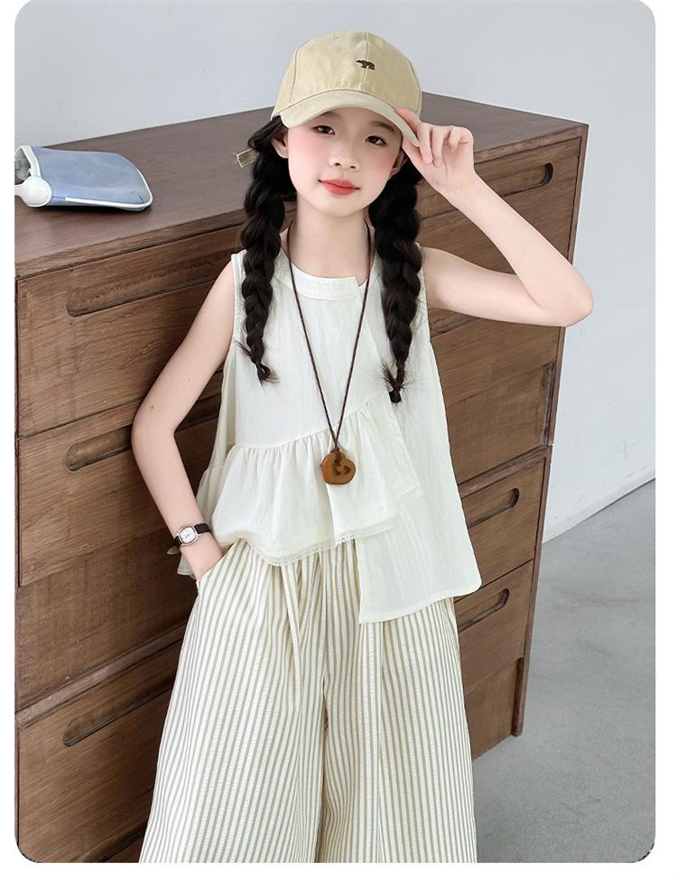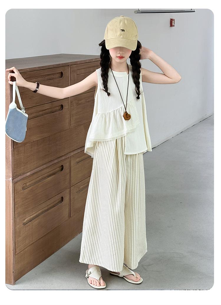 Traje de Verano para Niñas 2025 Nuevo Estilo Estilo Infantil para Niñas Chaleco de Verano sin Mangas Falda a Rayas Conjunto de Dos Piezas a la Moda