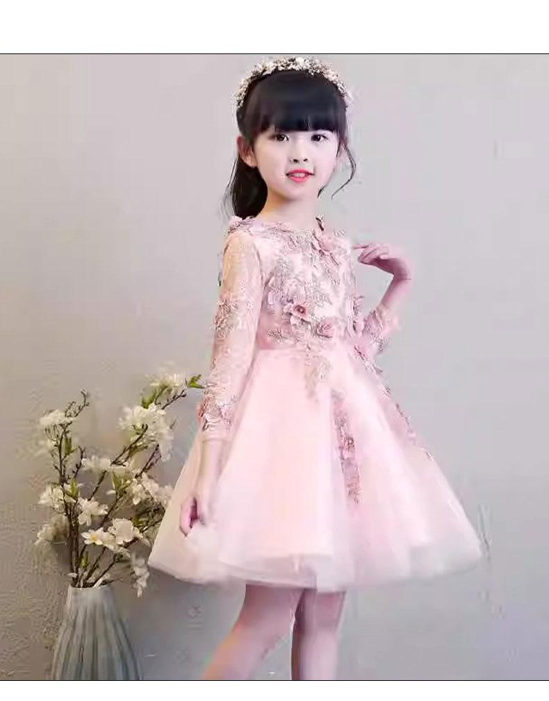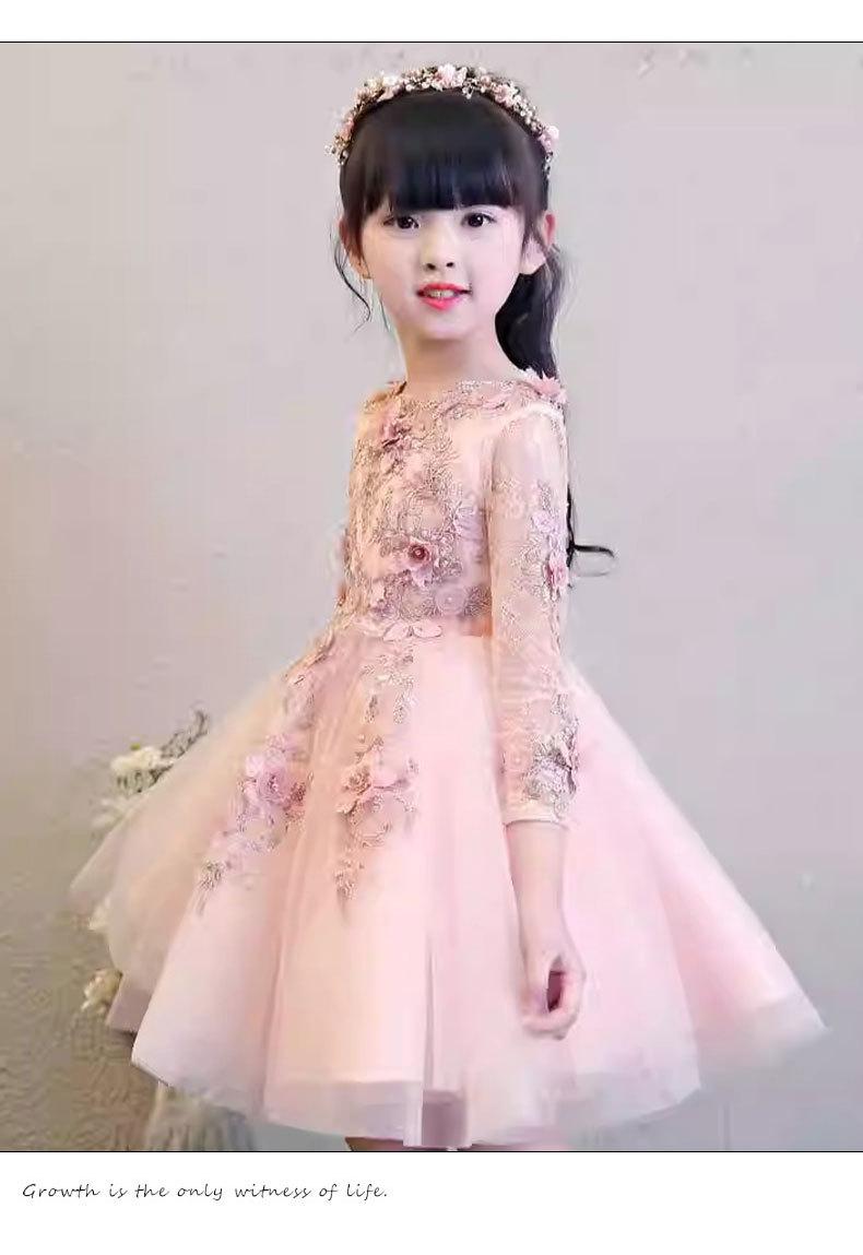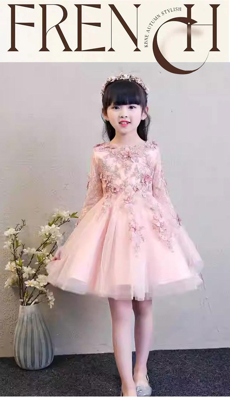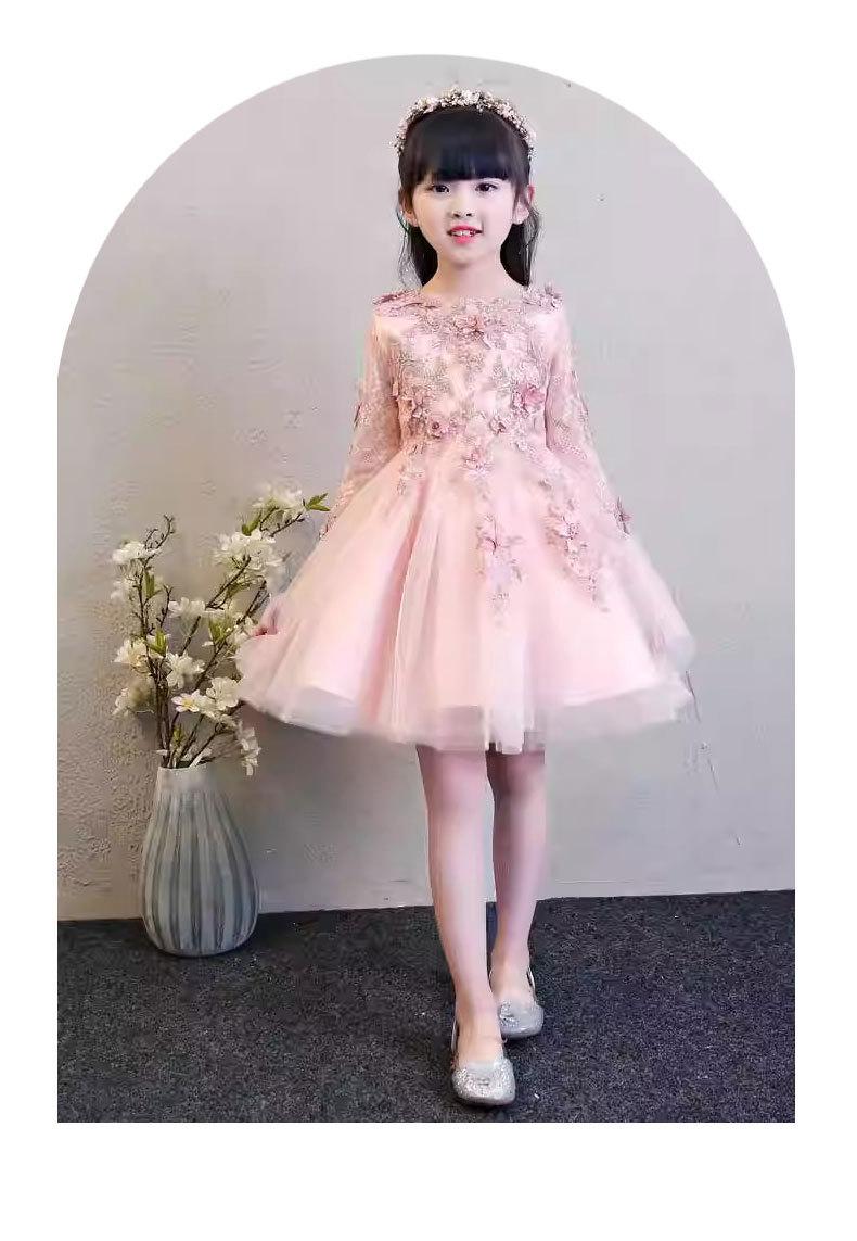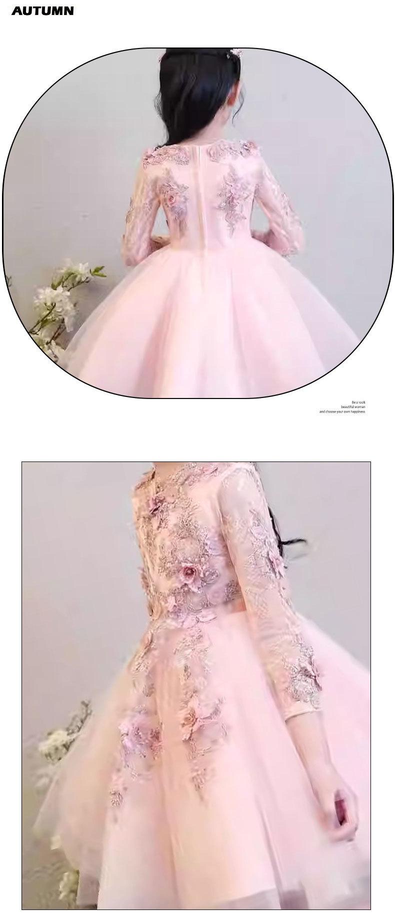Vestido de Primavera y Verano para Niños Vestido de Princesa Vestido de Gasa Esponjosa de Manga Larga para Actuación de Piano Vestido de Noche de Cumpleaños Vestido de Niña de las Flores Vestido de Boda