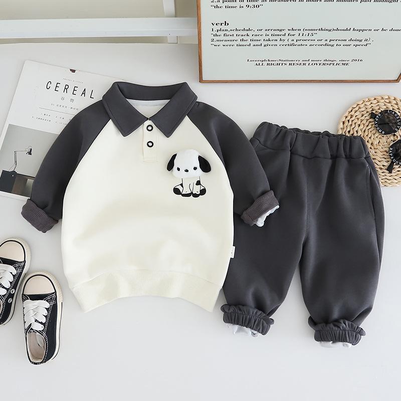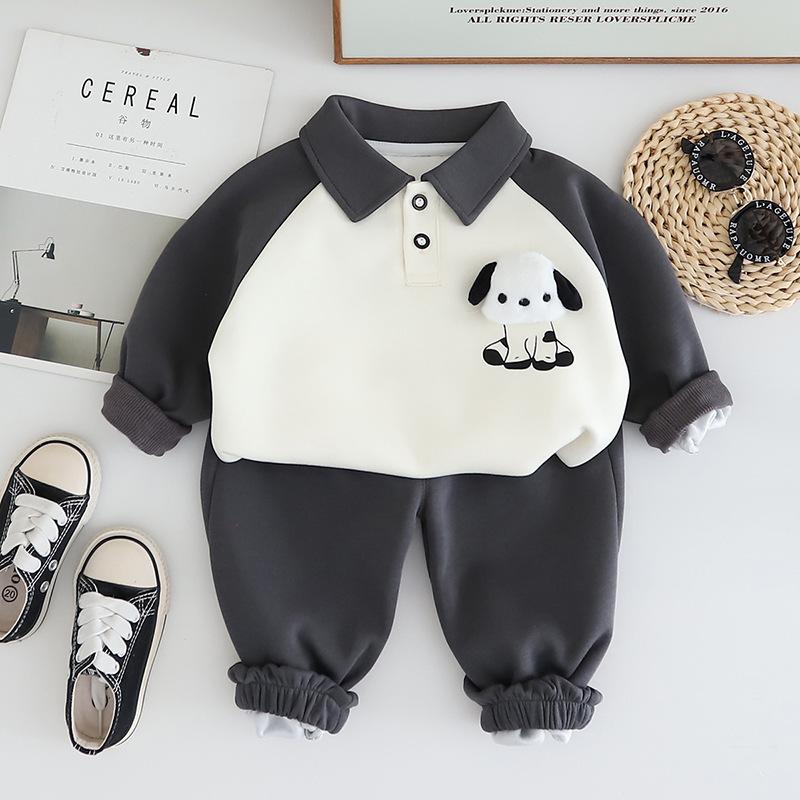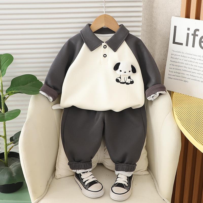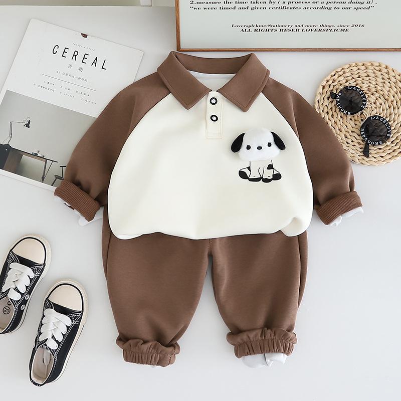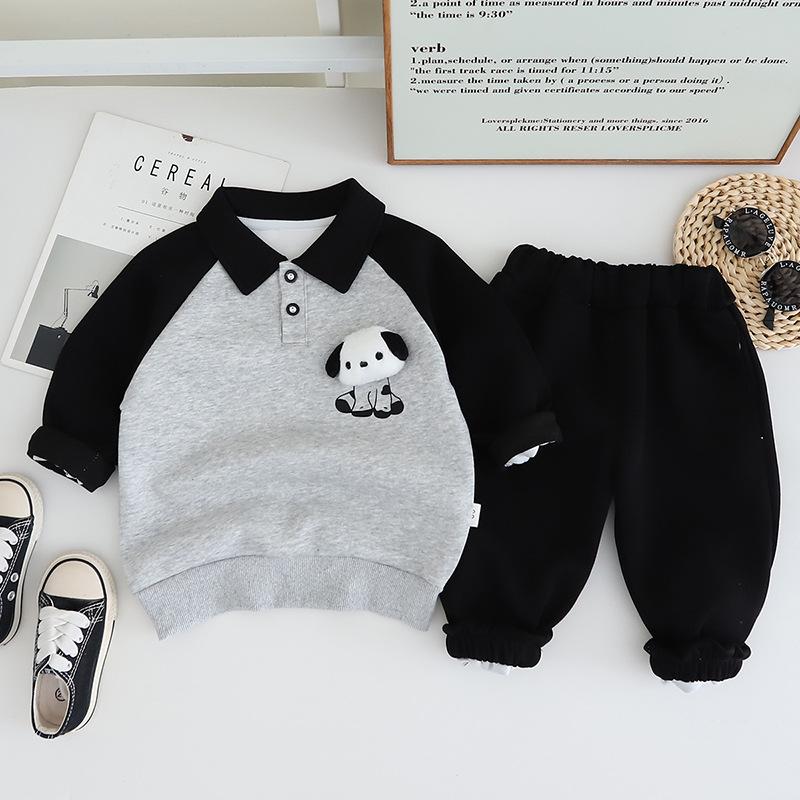 Ropa para niños solapa traje de suéter para niño 2025 primavera y otoño nuevo moda guapo dos piezas ropa de primavera para bebé