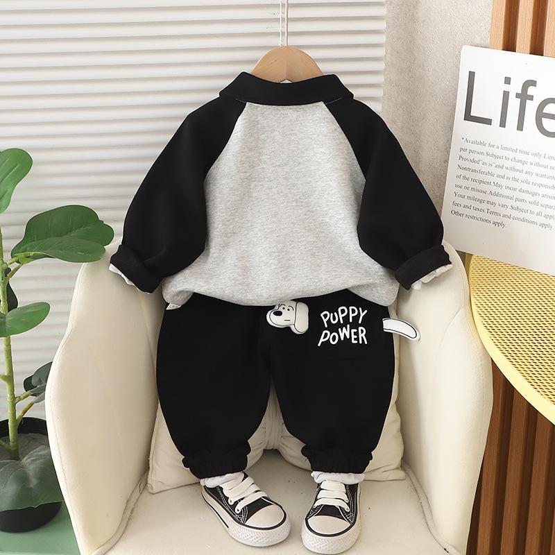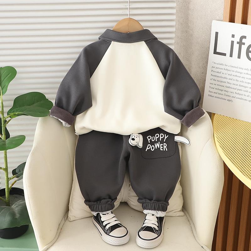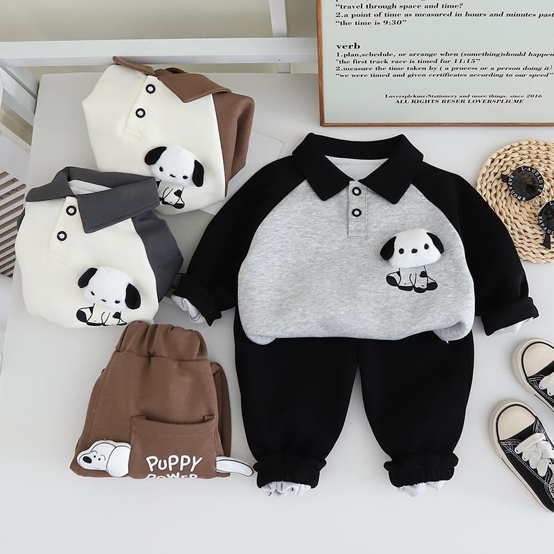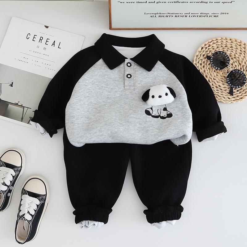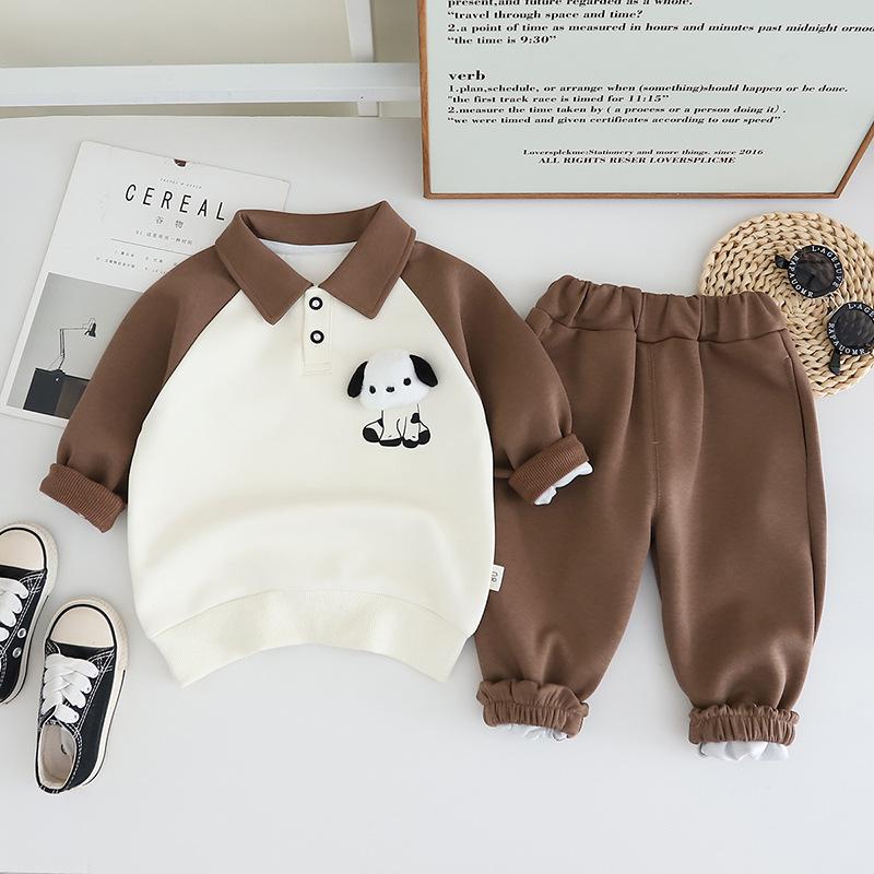 Ropa para niños solapa traje de suéter para niño 2025 primavera y otoño nuevo moda guapo dos piezas ropa de primavera para bebé