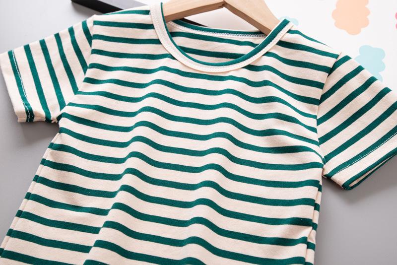 Compra Traje de ropa de verano para niños 2024 Nuevo estilo occidental ropa de verano para bebés y niños ropa infantil de manga corta a rayas al por mayor en Joom.pro