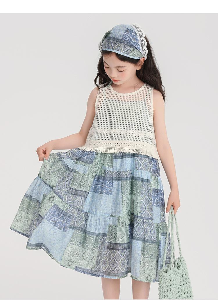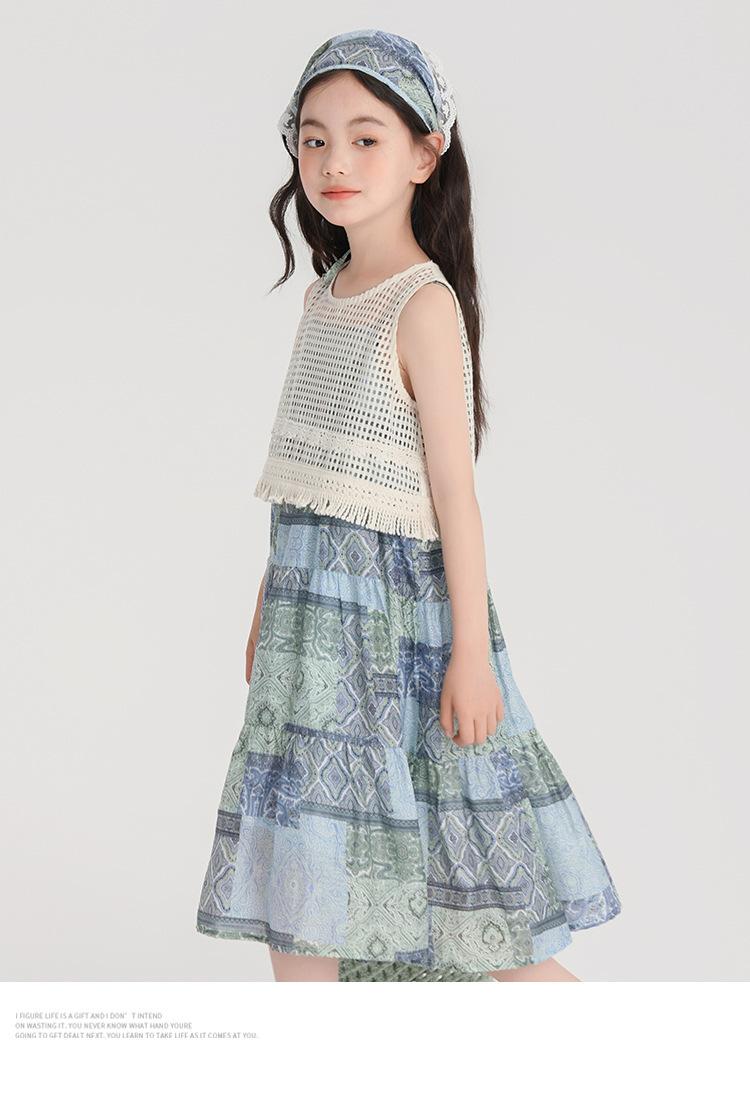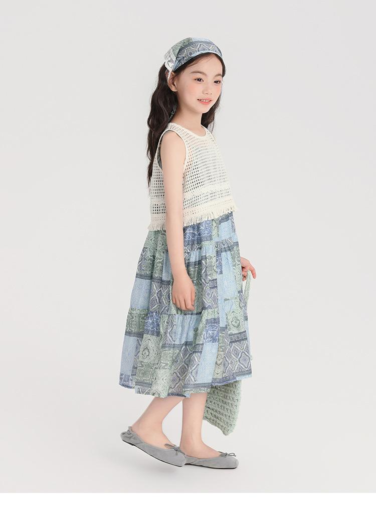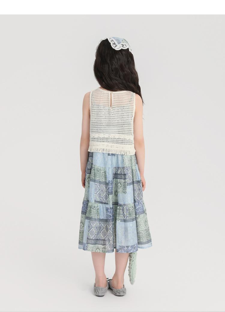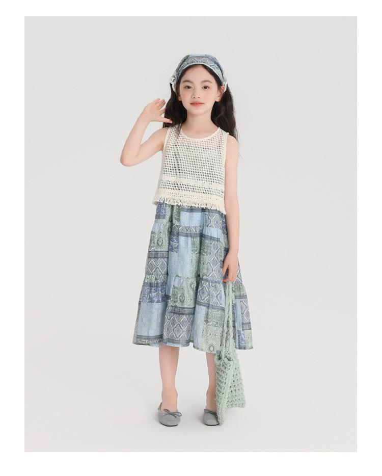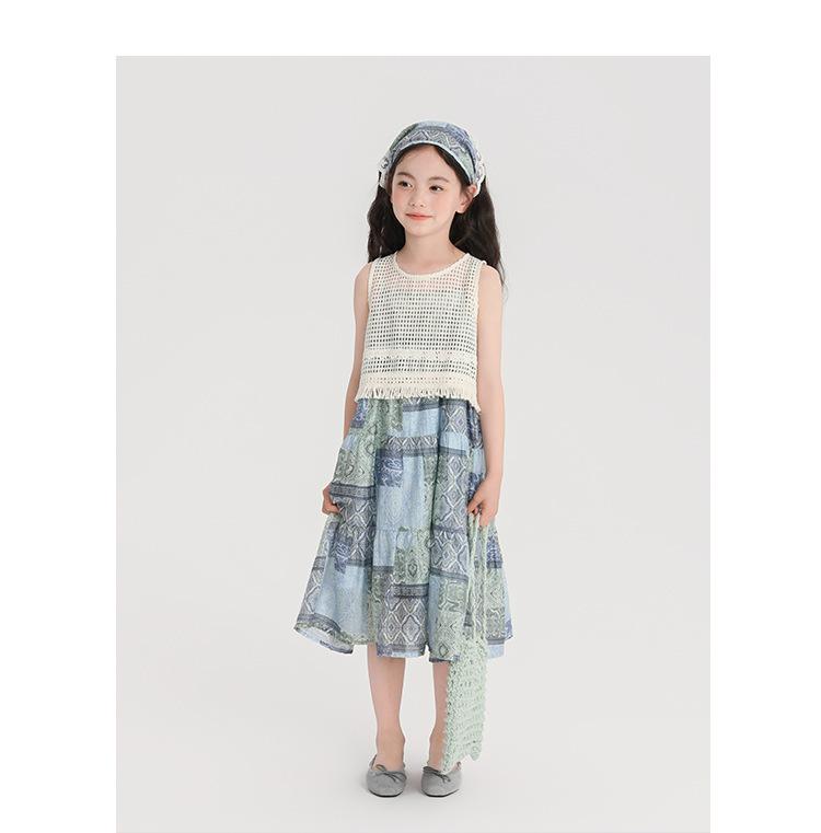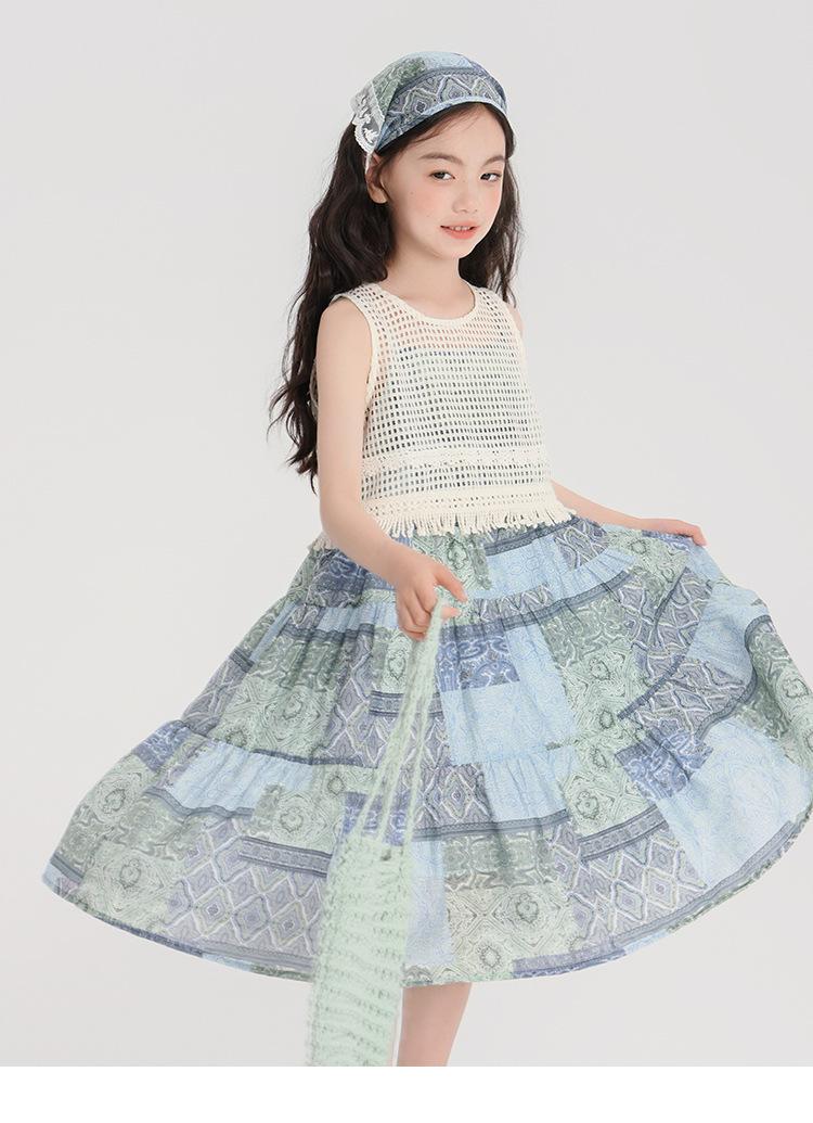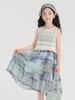 Pudding Haru Ropa para Niños Blusa + Falda 2025 Verano Nuevo Versátil Estilo Vacacional Falda con Tirantes