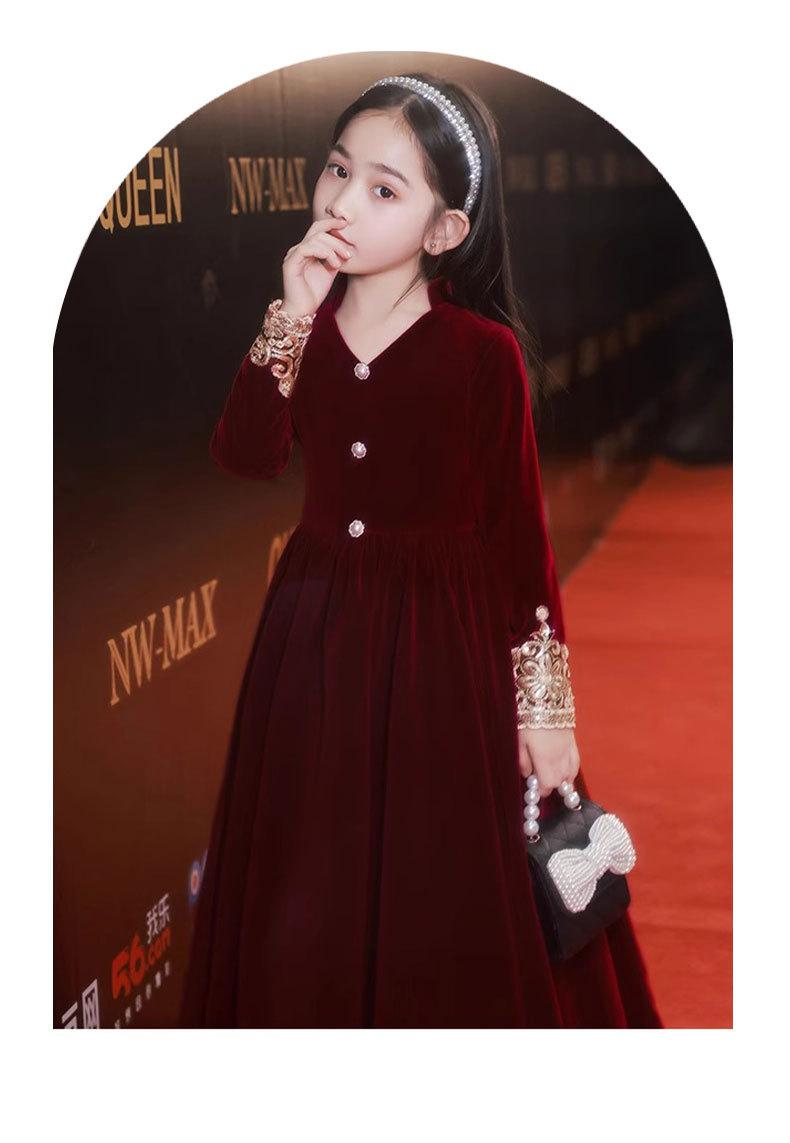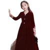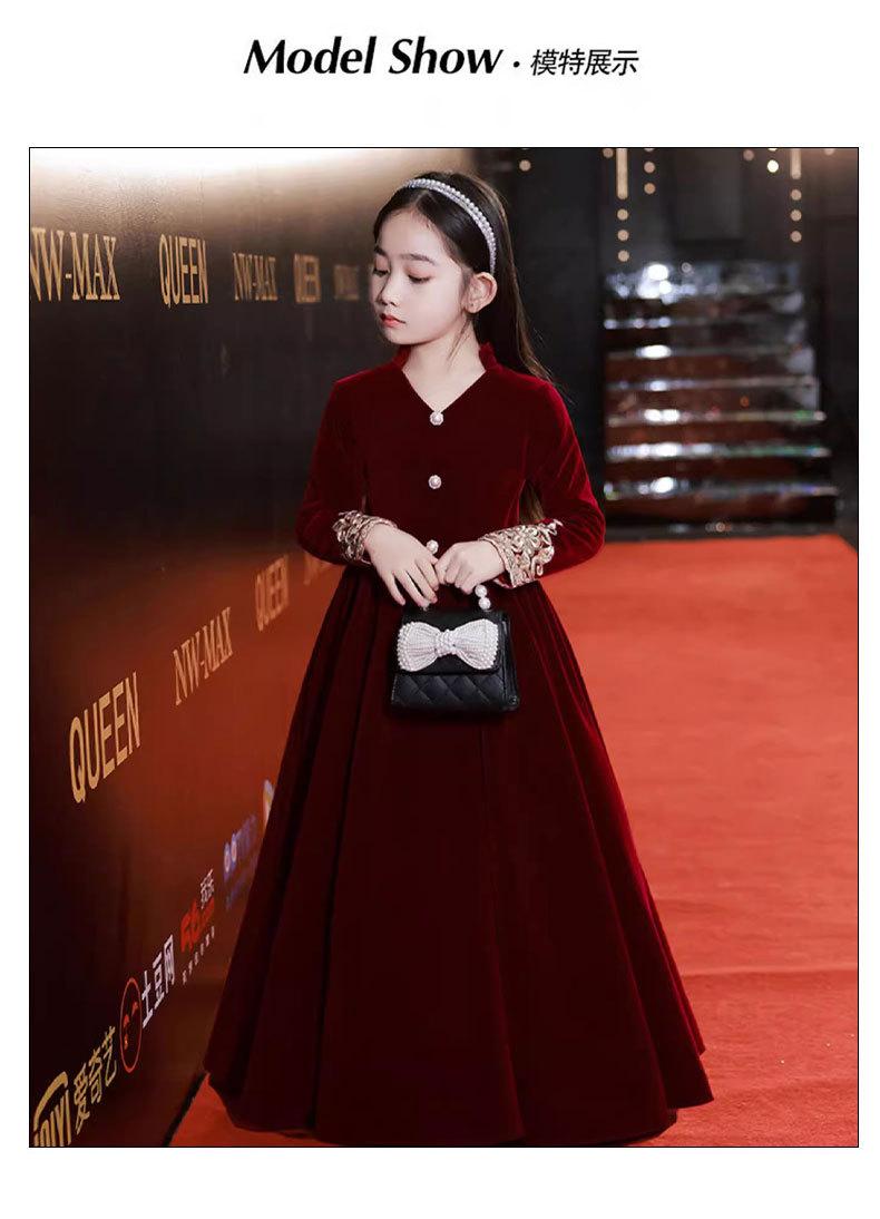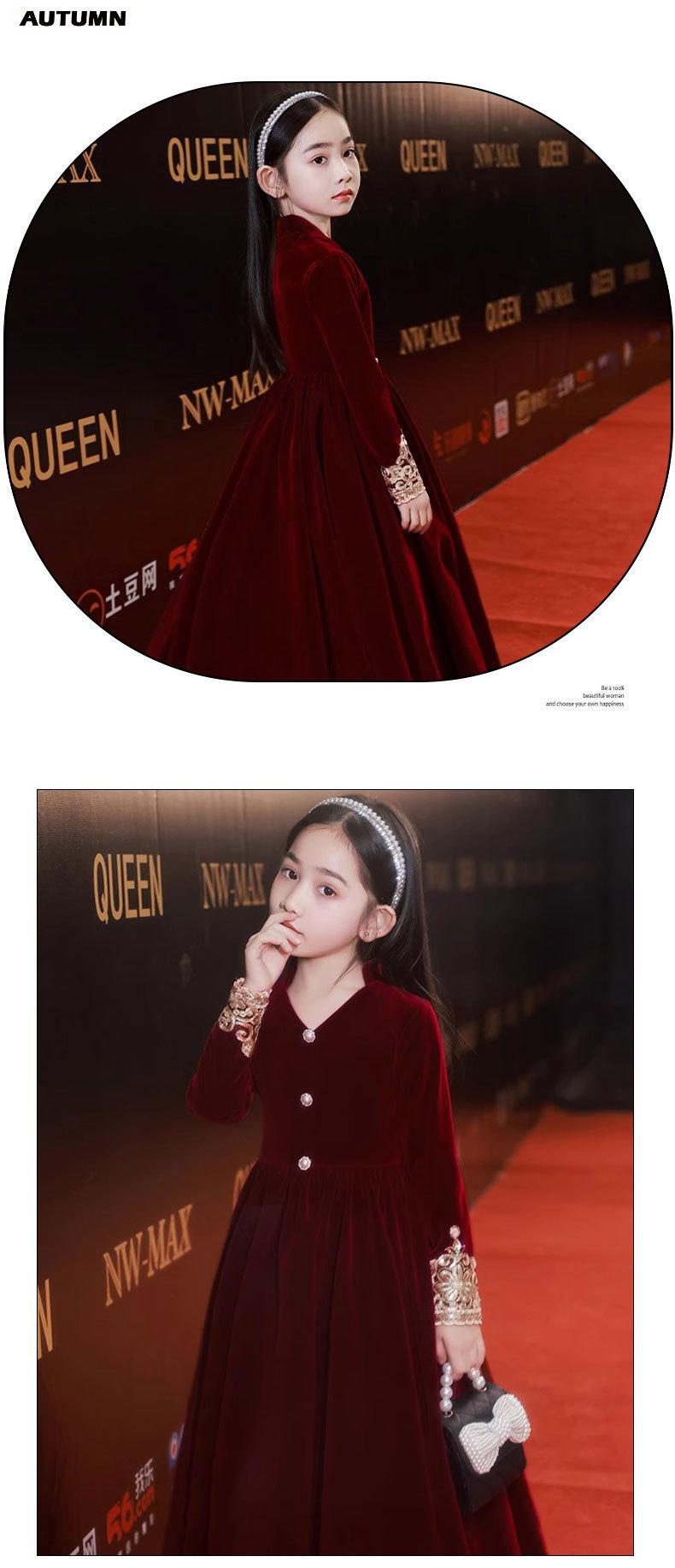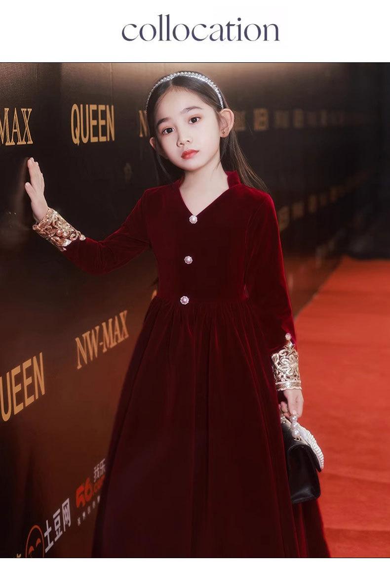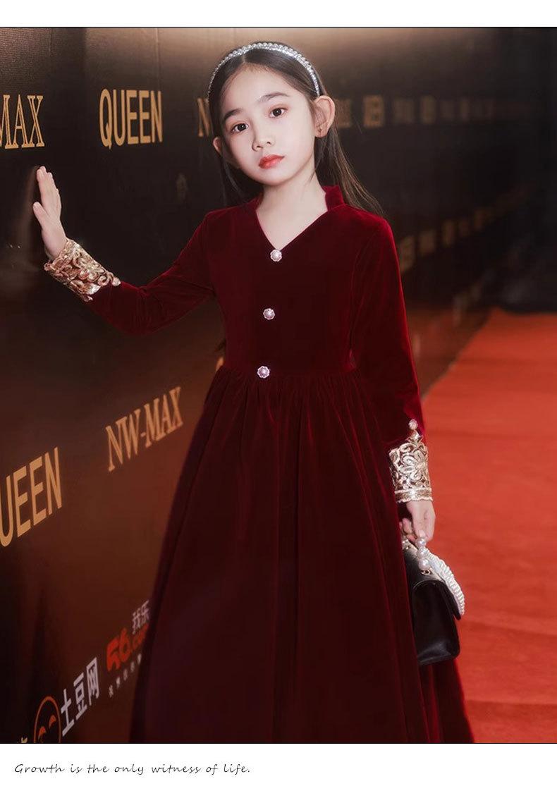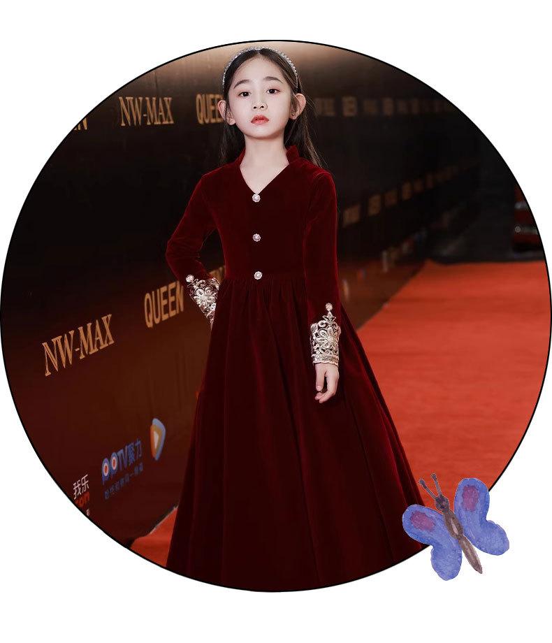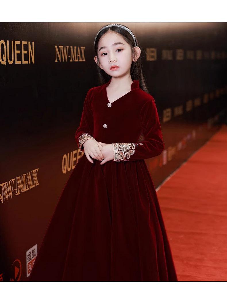 Vestido de Otoño de Manga Larga para Niñas Vestido Rojo de Princesa para Anfitriona Niños Vestido de Niña de las Flores Boda Niña Pequeña Actuación de Piano