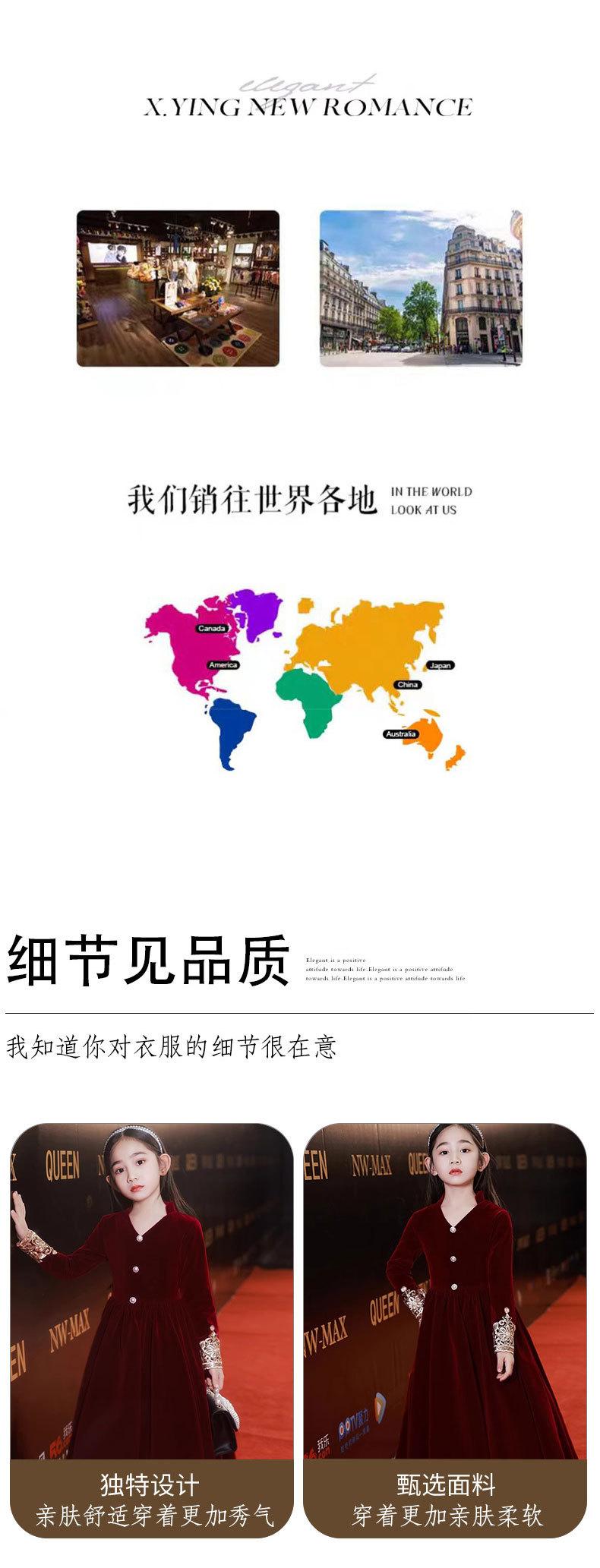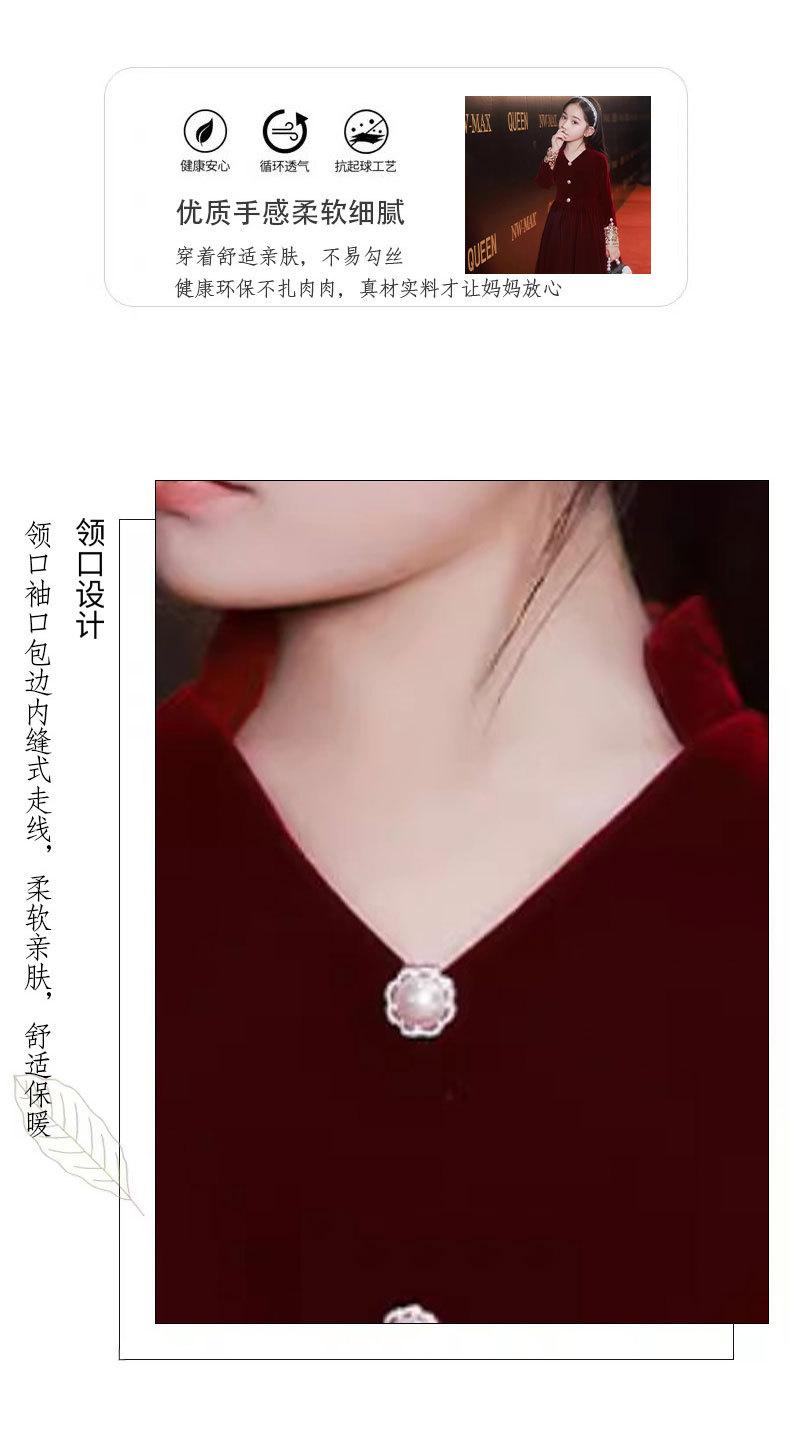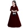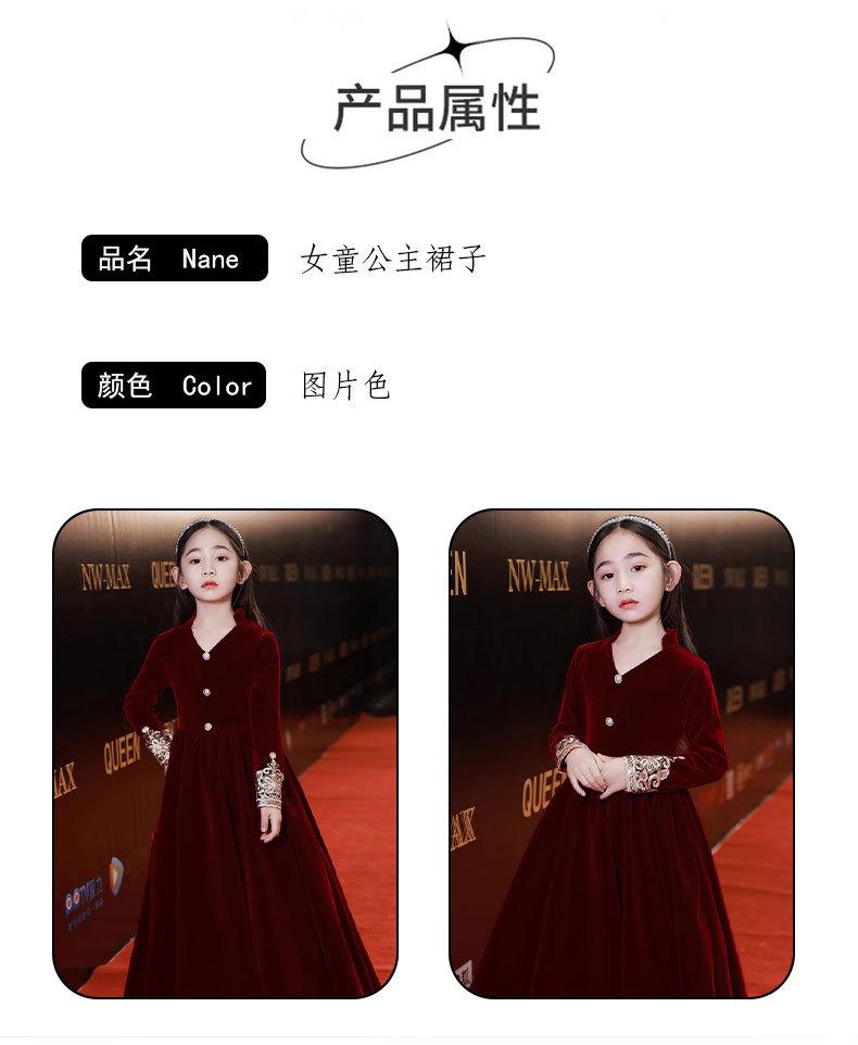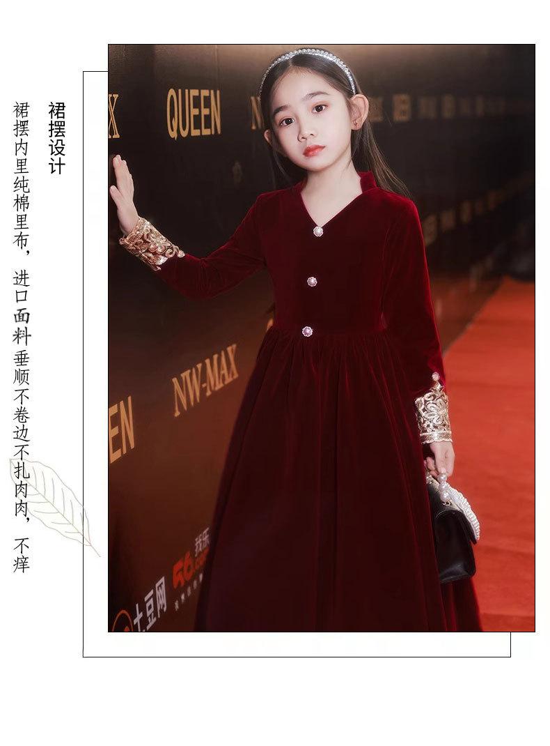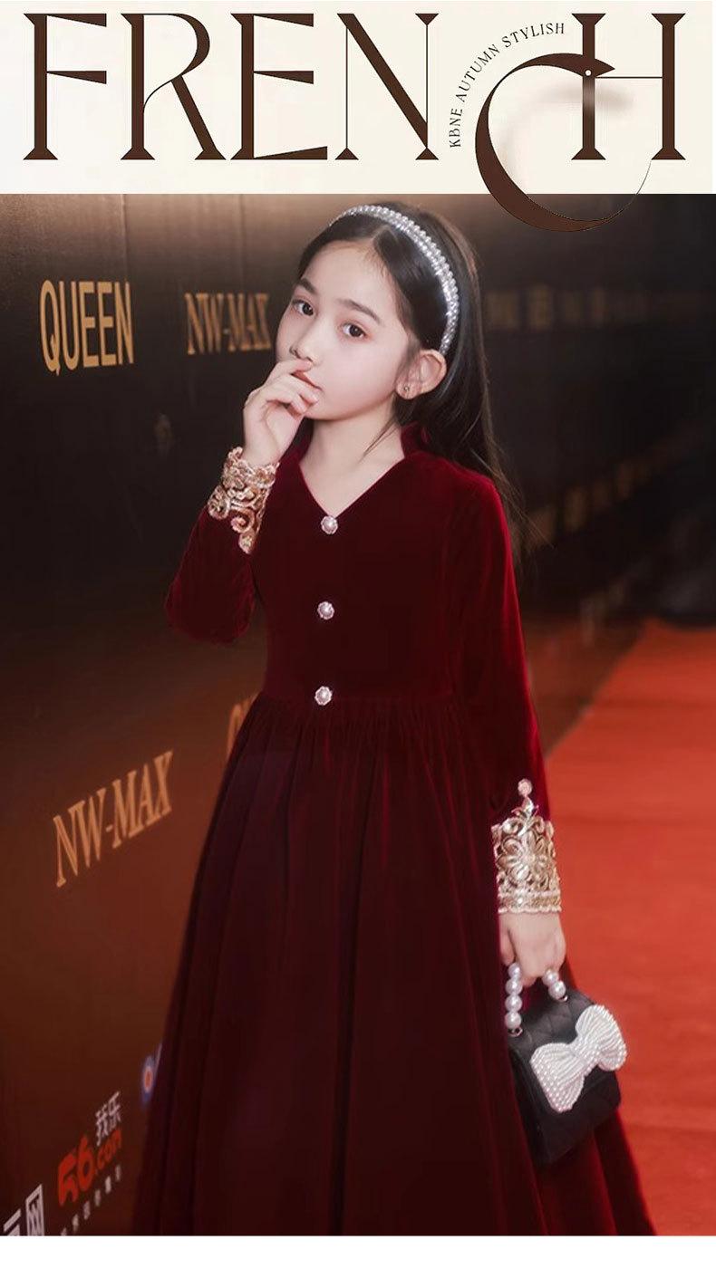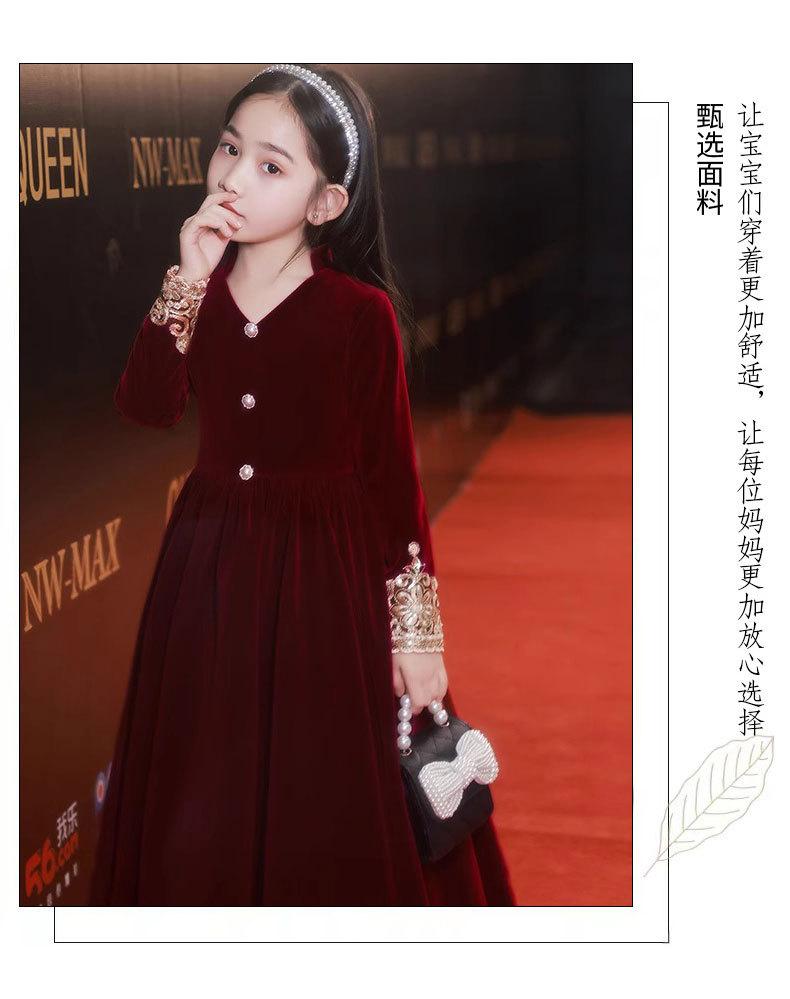 Vestido de Otoño de Manga Larga para Niñas Vestido Rojo de Princesa para Anfitriona Niños Vestido de Niña de las Flores Boda Niña Pequeña Actuación de Piano