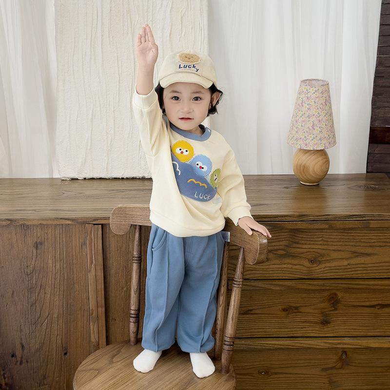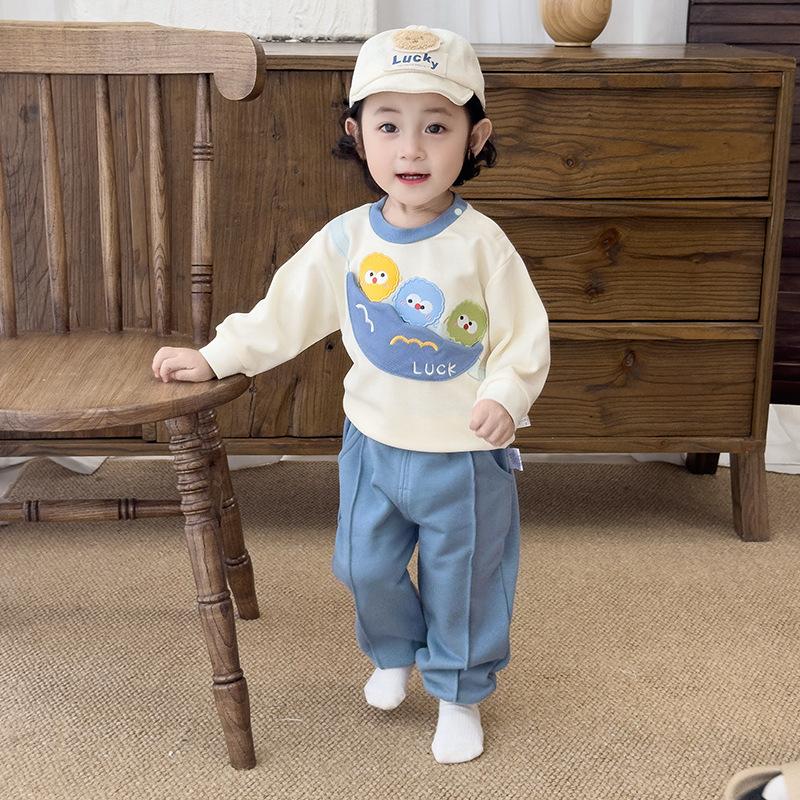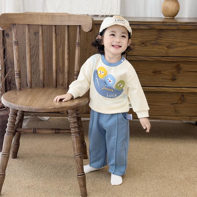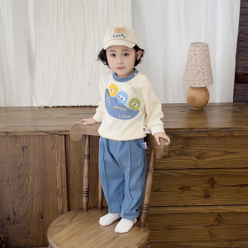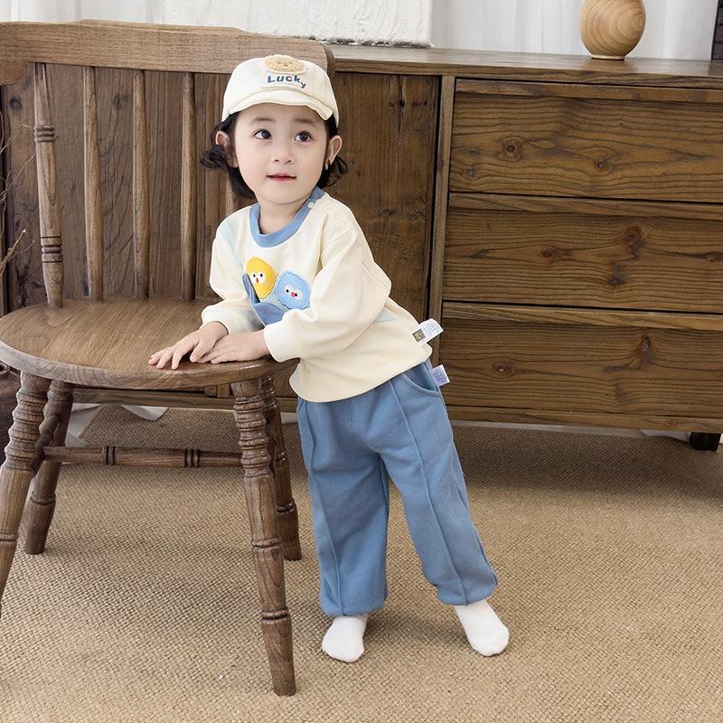 Traje de Otoño para Niños y Niñas, Sudadera Bordada y Pantalones Set de Dos Piezas para Niños, Ropa Divertida e Informal para Salir