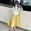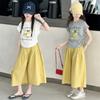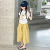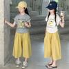 Traje de Manga Corta para Niñas Verano 2025 Nuevo Estilo para Niños Medianos y Grandes Pantalones de Pierna Ancha Traje de Camiseta de Verano para Niña
