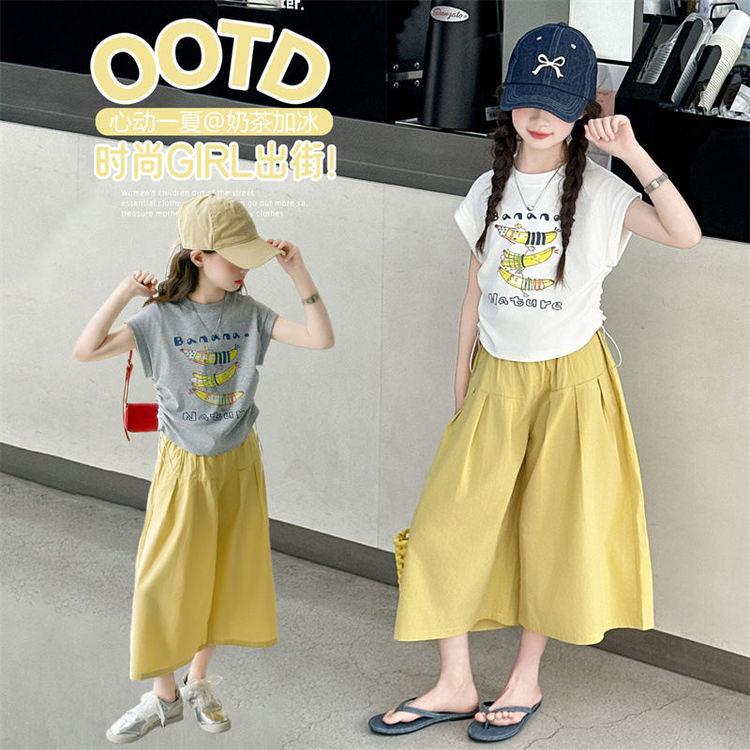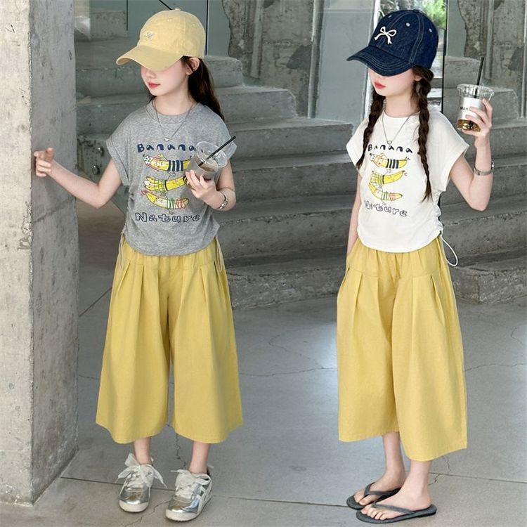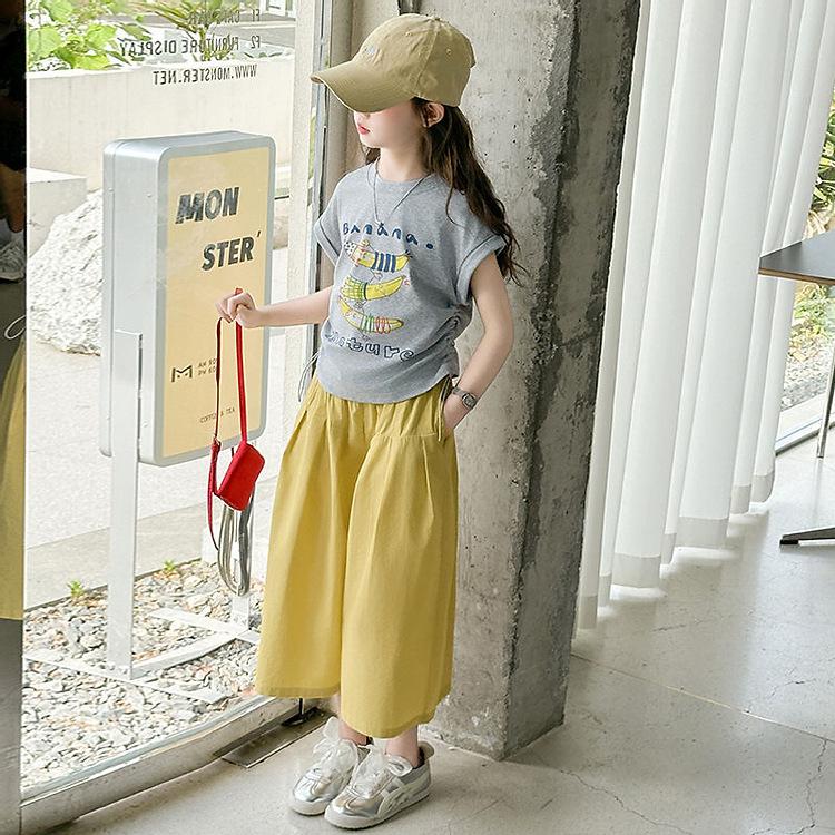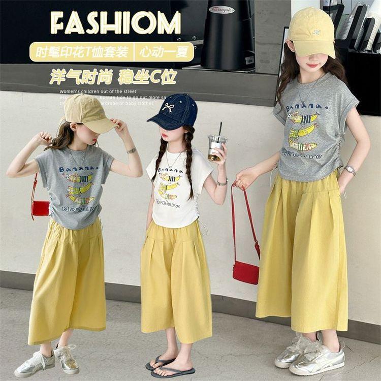 Compra Traje de Manga Corta para Niñas Verano 2025 Nuevo Estilo para Niños Medianos y Grandes Pantalones de Pierna Ancha Traje de Camiseta de Verano para Niña al por mayor en Joom.pro