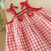 2025 Verano Nuevo Estilo Coreano Vestido de Princesa Cuadros Versátil Casual Niños Bebé Niña Elegante Falda de Tirantes