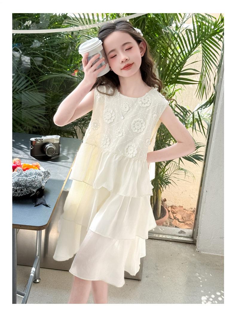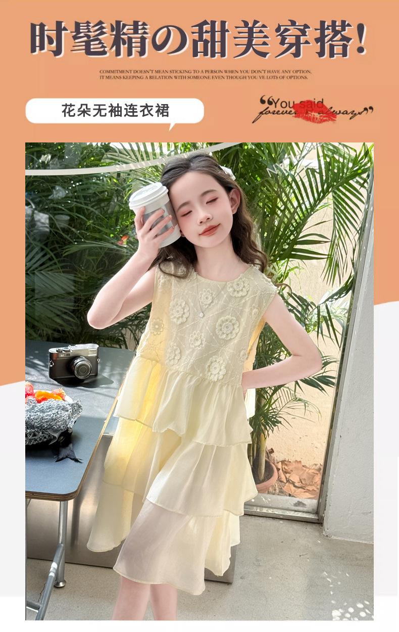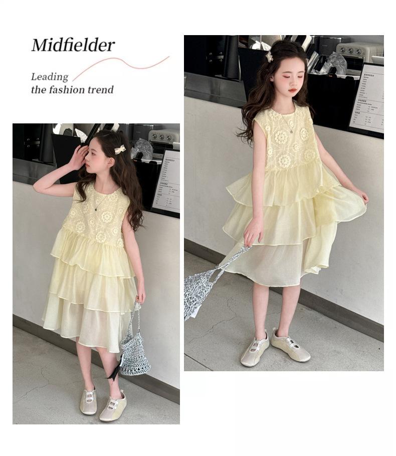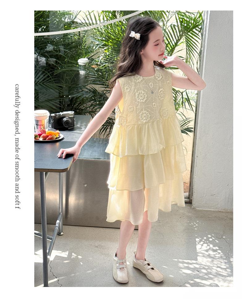 Vestido de Verano para Niñas 2025 Nuevo Estilo Estilo Infantil Mediano y Grande Vestido de Princesa sin Mangas Vestido Chaleco Popular de Moda para Niña