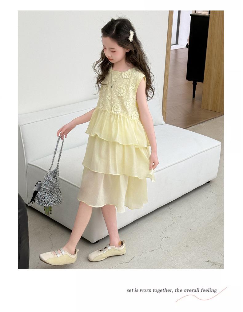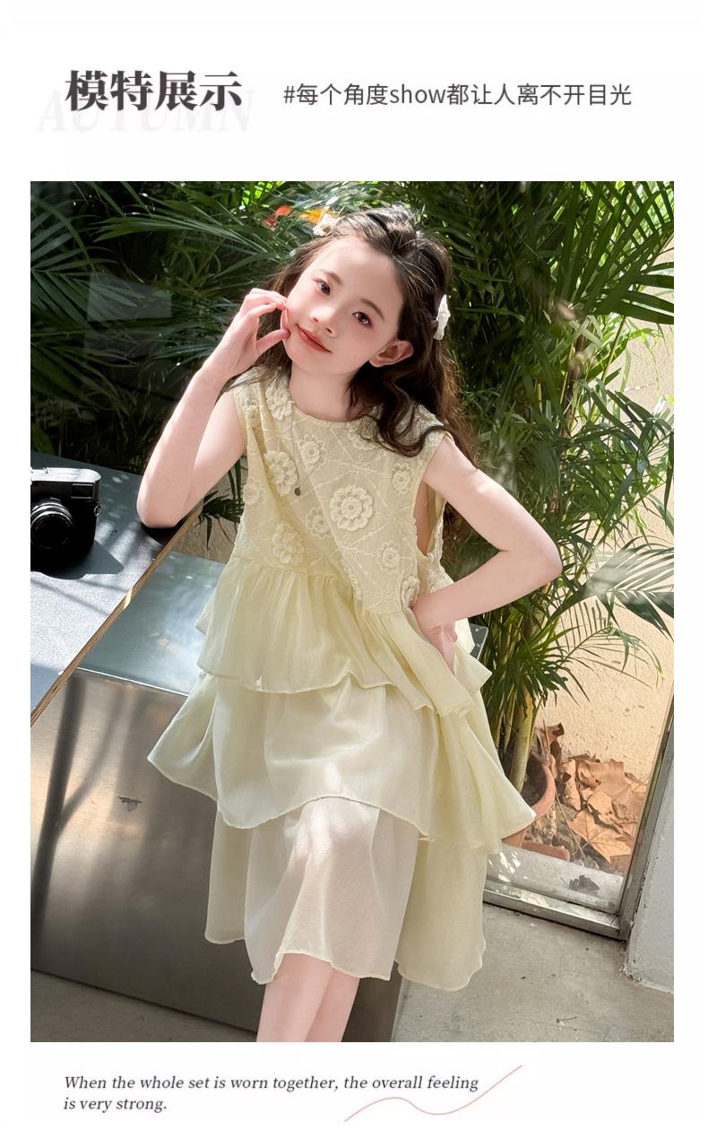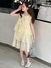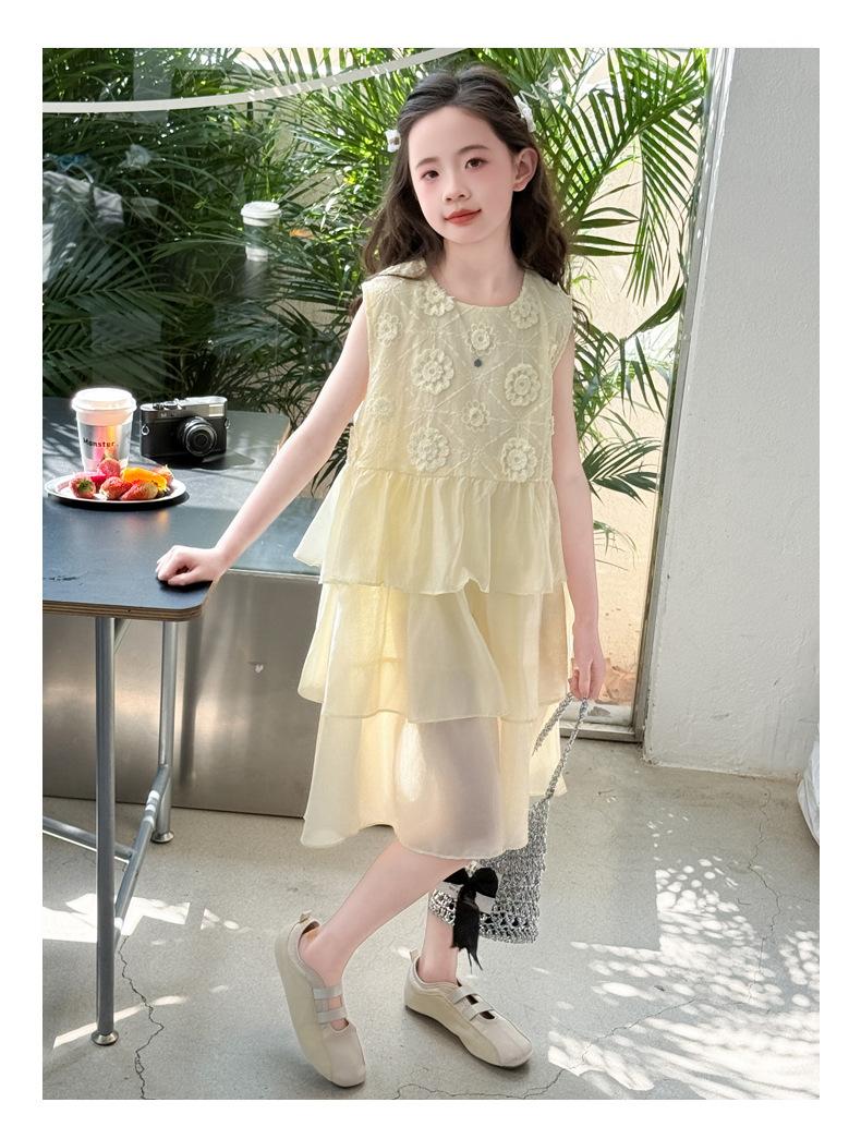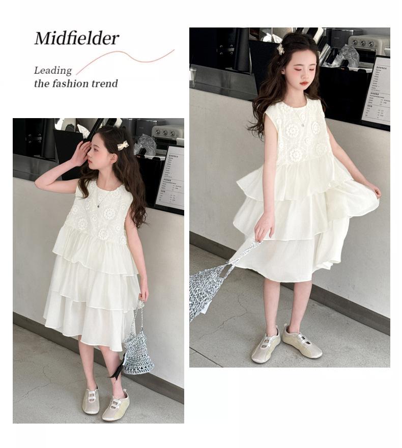 Vestido de Verano para Niñas 2025 Nuevo Estilo Estilo Infantil Mediano y Grande Vestido de Princesa sin Mangas Vestido Chaleco Popular de Moda para Niña