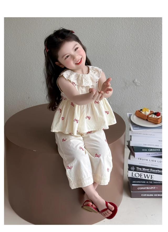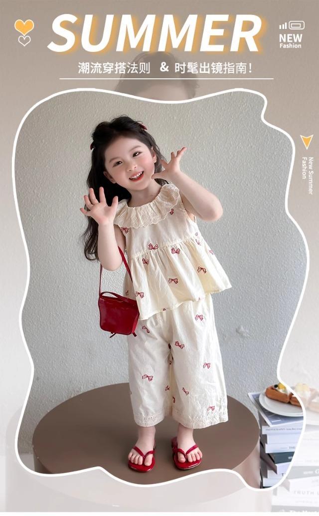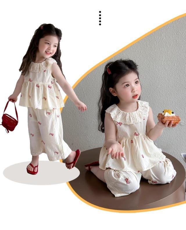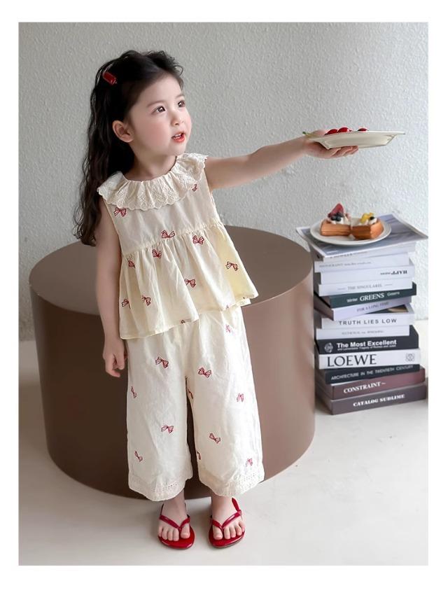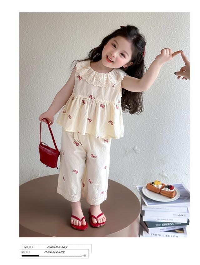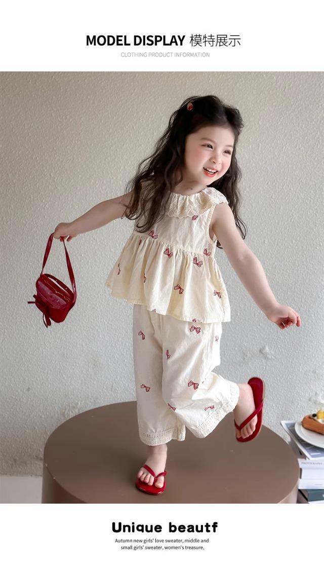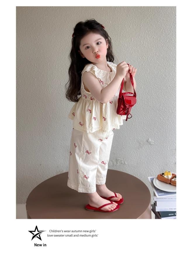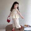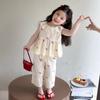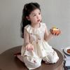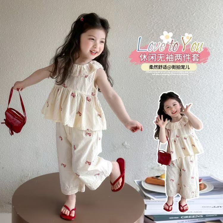 Traje sin mangas para niña Verano 2025 Nuevo estilo Pantalones de pierna ancha a la moda para niña Ropa infantil estilo coreano
