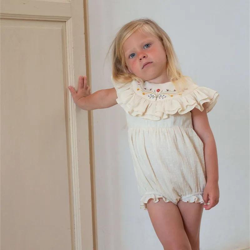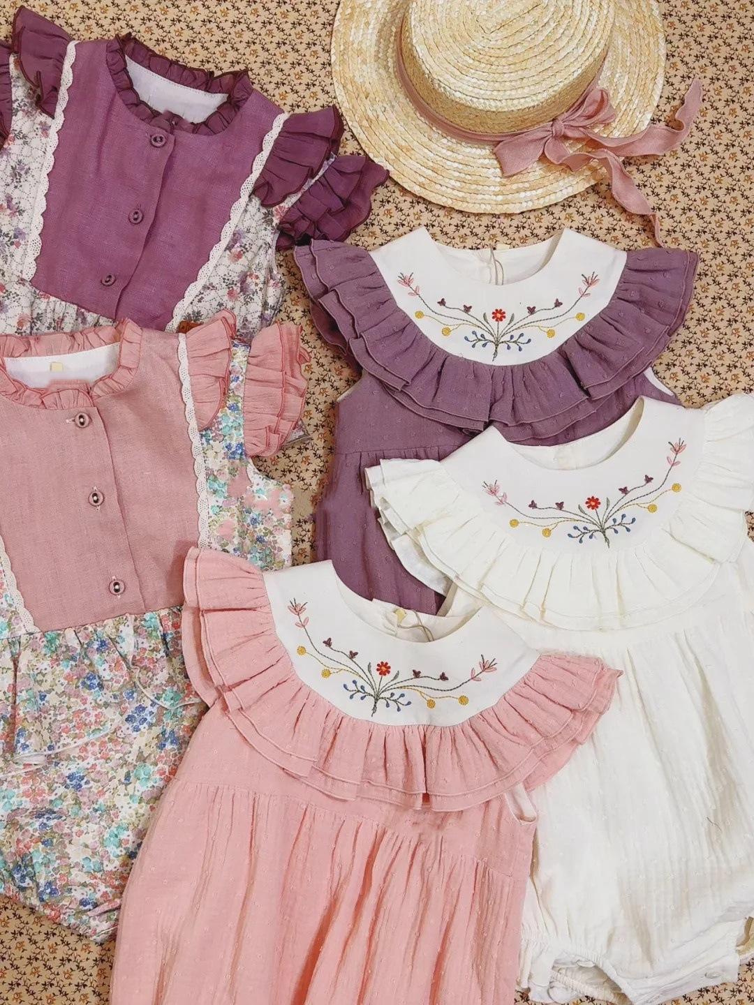 Mameluco de Verano para Bebé 2025 Ropa Infantil Dulce Floral Traje para Gatear Lindo Verano Elegante Bordado Mono