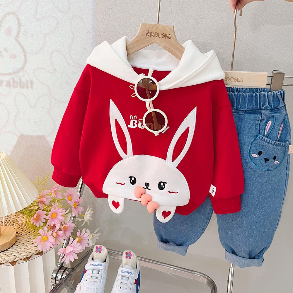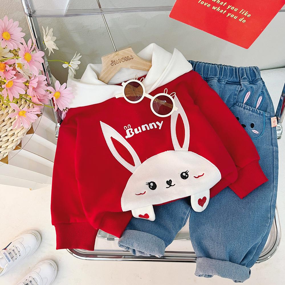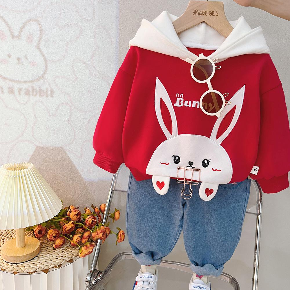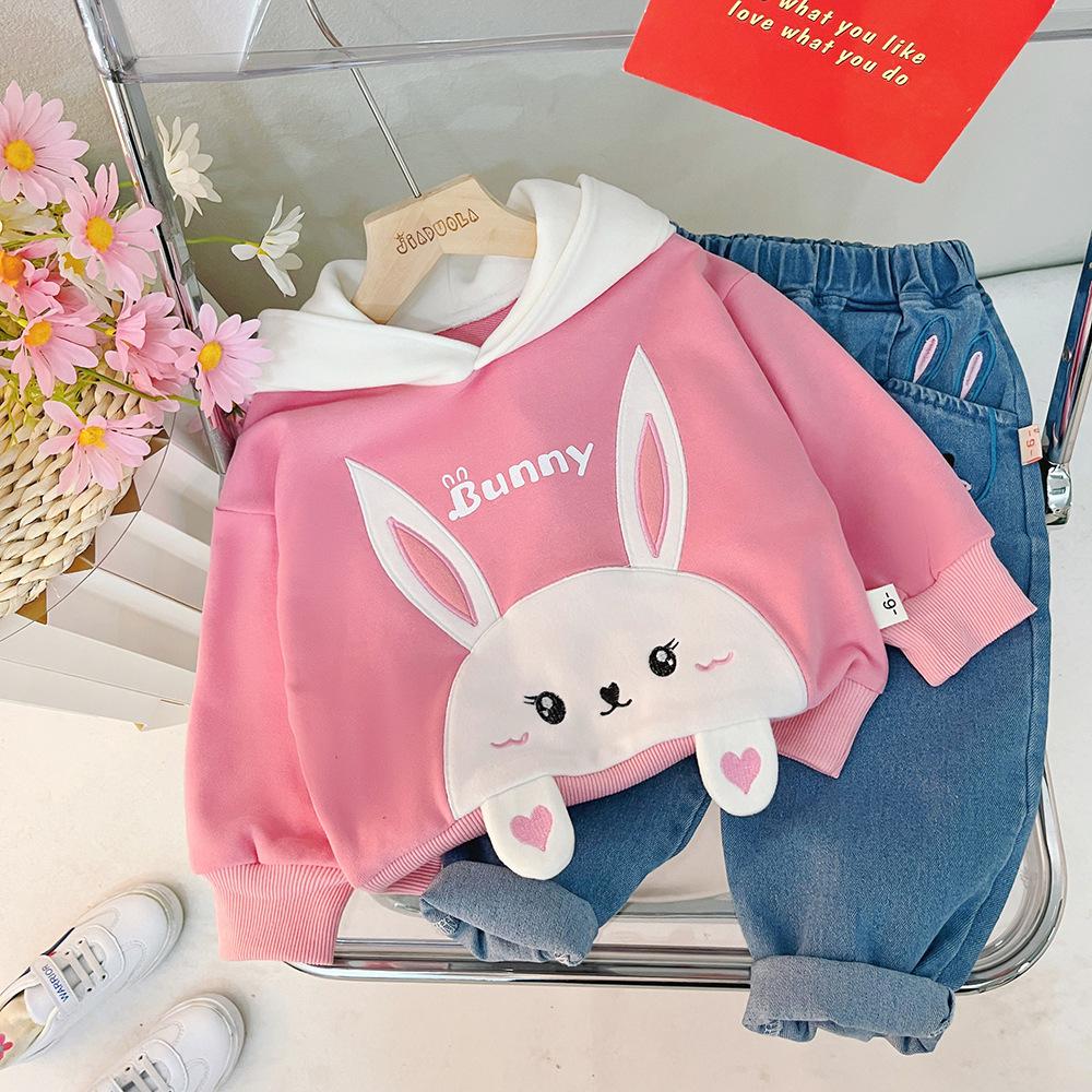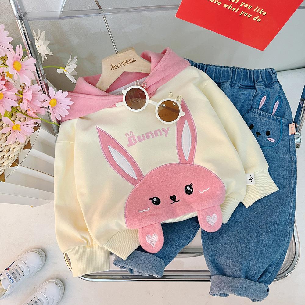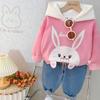 Ropa de otoño para niñas traje deportivo 2023 nuevo estilo occidental moderno lindo conejo de dibujos animados 1-3 años bebé niña ropa de baño