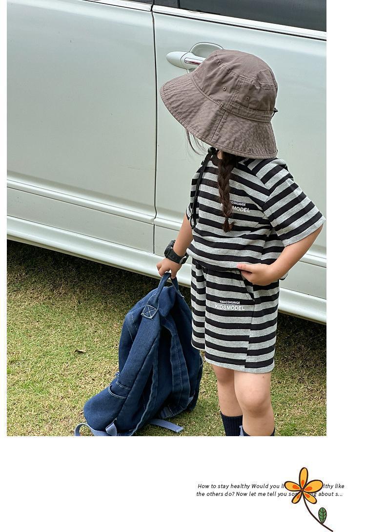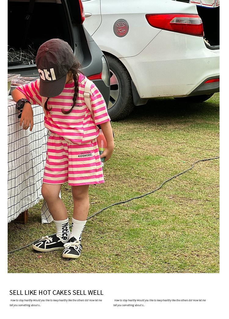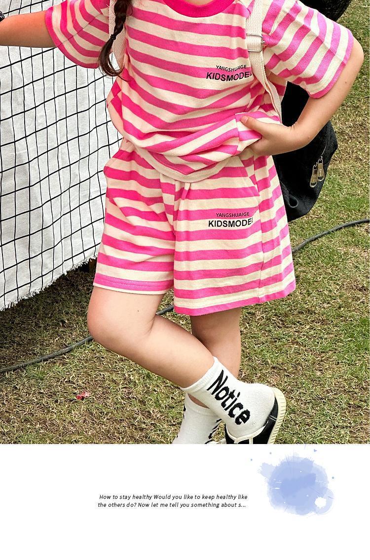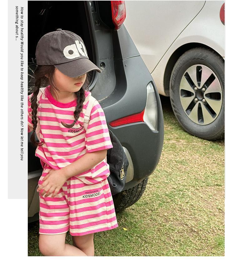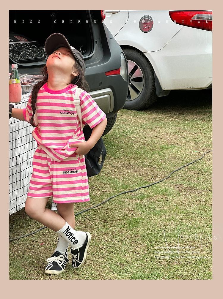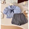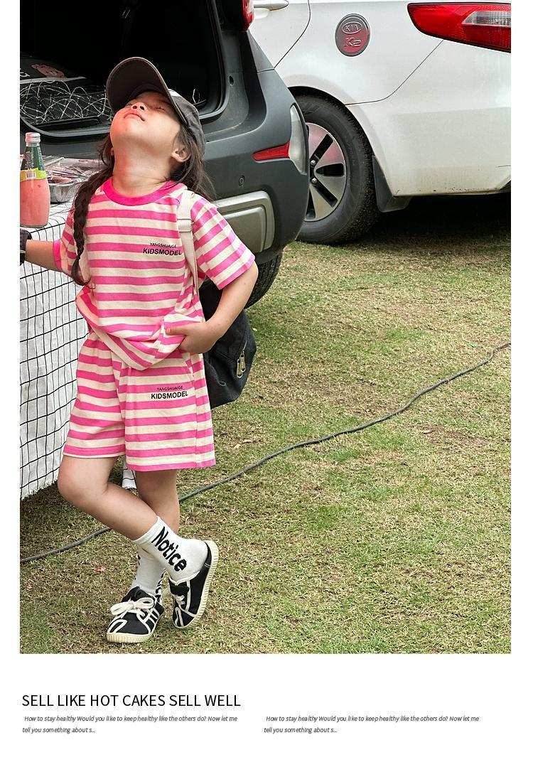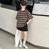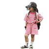 Traje a rayas para niños estilo coreano 2025 Verano Nuevo Bebé Elegante Manga Corta Niñas Casual Moderno Conjunto de dos piezas
