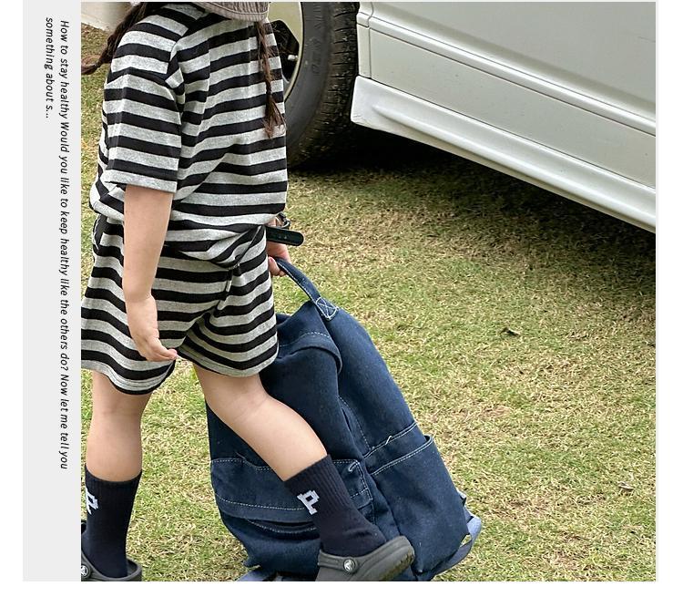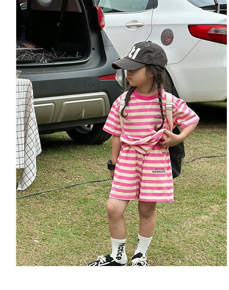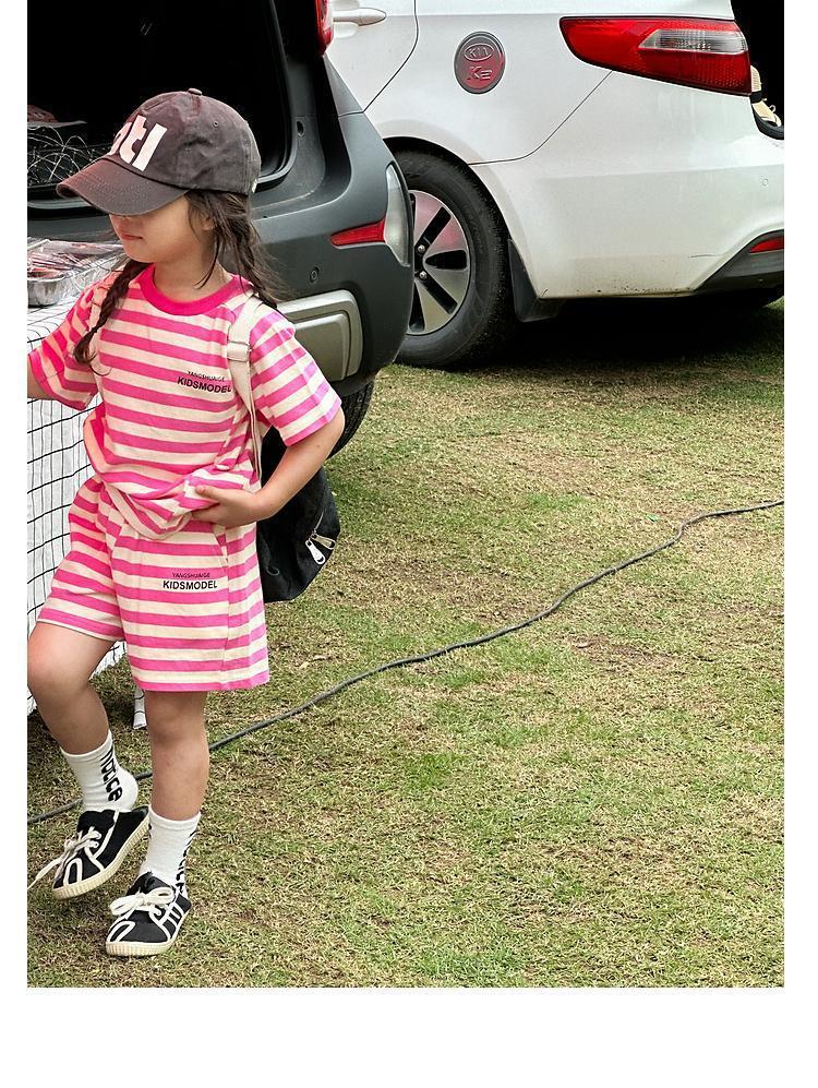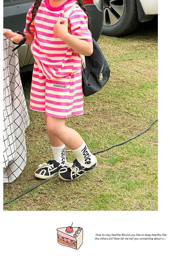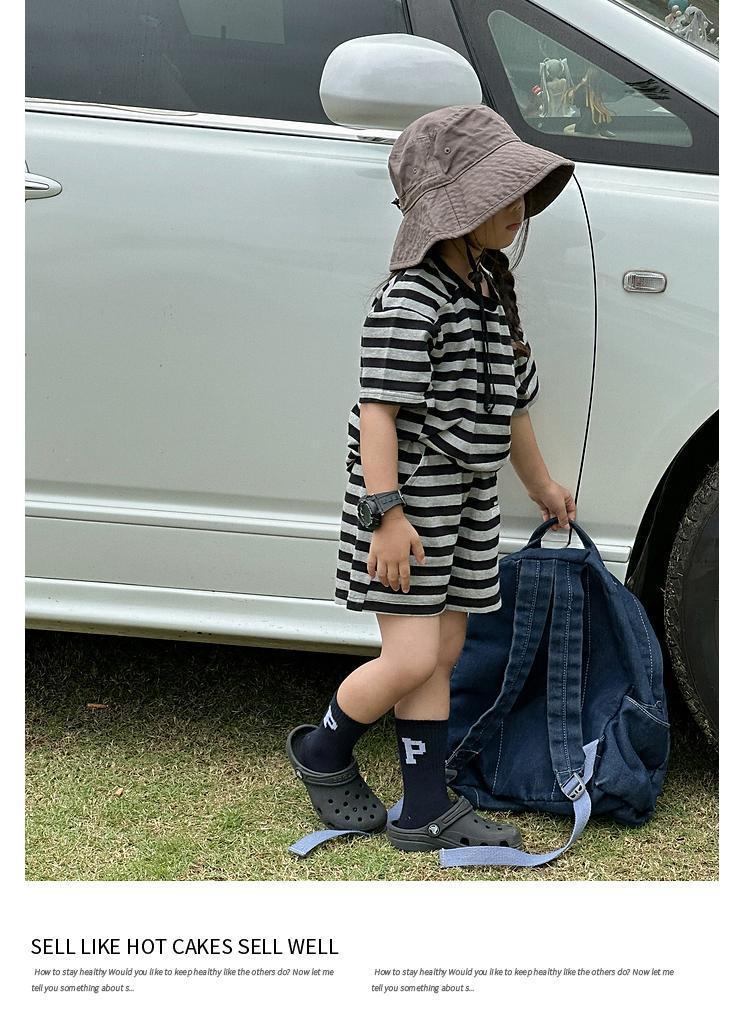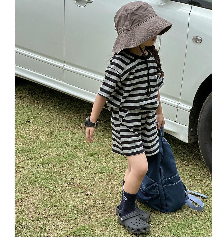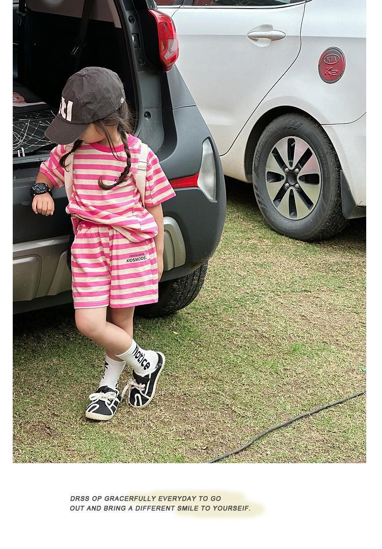 Traje a rayas para niños estilo coreano 2025 Verano Nuevo Bebé Elegante Manga Corta Niñas Casual Moderno Conjunto de dos piezas