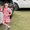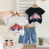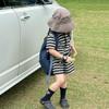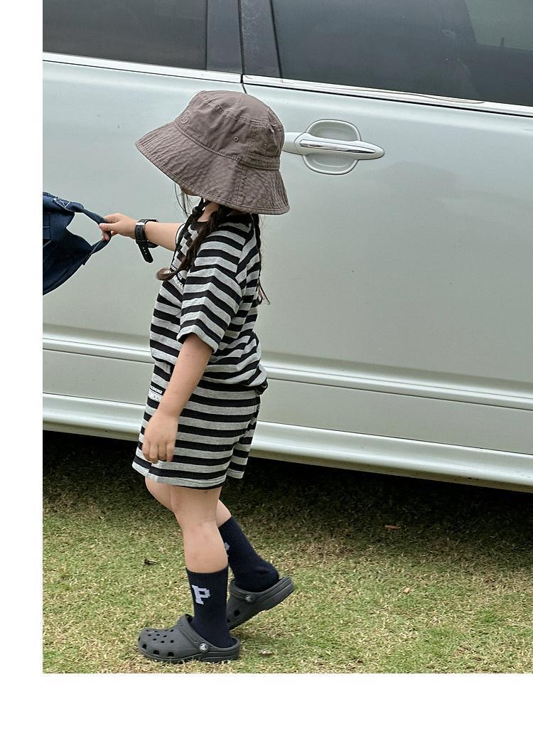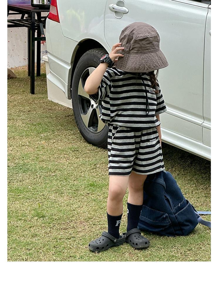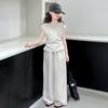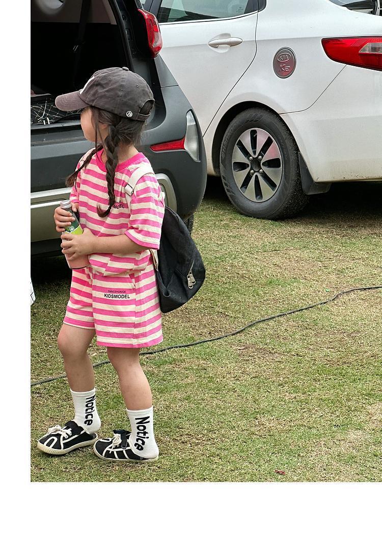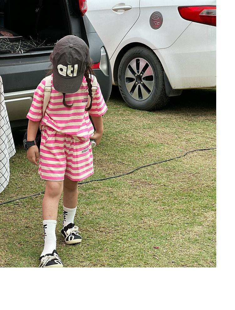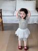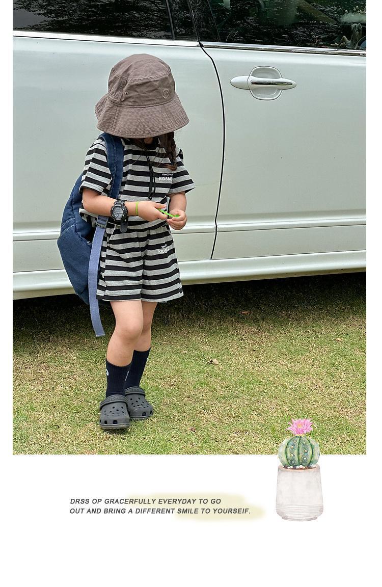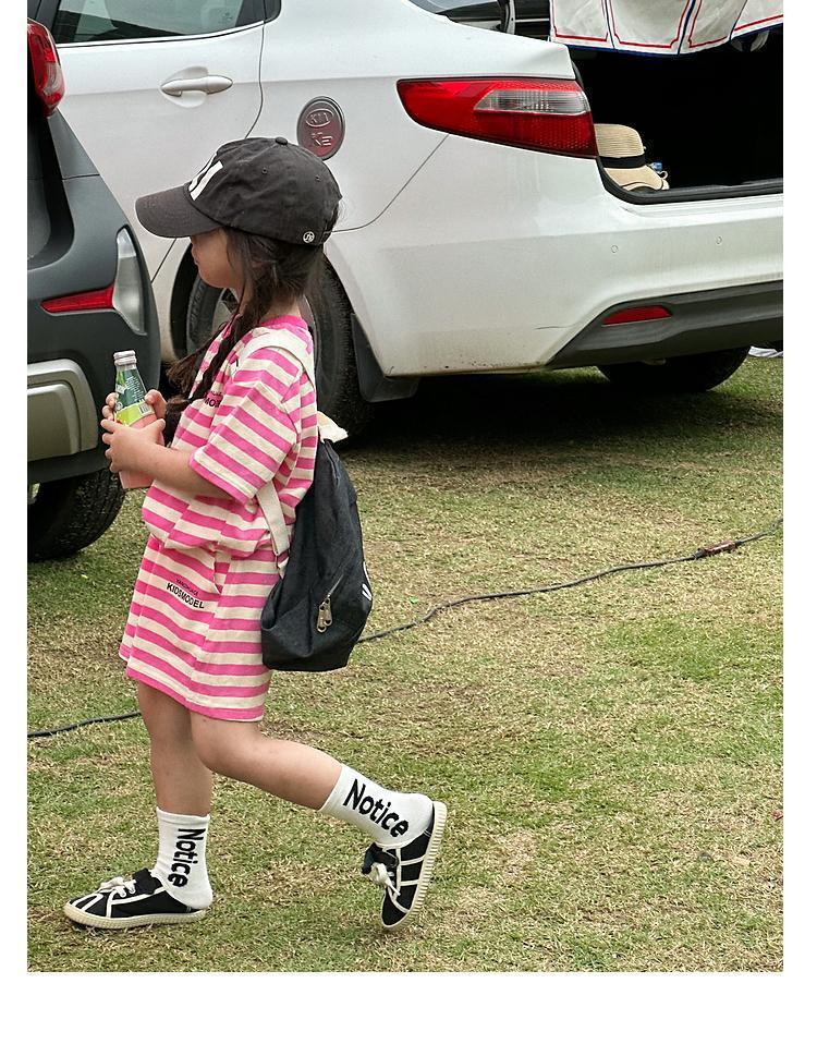 Traje a rayas para niños estilo coreano 2025 Verano Nuevo Bebé Elegante Manga Corta Niñas Casual Moderno Conjunto de dos piezas