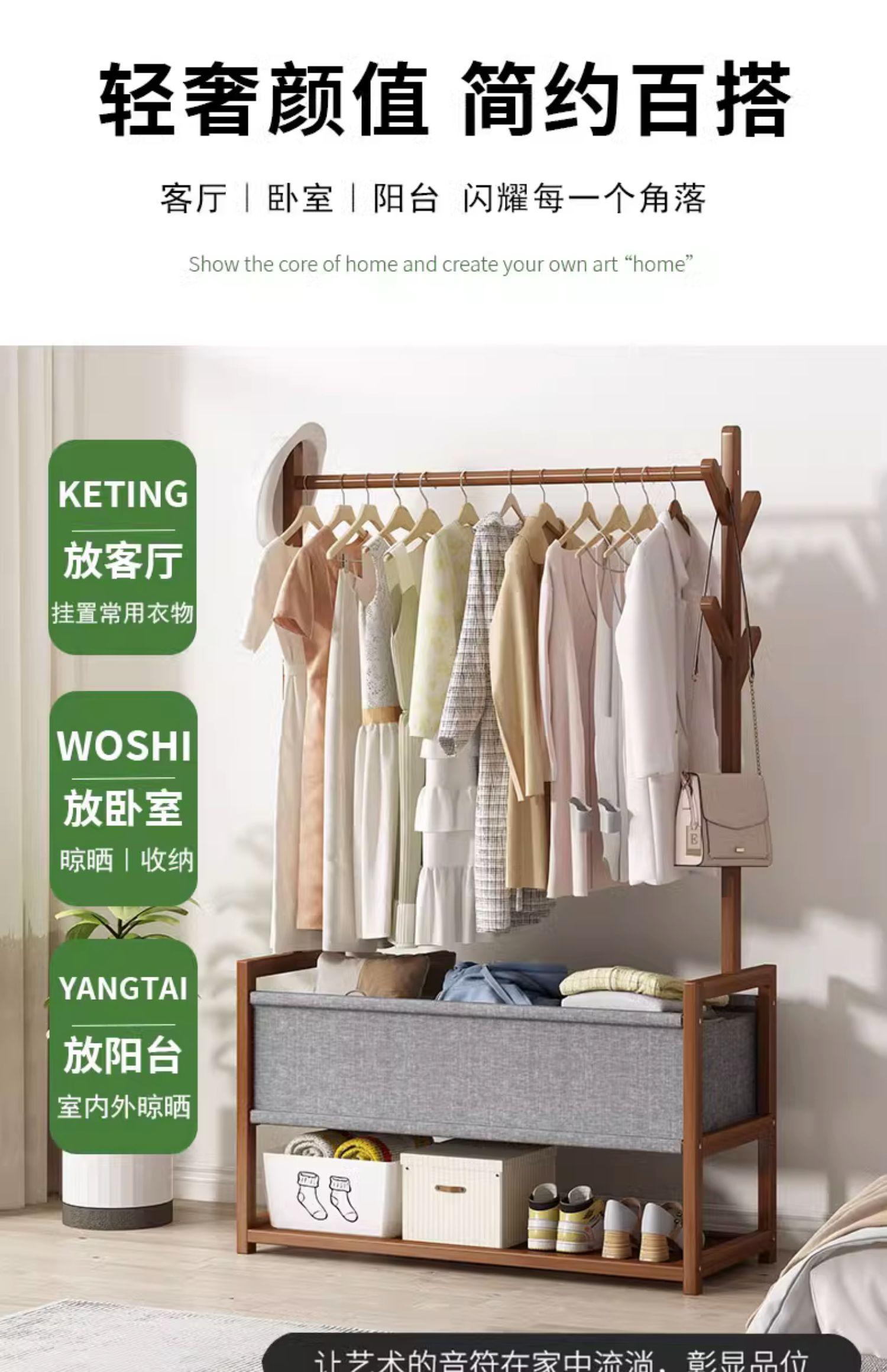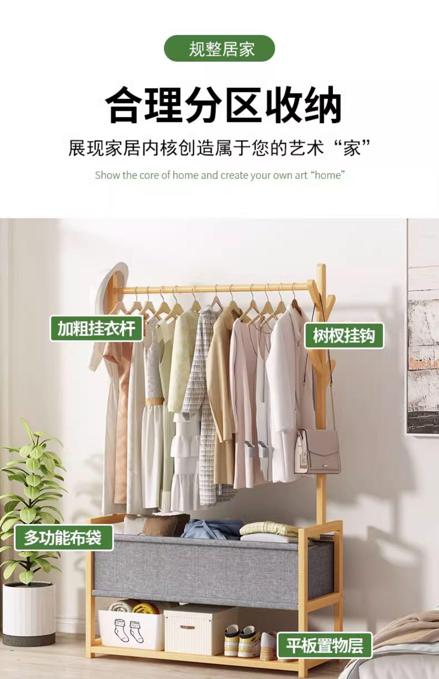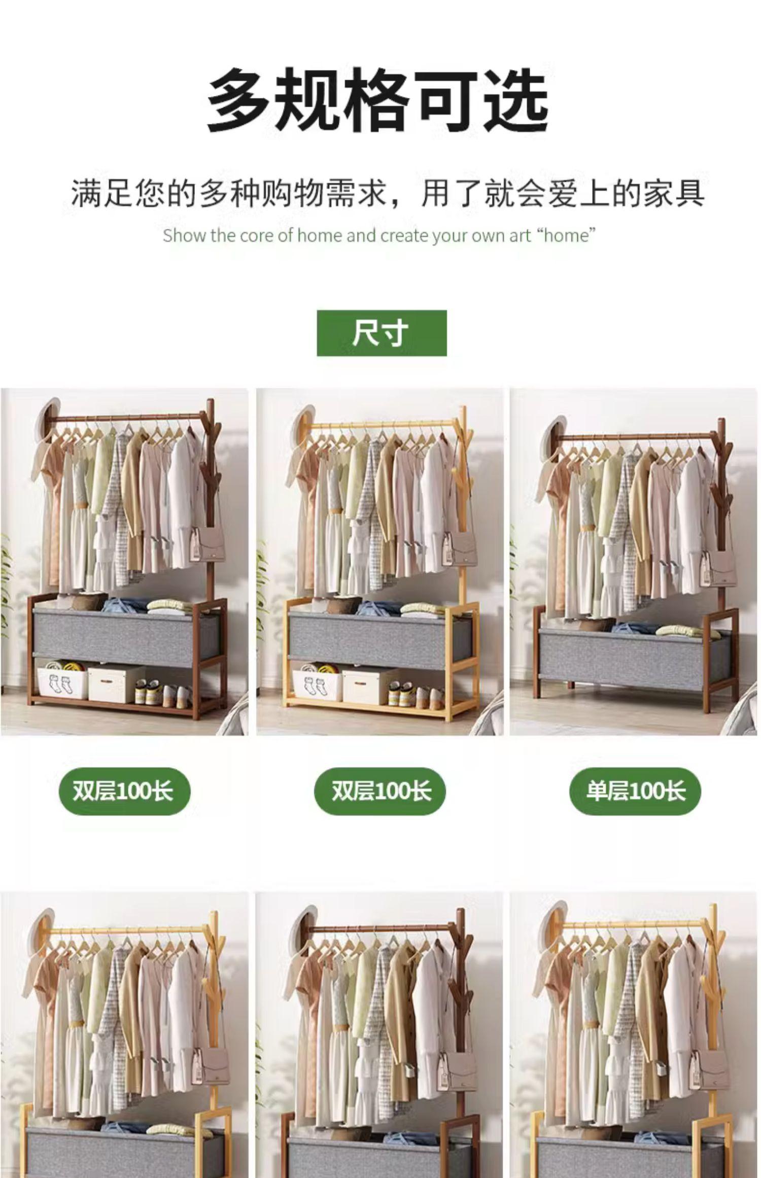 Perchero de Pie Fuente para Ropa Dormitorio Mesita de Noche Almacenamiento de Ropa Madera Maciza Perchero Estante de Almacenamiento Alquiler de Dormitorio