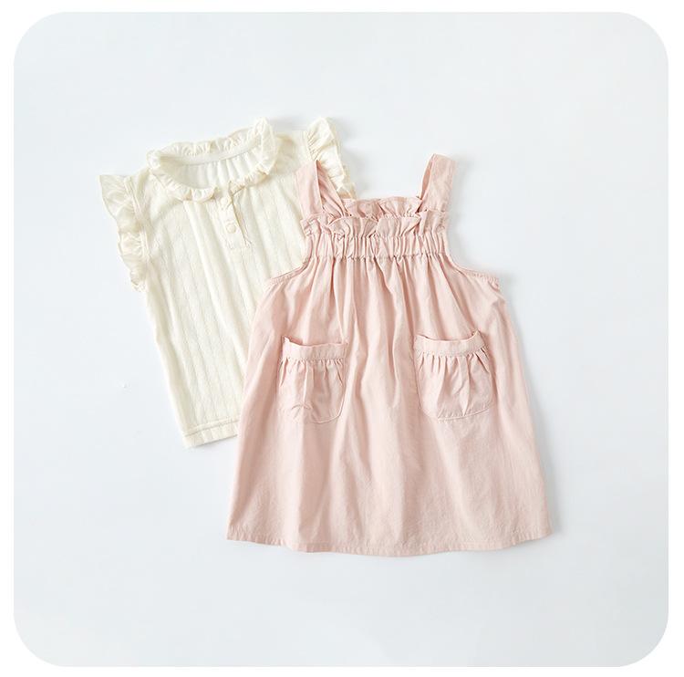 Compra Traje de falda con tirantes y bolsillo para niña 2025 Verano Nuevo Bebé Top sin mangas Falda Abertura Conjunto de dos piezas al por mayor en Joom.pro