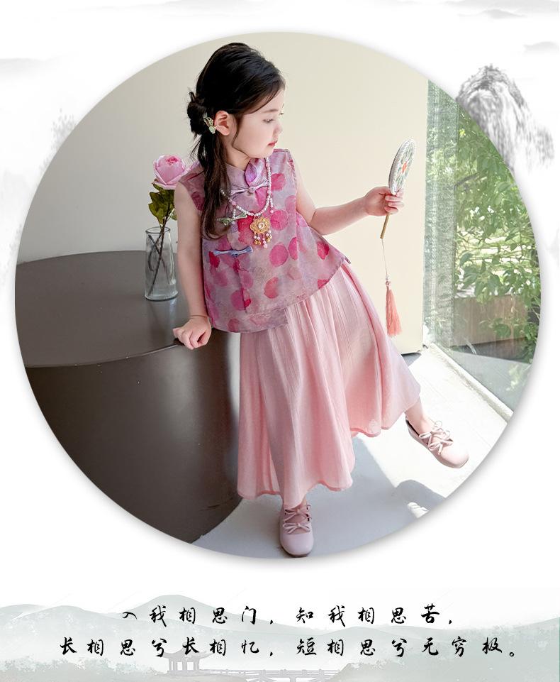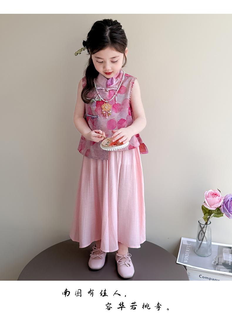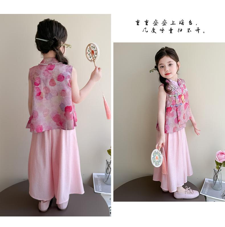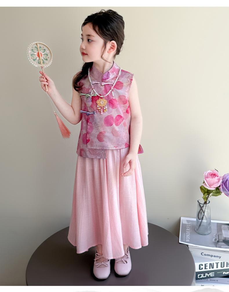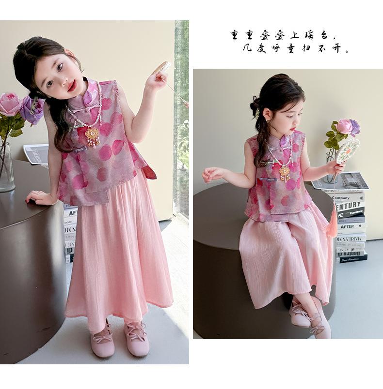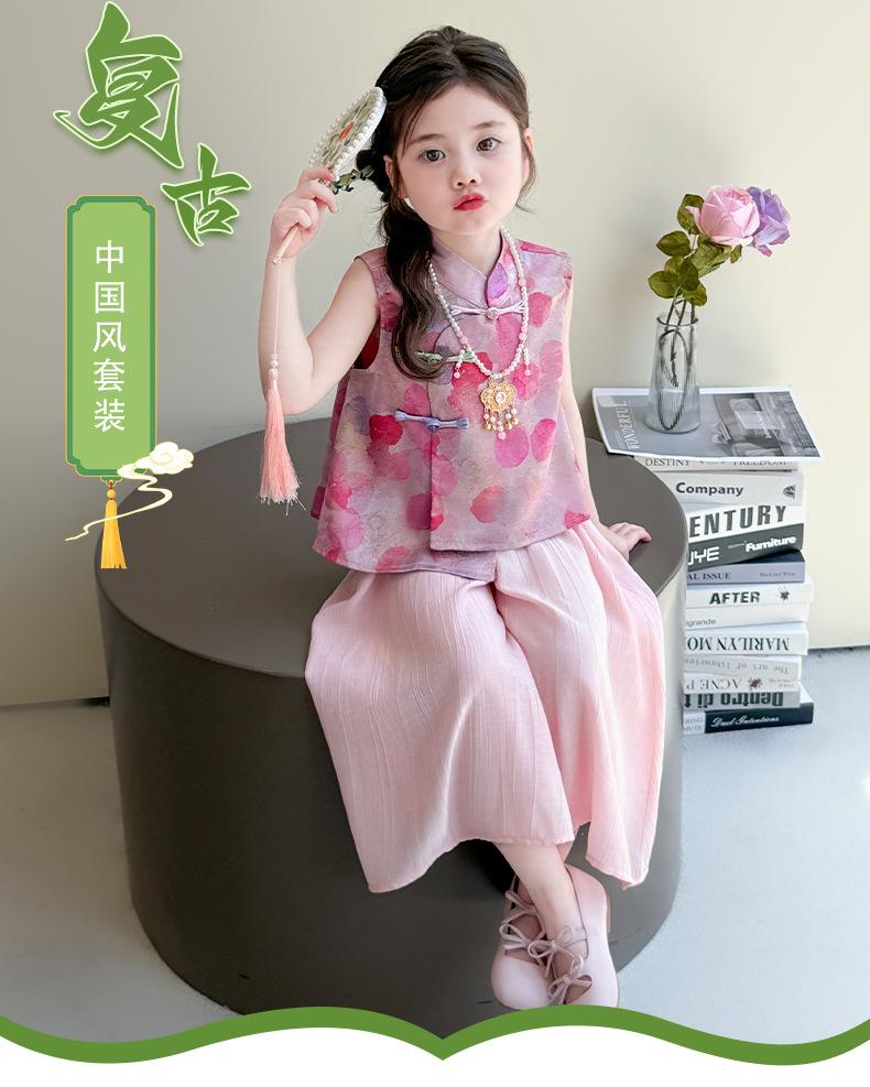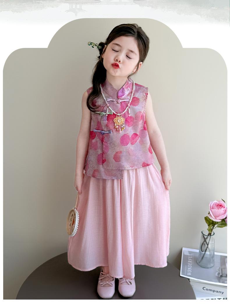 Traje sin mangas de estilo chino para niñas Verano 2025 Nueva ropa china para niños Nueva moda callejera para bebé niña Traje de verano