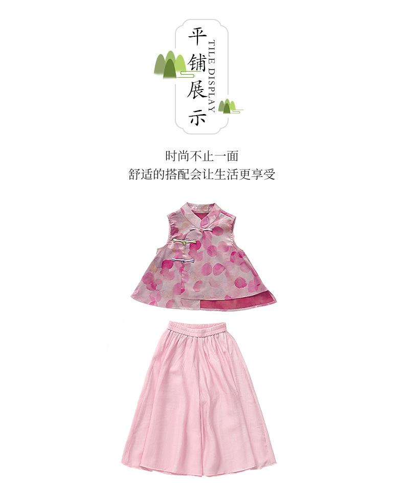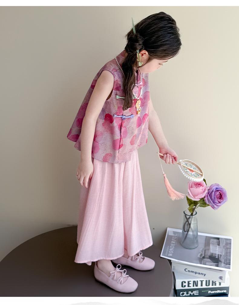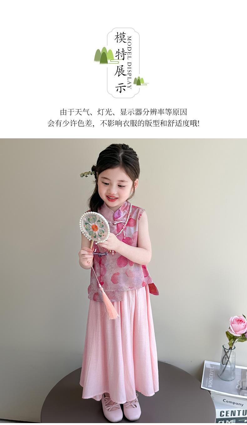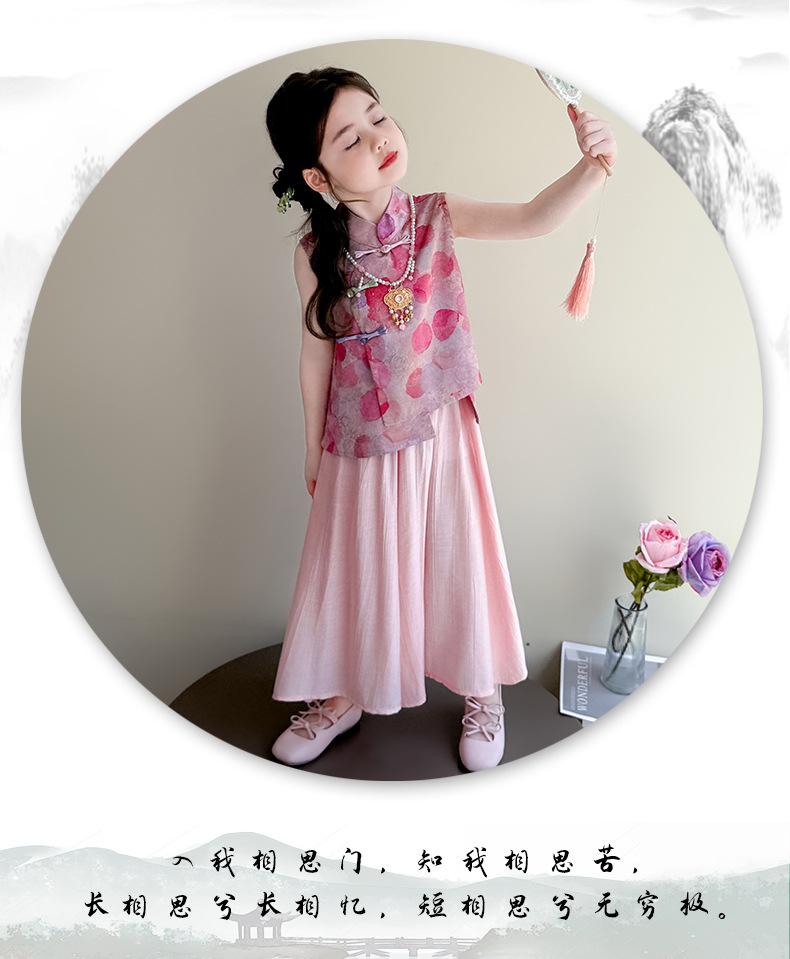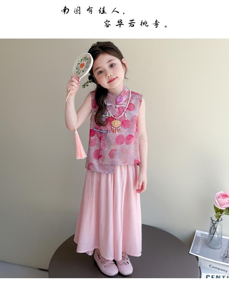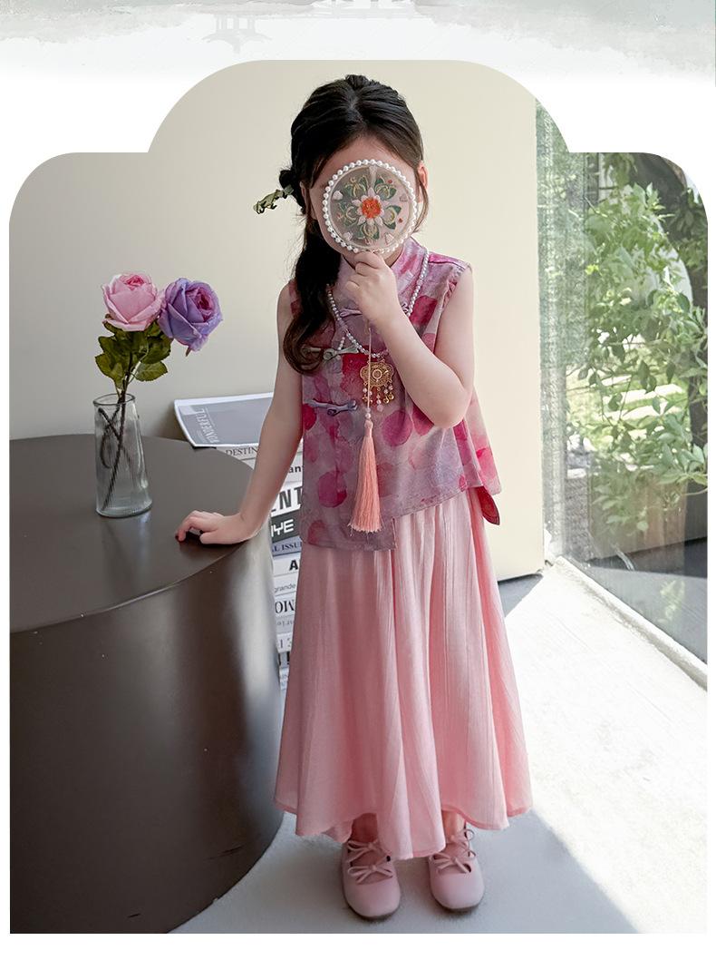 Traje sin mangas de estilo chino para niñas Verano 2025 Nueva ropa china para niños Nueva moda callejera para bebé niña Traje de verano