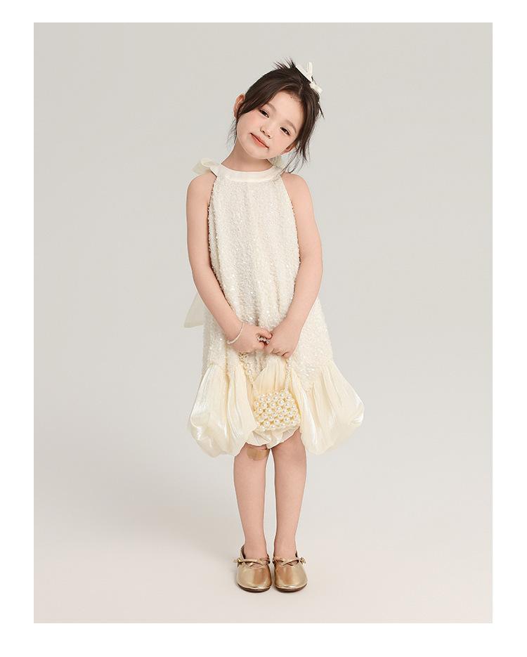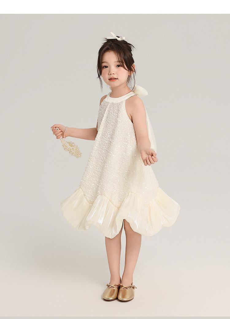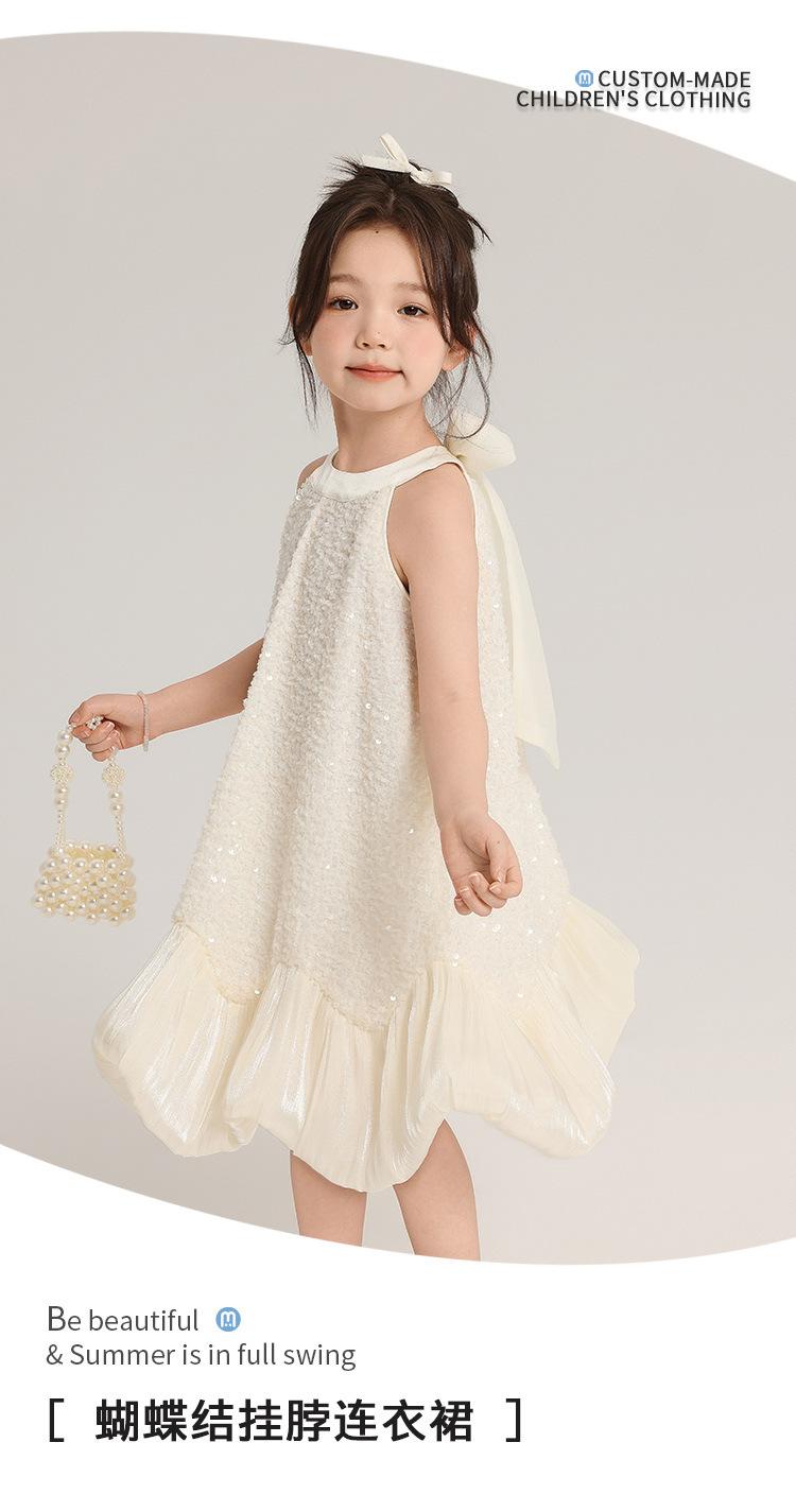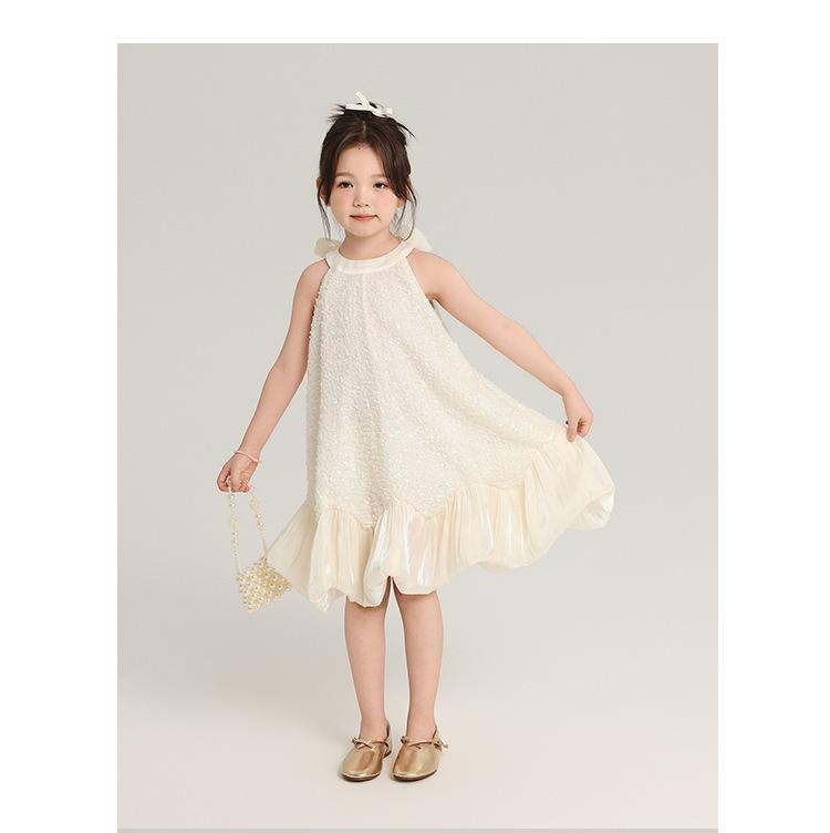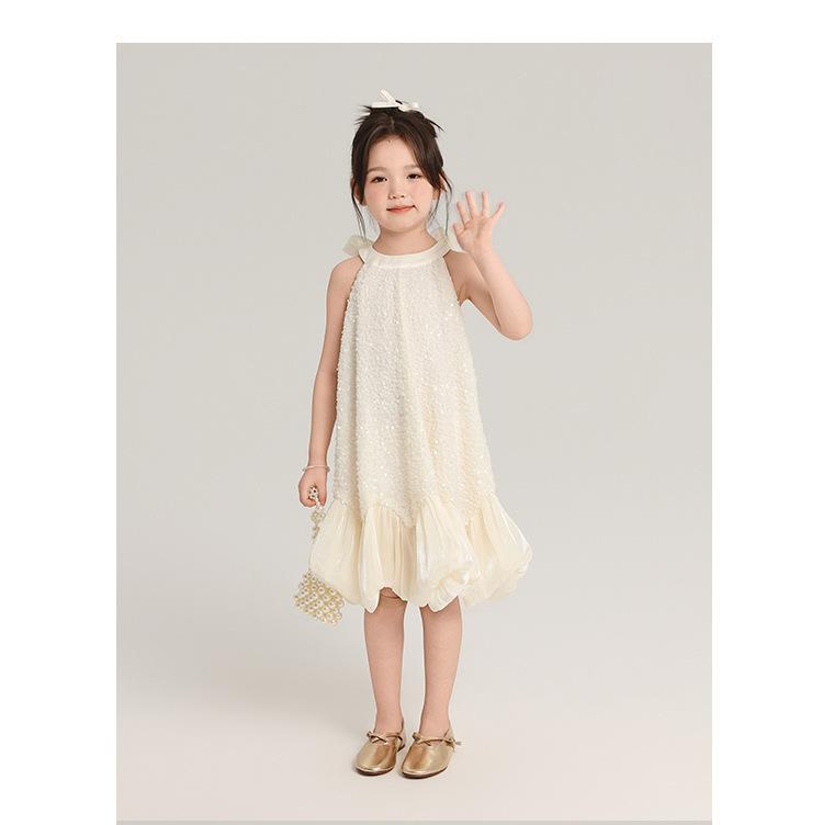 Ropa de Verano para Niños Pudding Haru Ropa de Verano Vestido Halter para Niñas Verano 2025 Nuevo Vestido de Estilo Dulce de Princesa para Niños