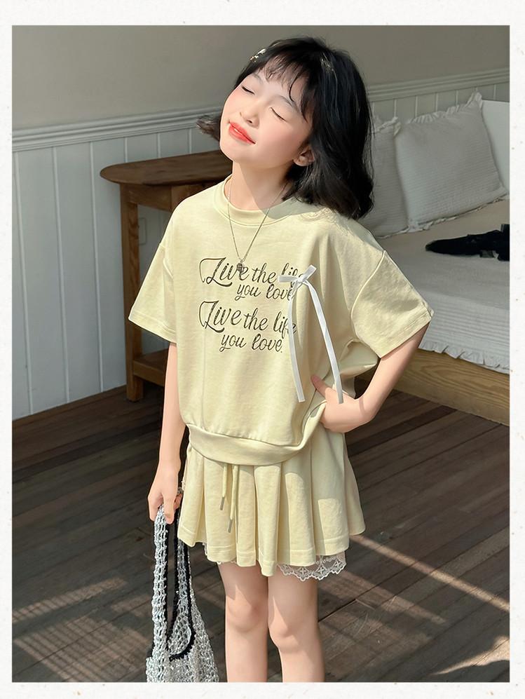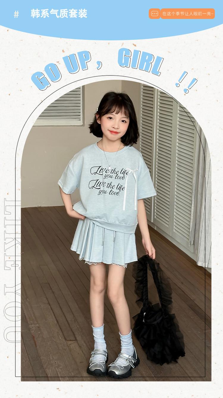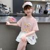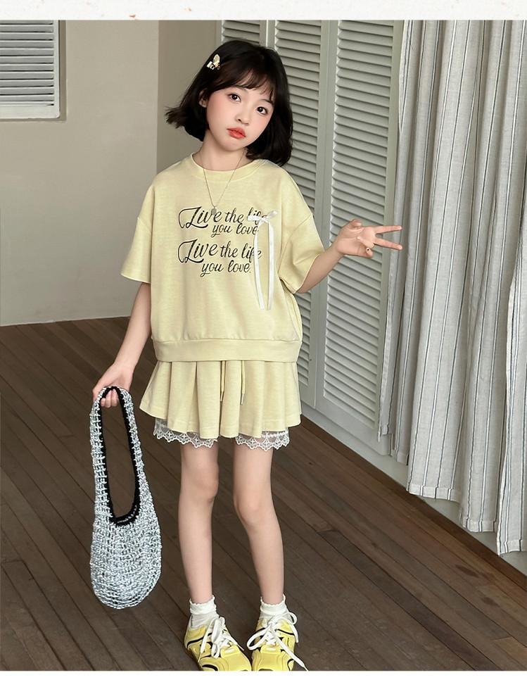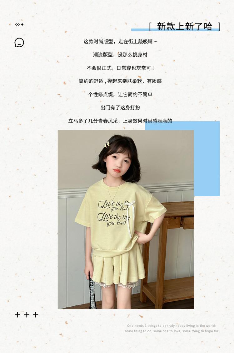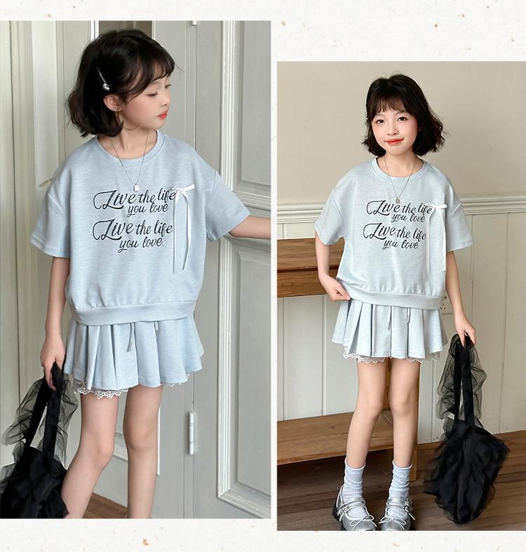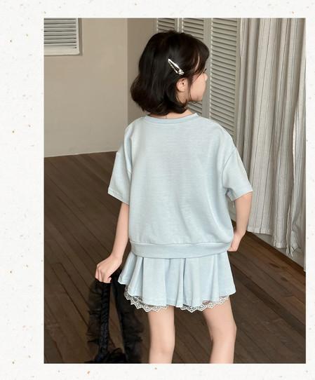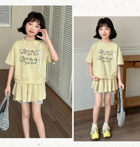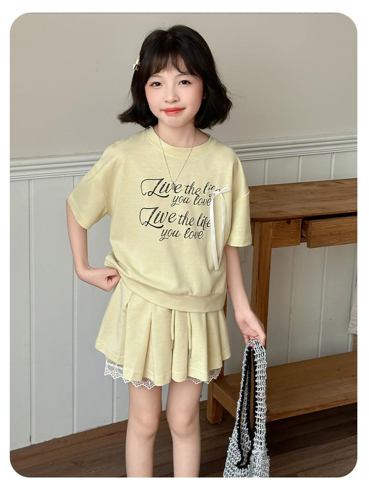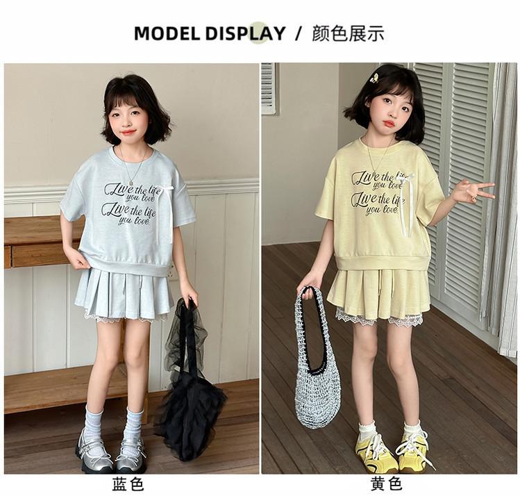 Traje de Verano para Niñas 2025 Nuevo Estilo Moda Infantil Camiseta de Manga Corta Mediana y Grande Falda Plisada de Encaje Conjunto de Dos Piezas