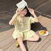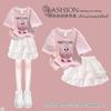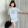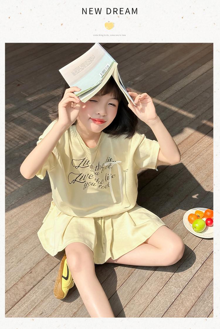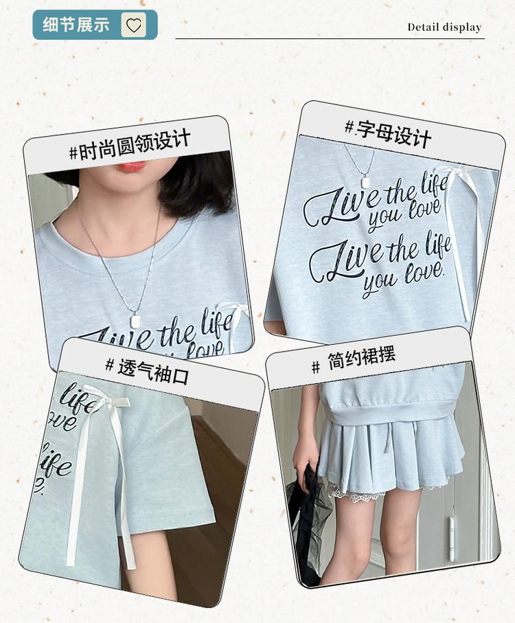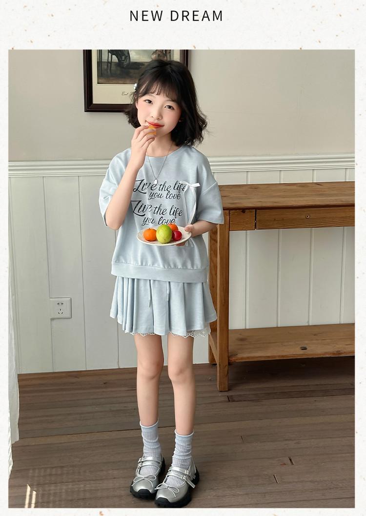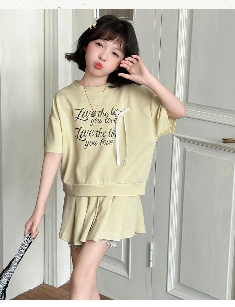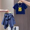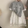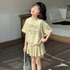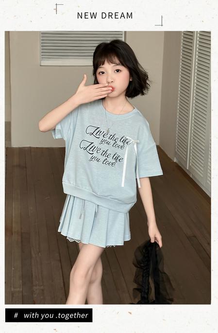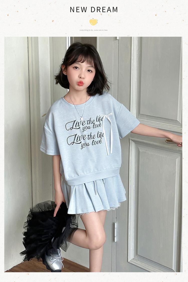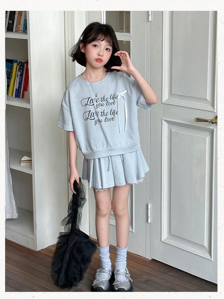 Traje de Verano para Niñas 2025 Nuevo Estilo Moda Infantil Camiseta de Manga Corta Mediana y Grande Falda Plisada de Encaje Conjunto de Dos Piezas