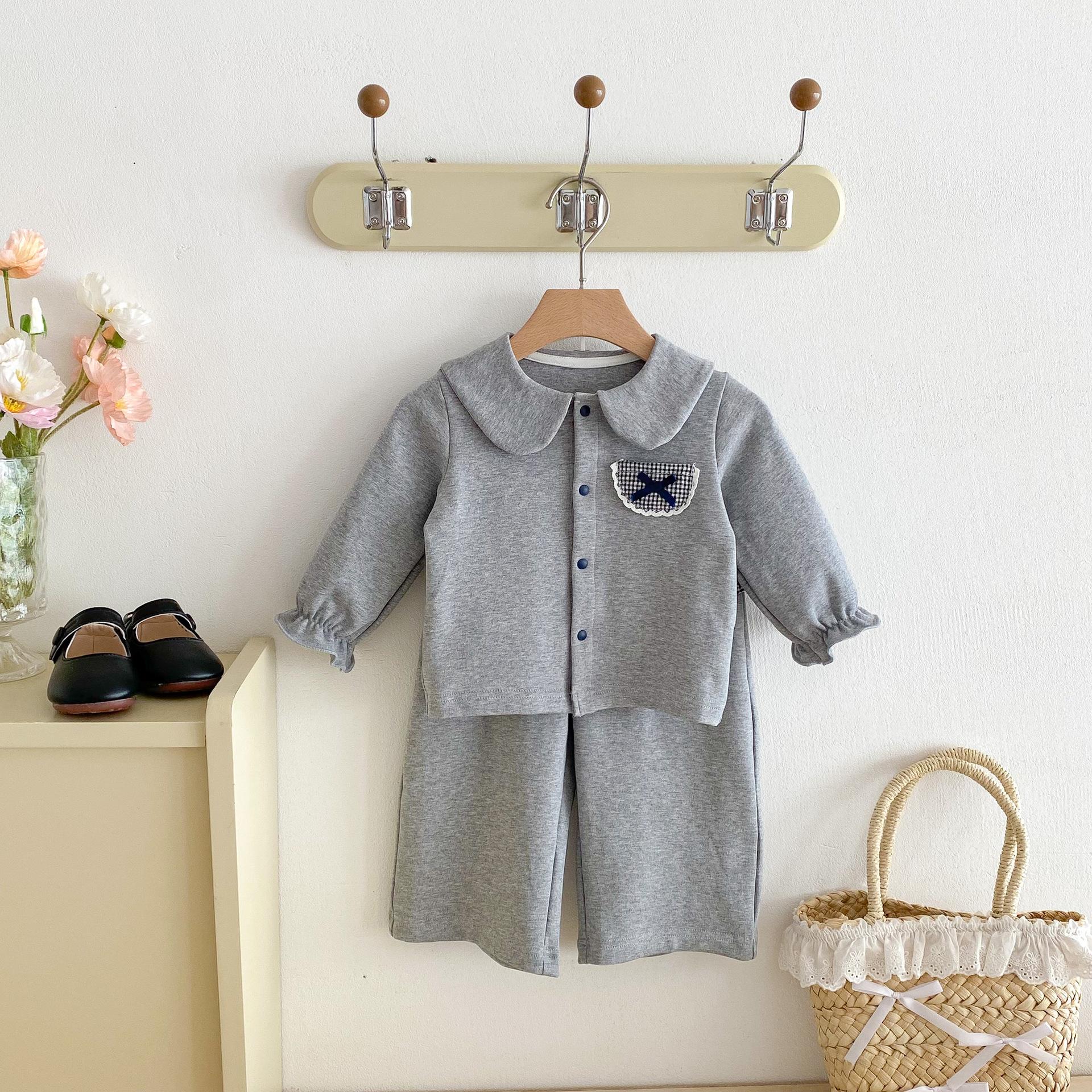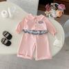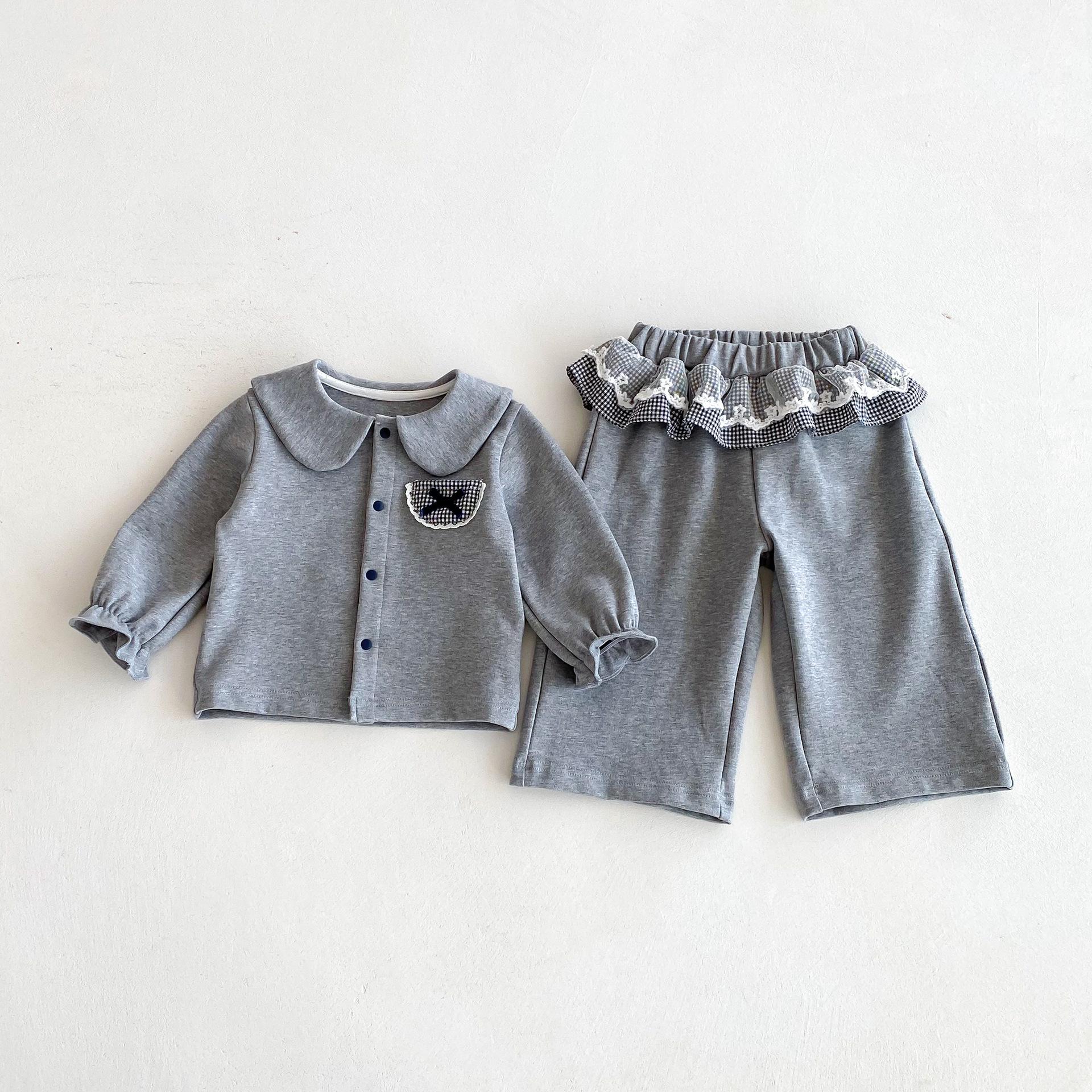 Conjunto de Otoño para Niñas 2025 Nuevo Estilo Coreano Moderno Camisa de Manga Larga para Bebé Niña y Pantalones Acampanados Conjunto de Dos Piezas