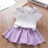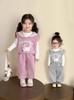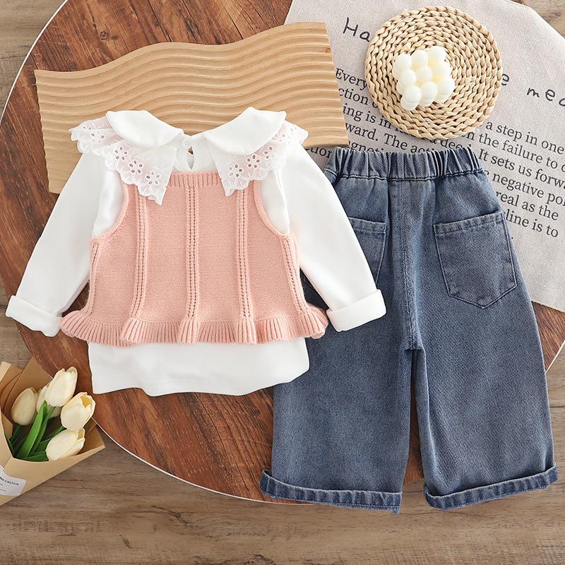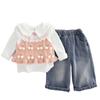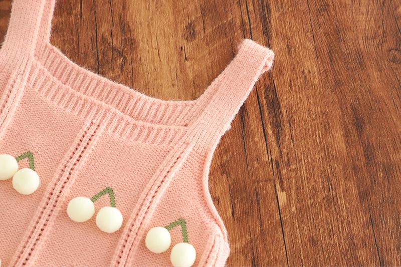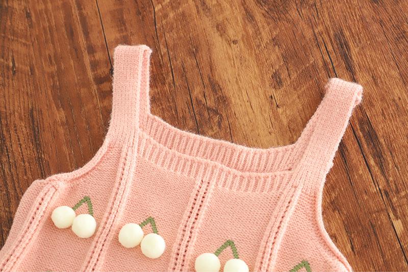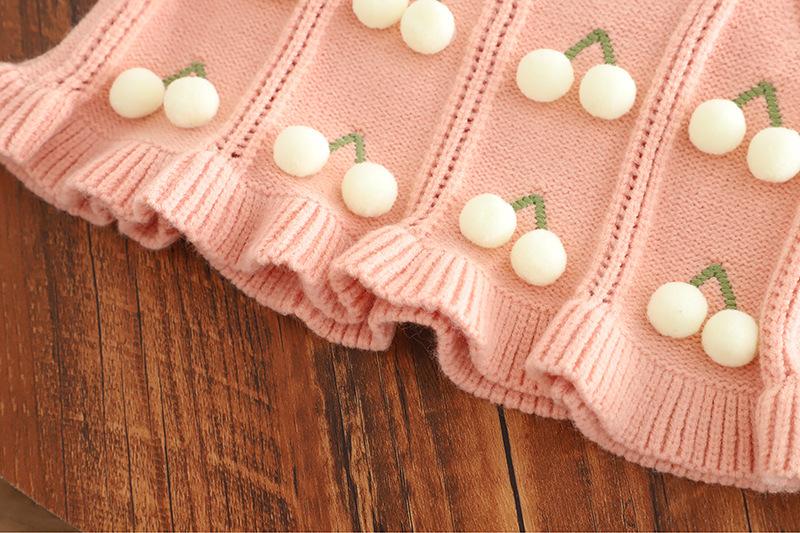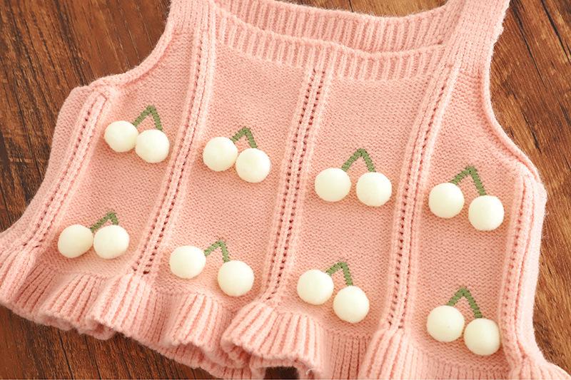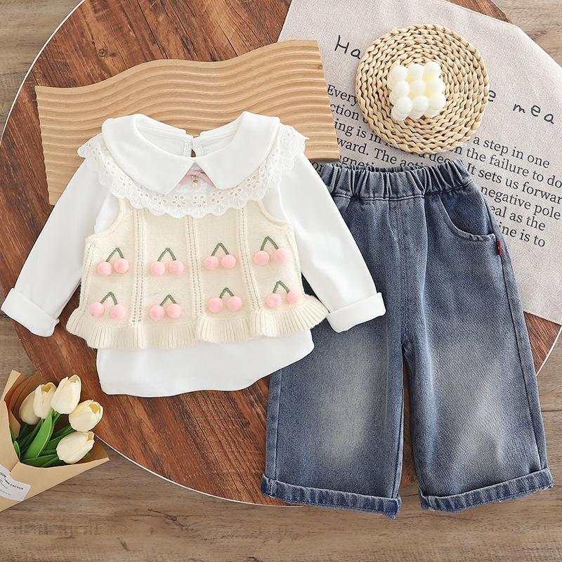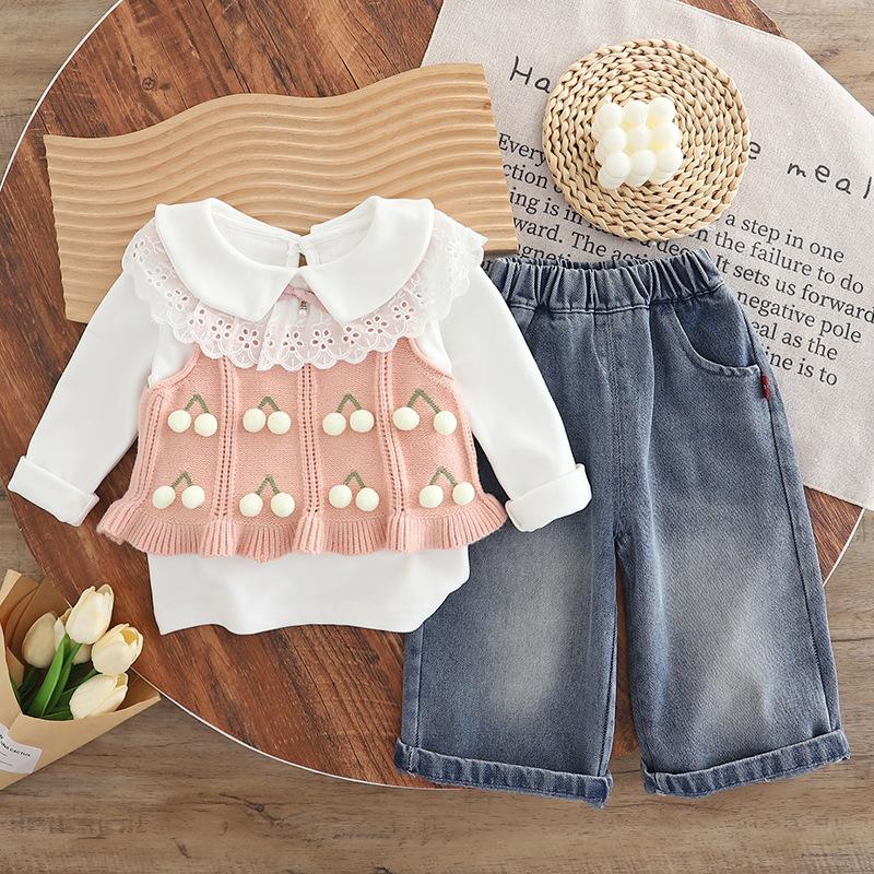 Traje de Moda para Niñas 2025 Nuevo Estilo Ropa para Niños Chaleco Suéter de Cerezas para Bebé Primavera y Otoño Conjunto de Tres Piezas