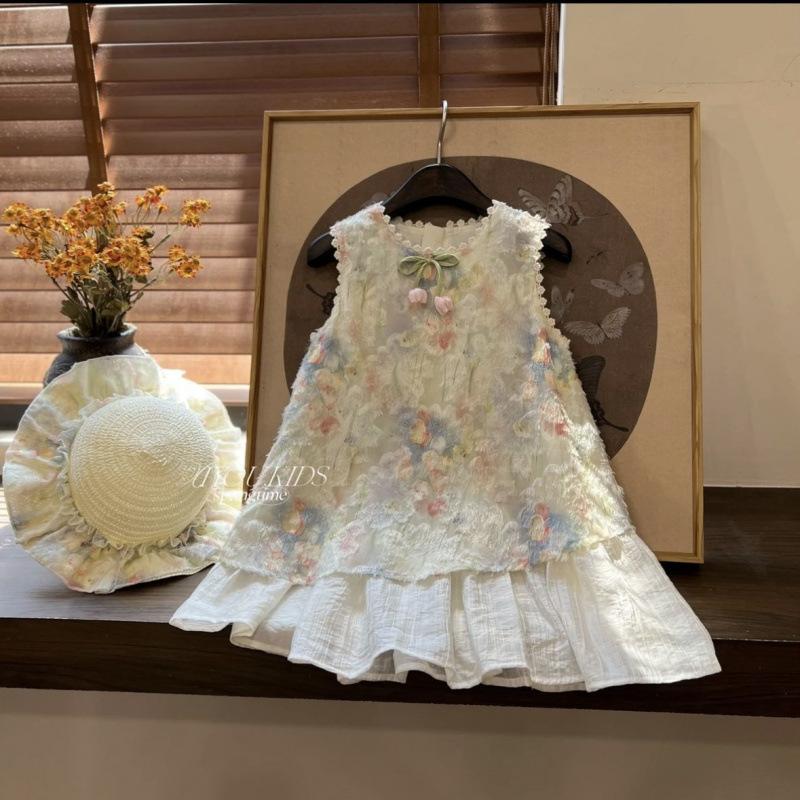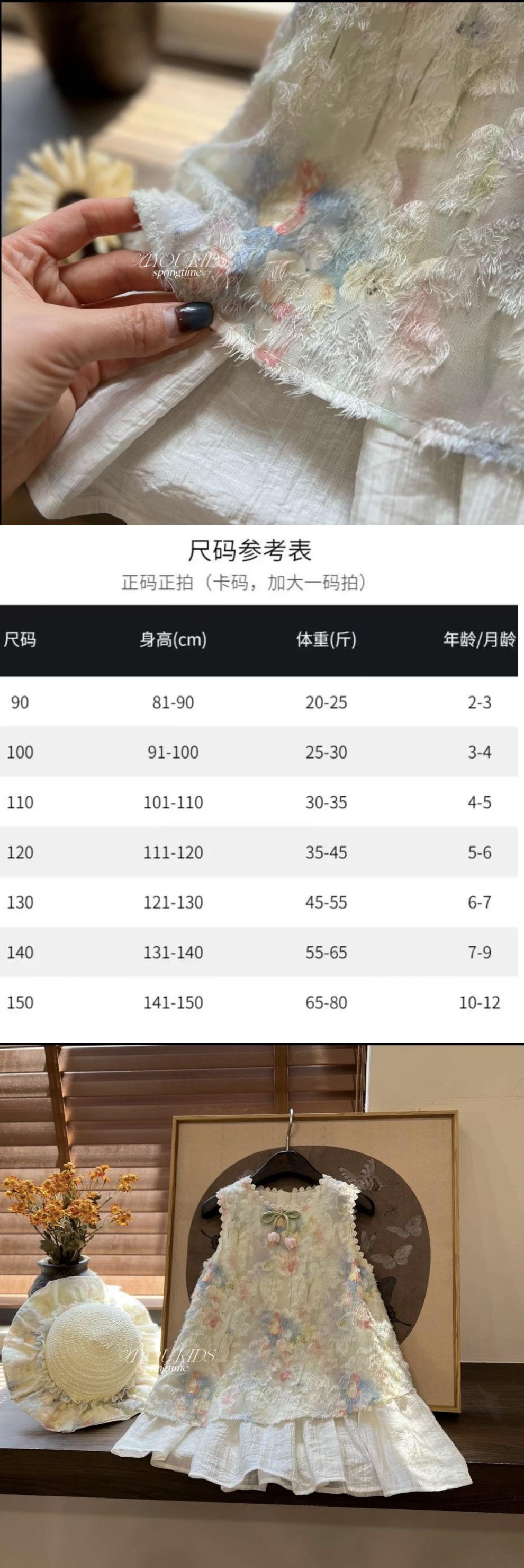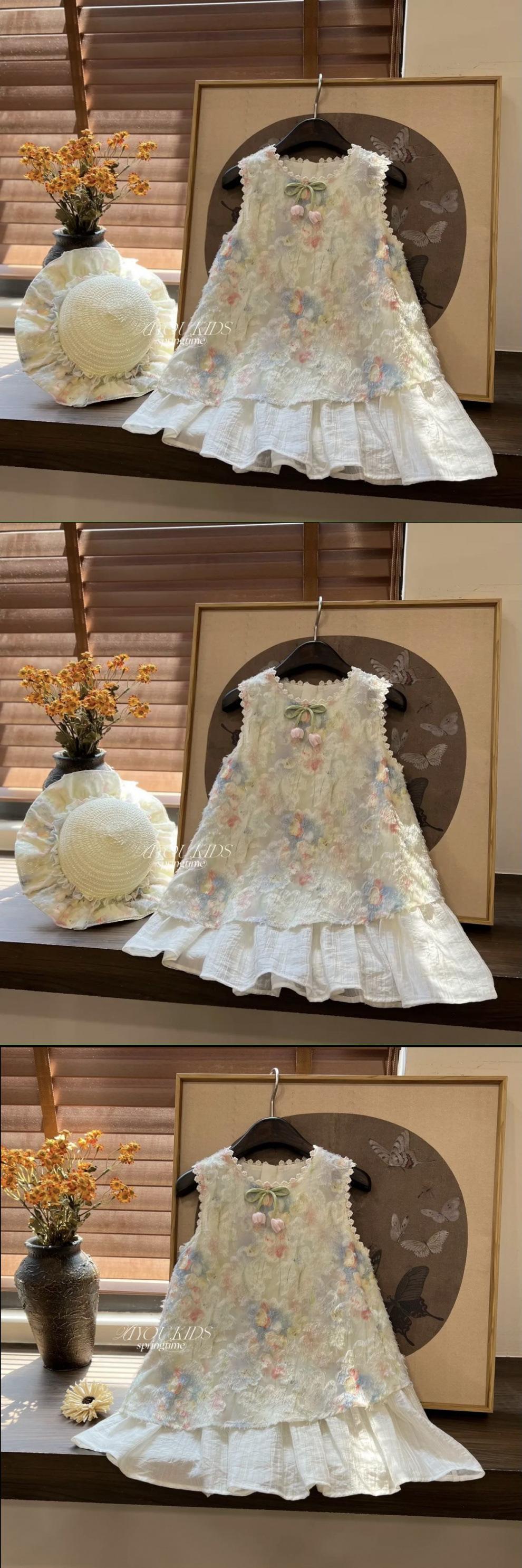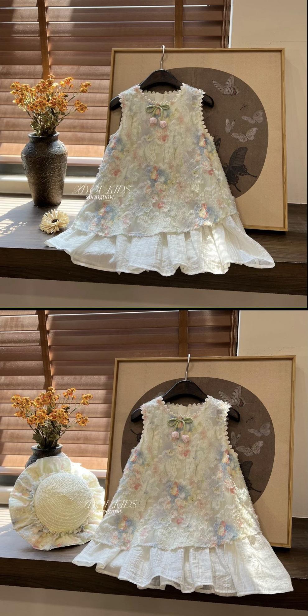 Falda de Verano para Niñas 2025 Verano Nuevo Estilo Vestido Niños Bebé Dulce Floral Sin Mangas Vestido de Princesa