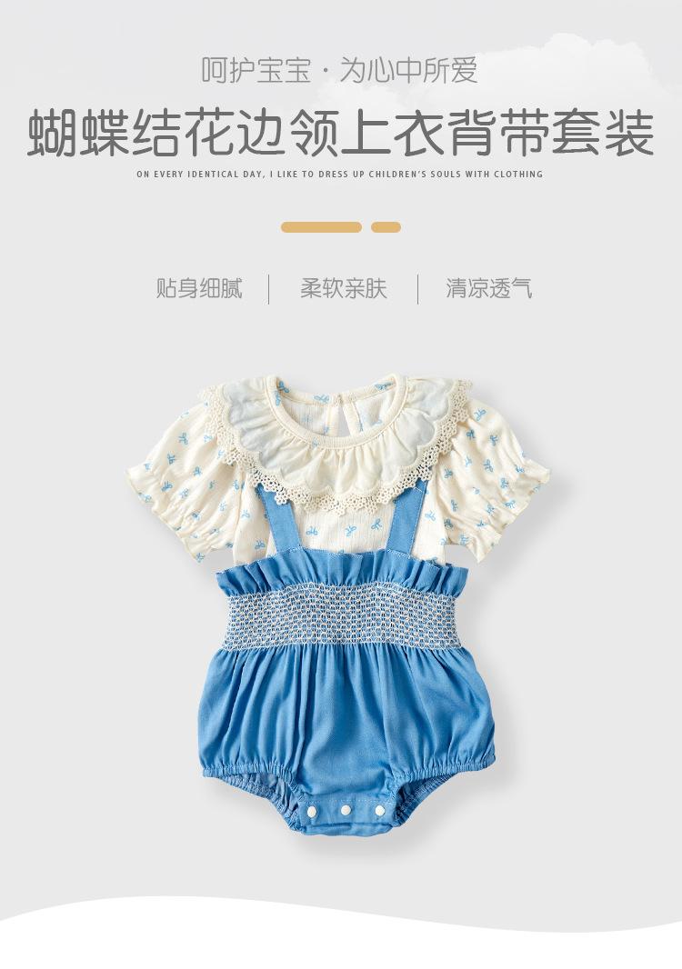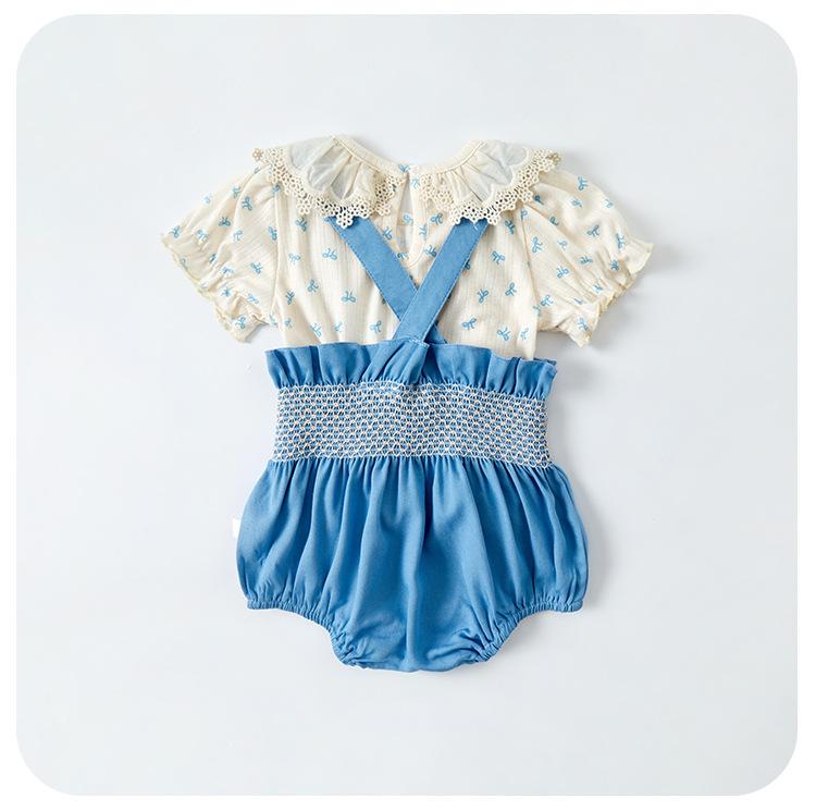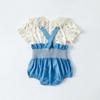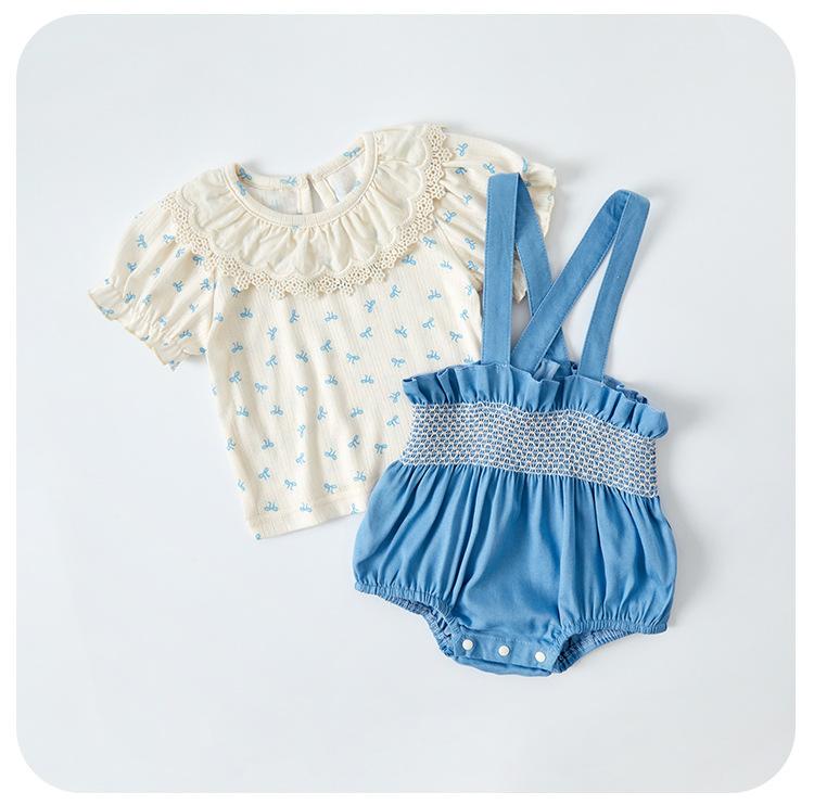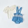 Traje de Tirantes para Bebé y Niño Pequeño Verano 2025 Nuevo Estilo Estilo Recién Nacido Top con Solapa Mono Conjunto de Dos Piezas