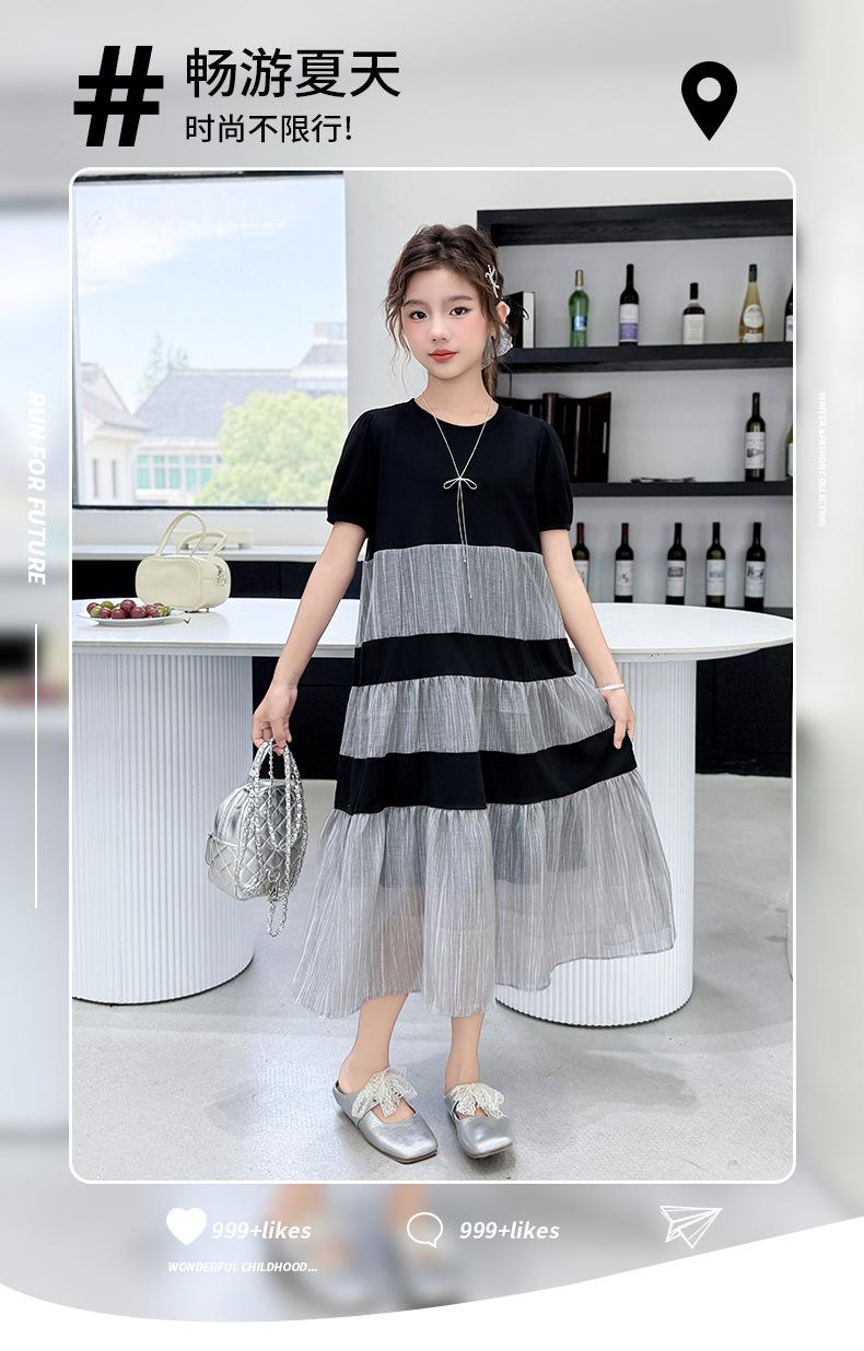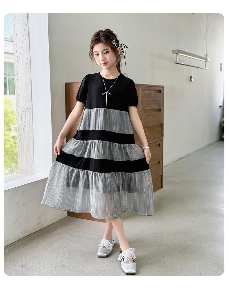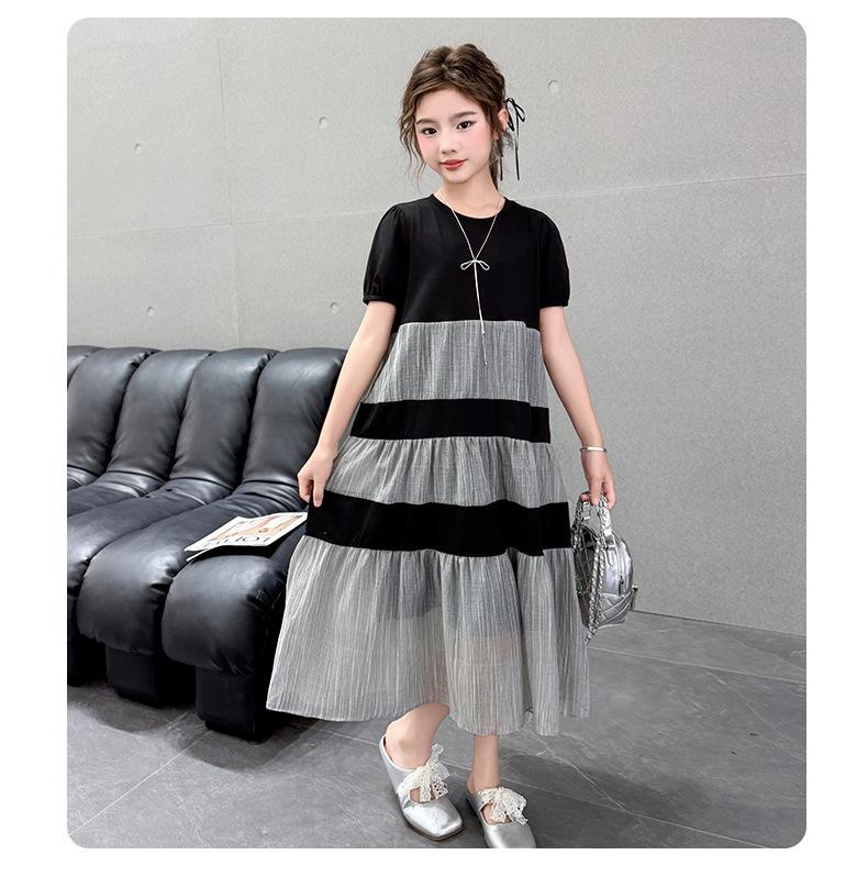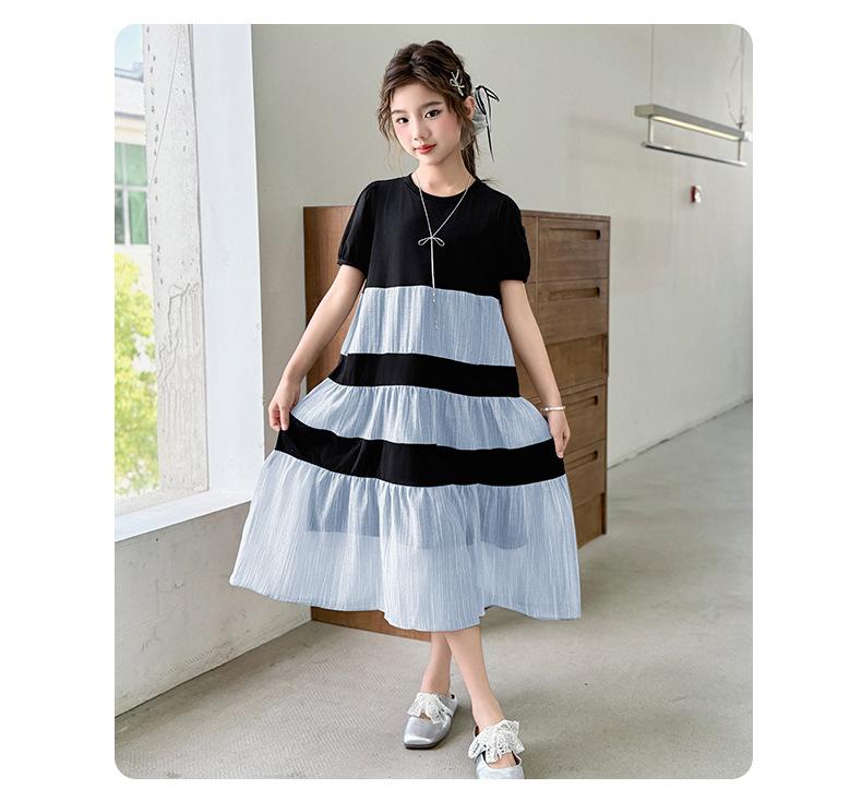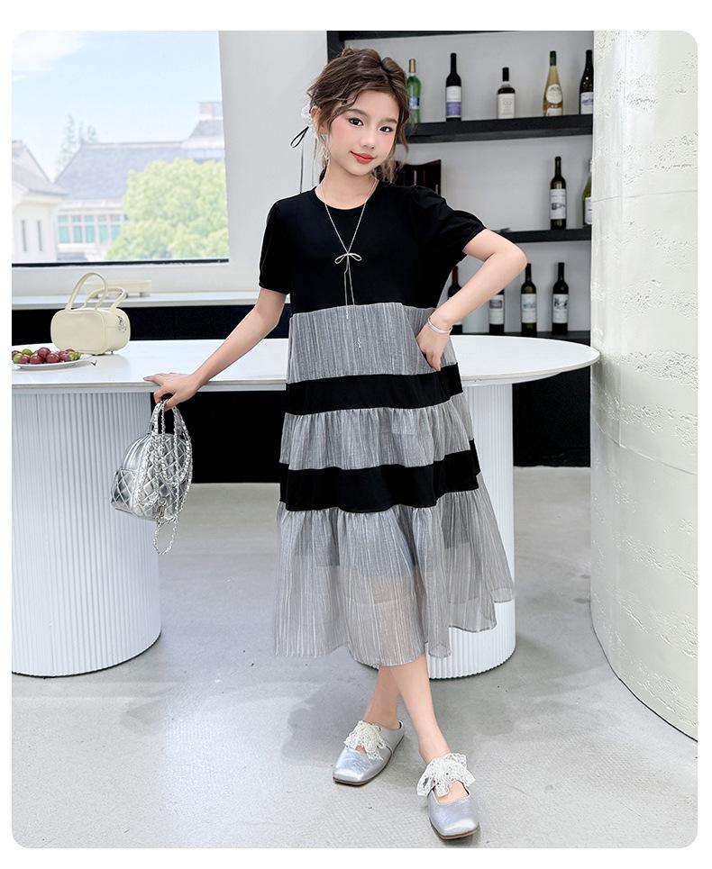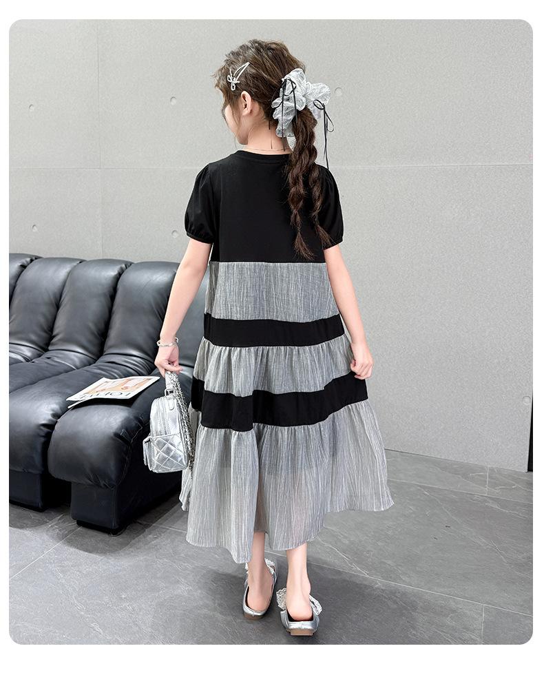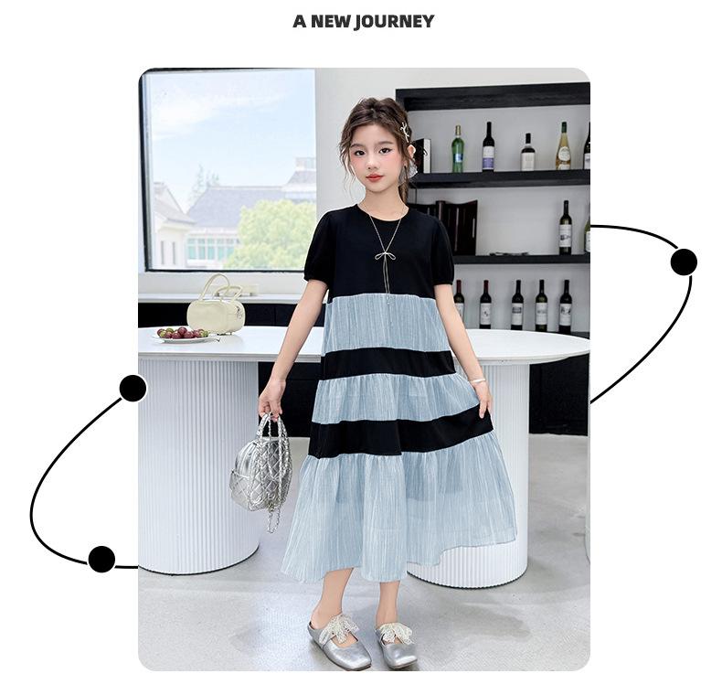 Vestido de Verano para Niñas Largo Medio 2025 Nuevo Vestido de Verano Moderno Vestido de Princesa para Niñita Falda con Combinación de Colores para Niños