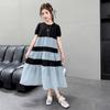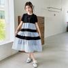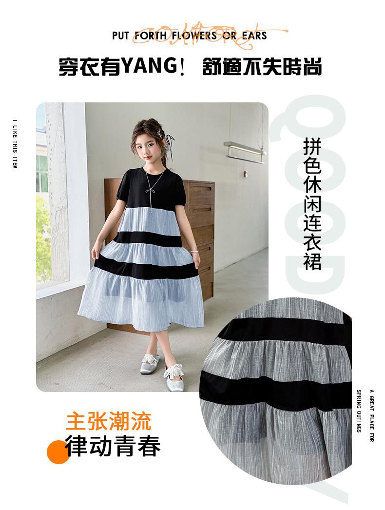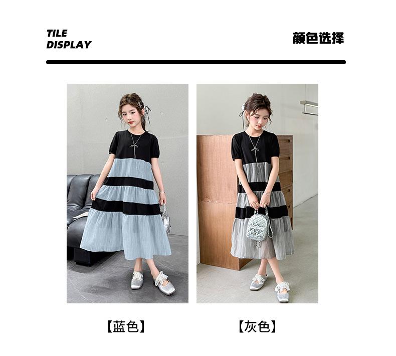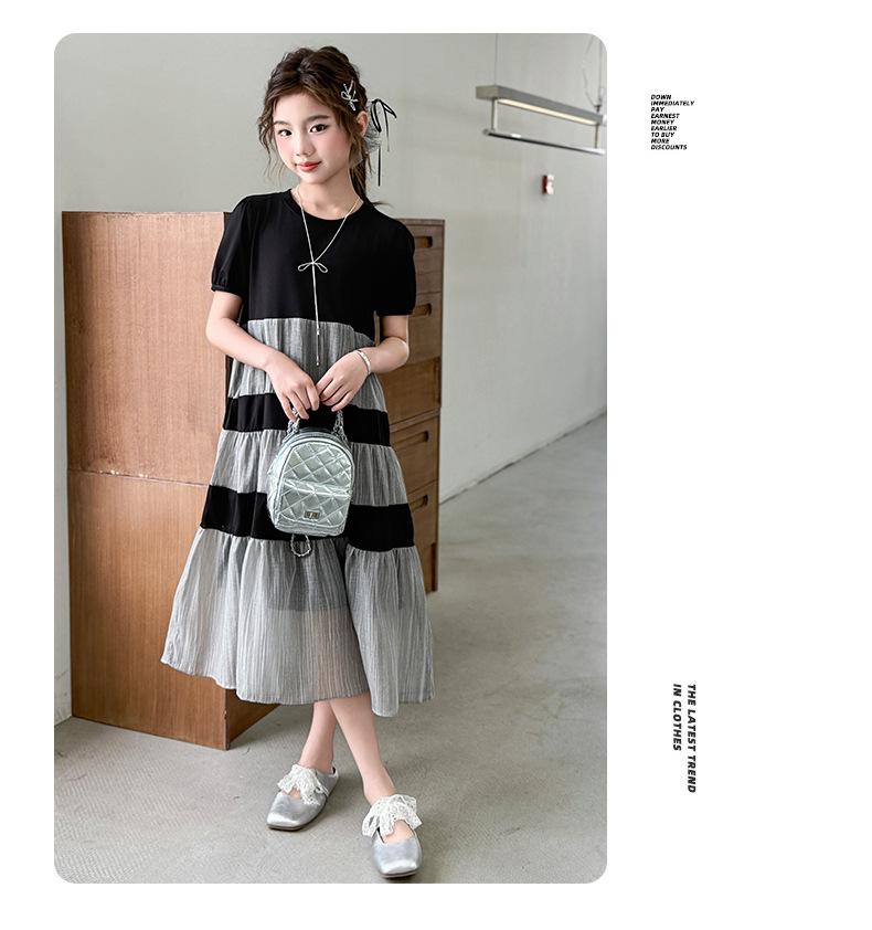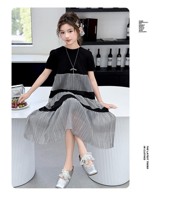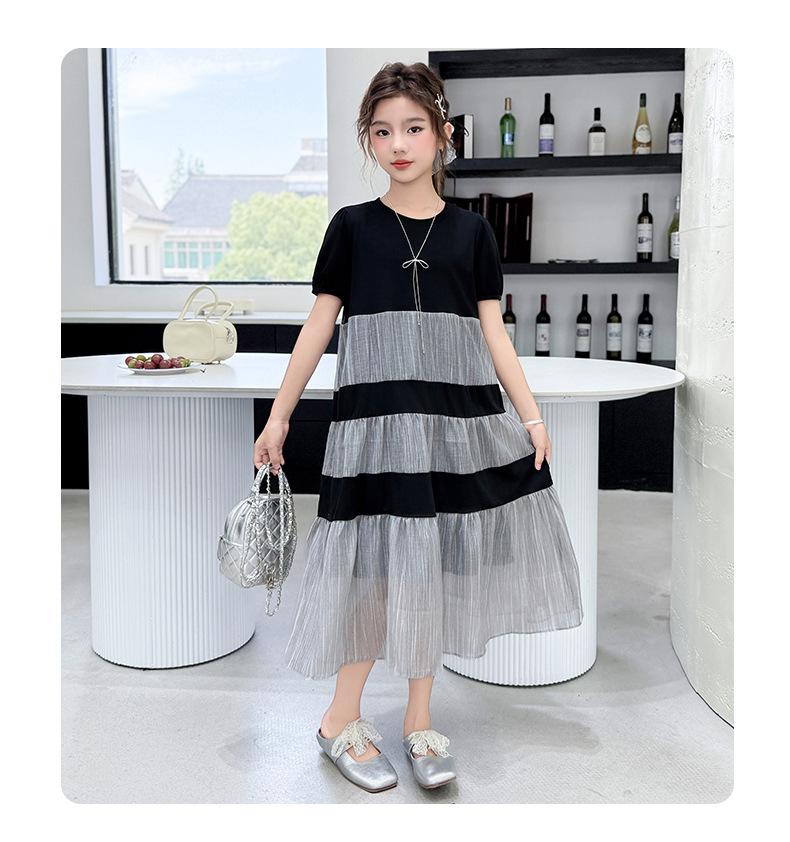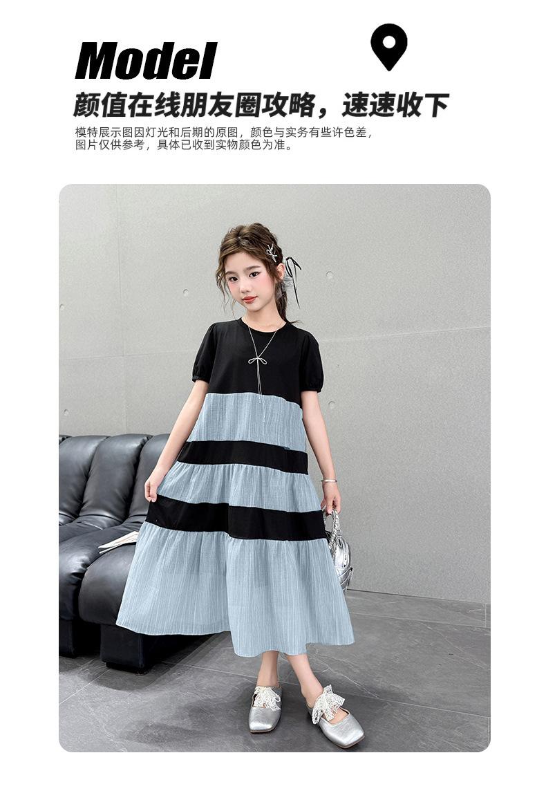 Vestido de Verano para Niñas Largo Medio 2025 Nuevo Vestido de Verano Moderno Vestido de Princesa para Niñita Falda con Combinación de Colores para Niños