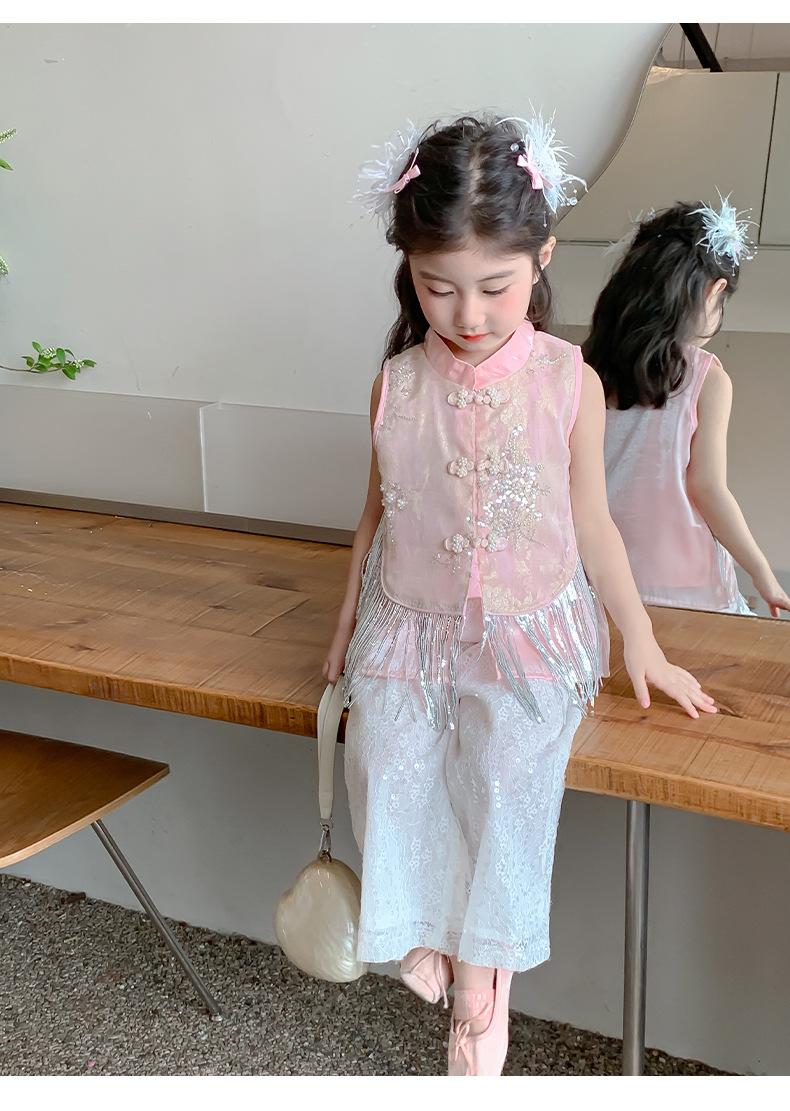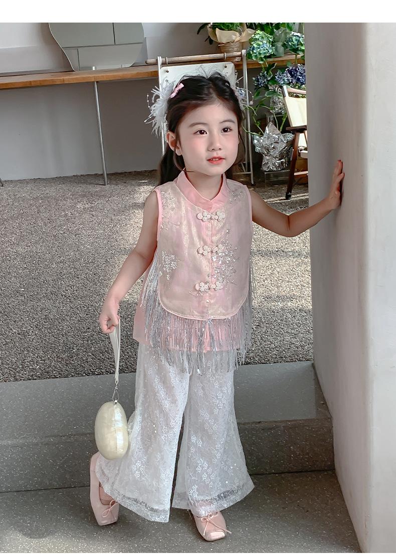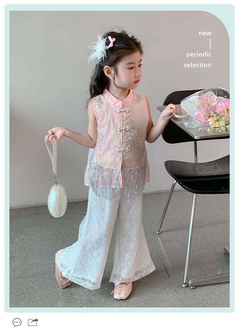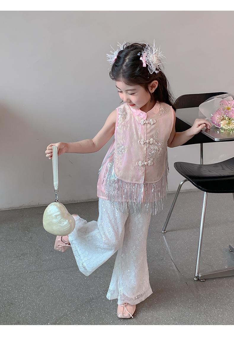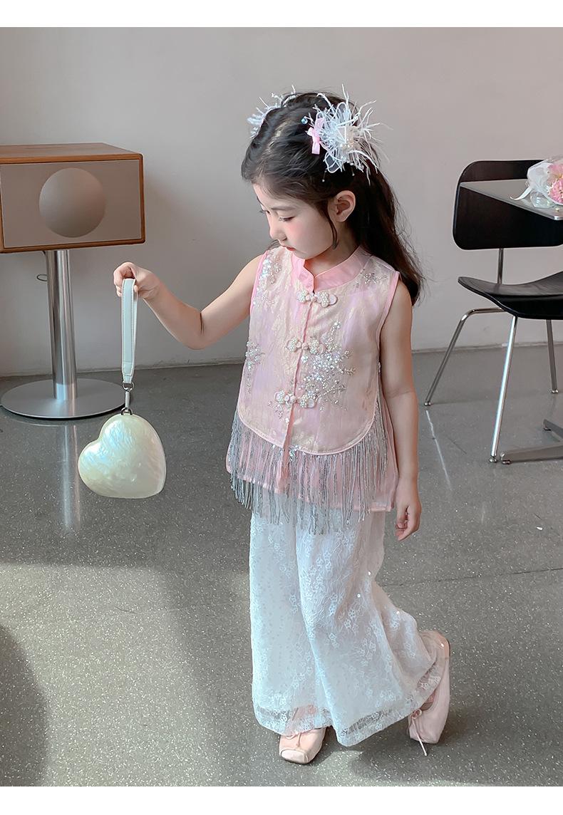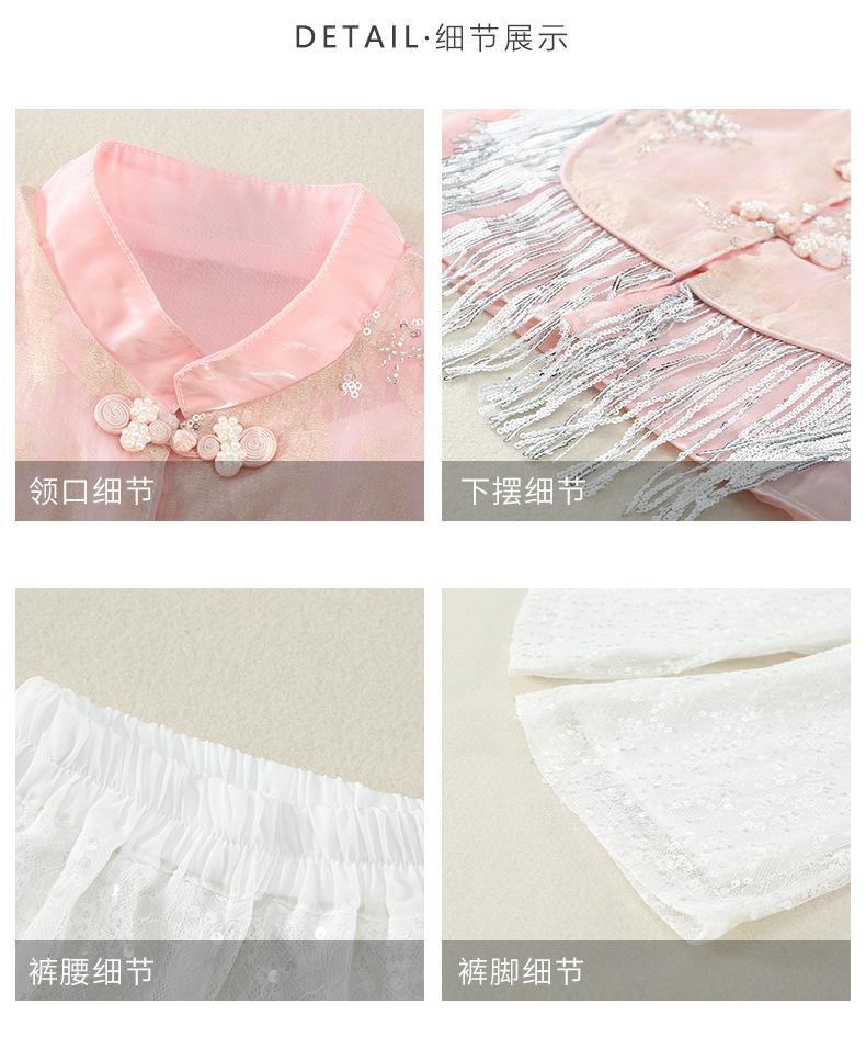 Traje para niña 2025 Nuevo estilo occidental Vestido de verano para bebé niña Estilo chino mejorado Hanfu Verano para niños Conjunto chino de dos piezas