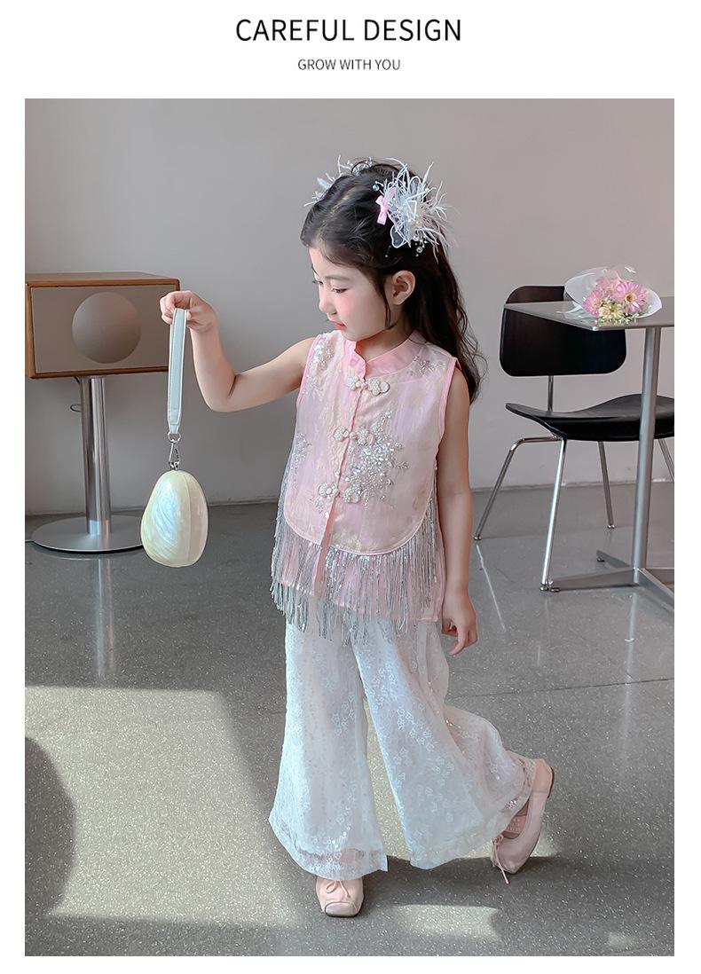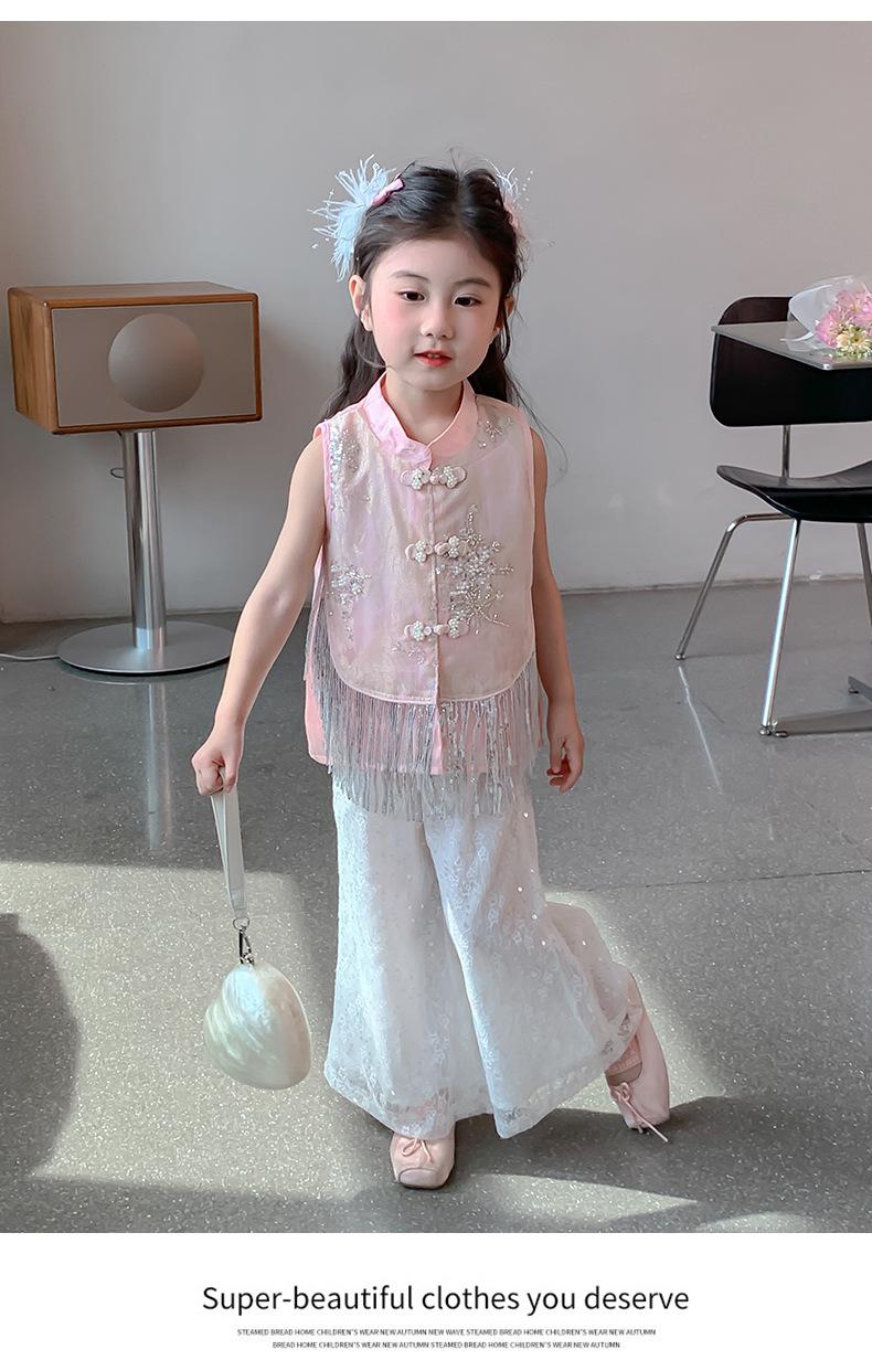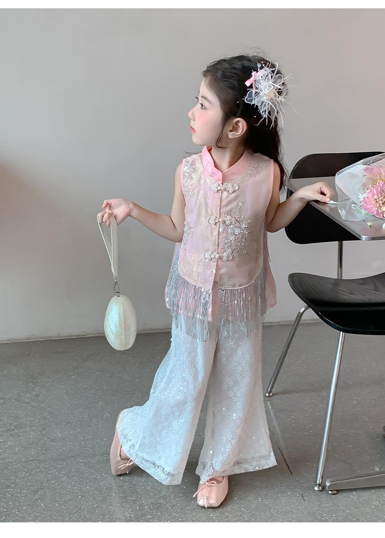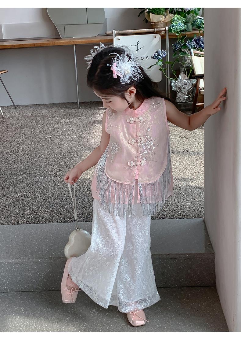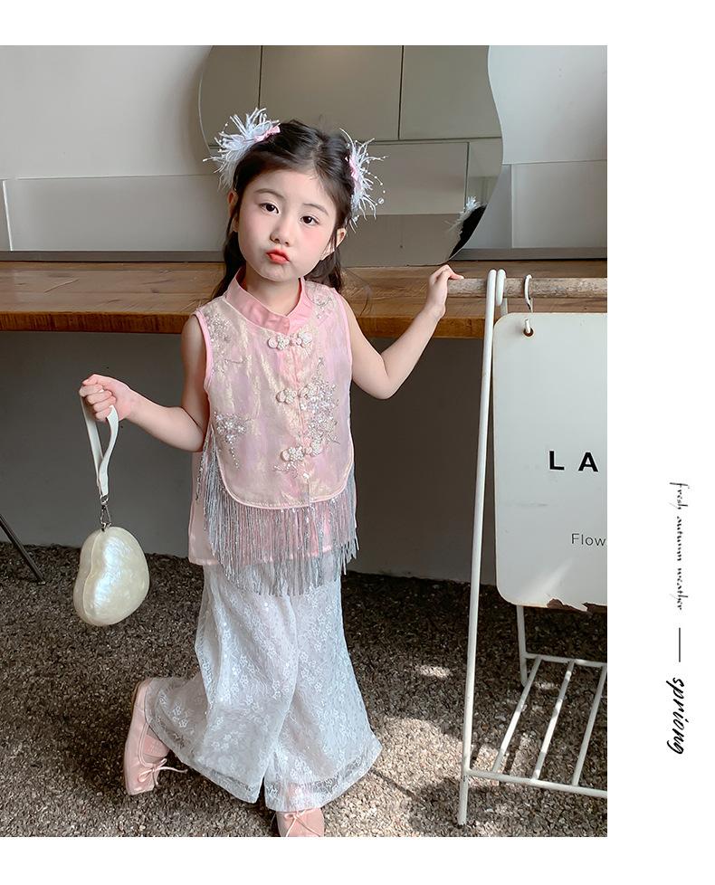 Traje para niña 2025 Nuevo estilo occidental Vestido de verano para bebé niña Estilo chino mejorado Hanfu Verano para niños Conjunto chino de dos piezas